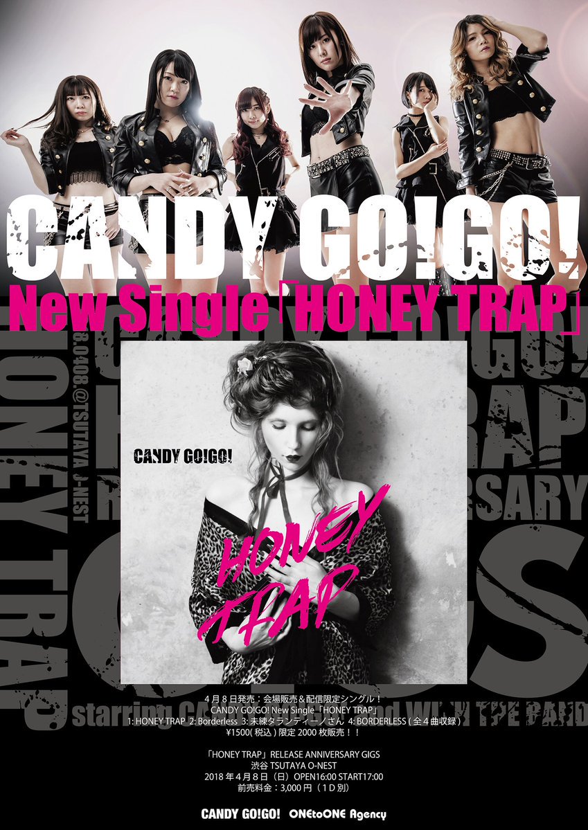あのときの宣言を具体的に証明しようと、CANDY GO!GO!は4月8日にTSUTAYA O-NESTを舞台に、バンドを従えたスタイルでワンマン公演を行う。さらに、この日より会場販売&配信限定シングル『HONEY TRAP』の発売も決定している。
