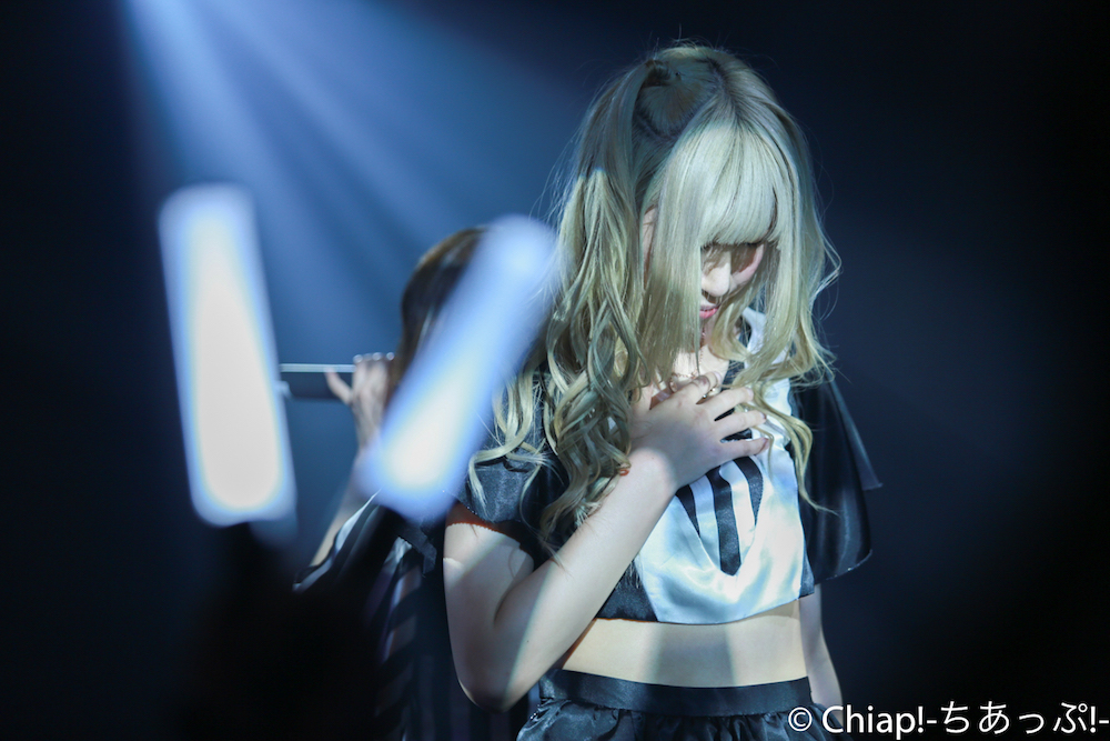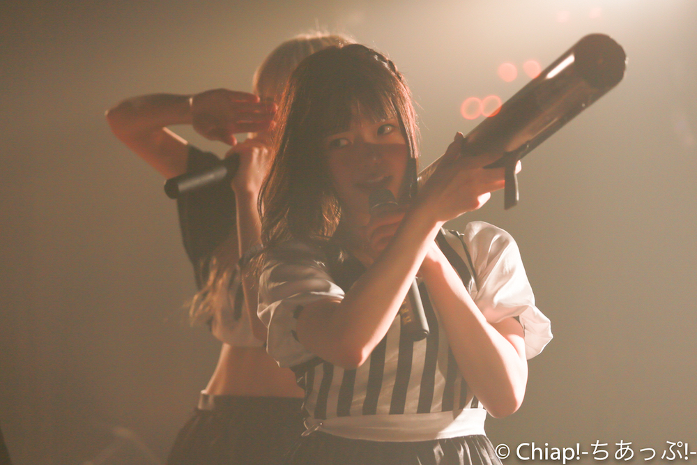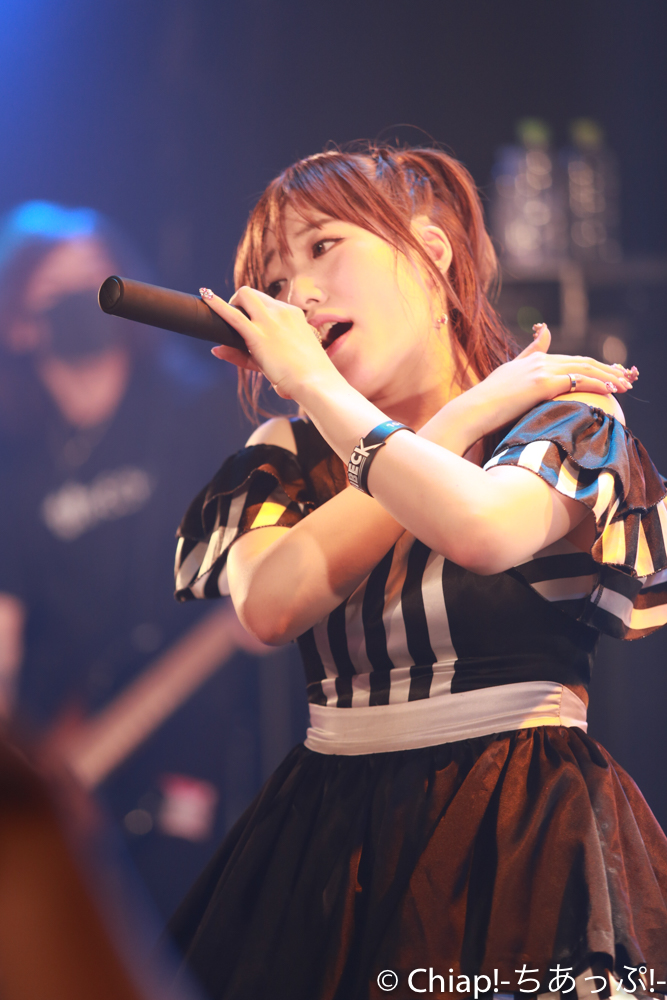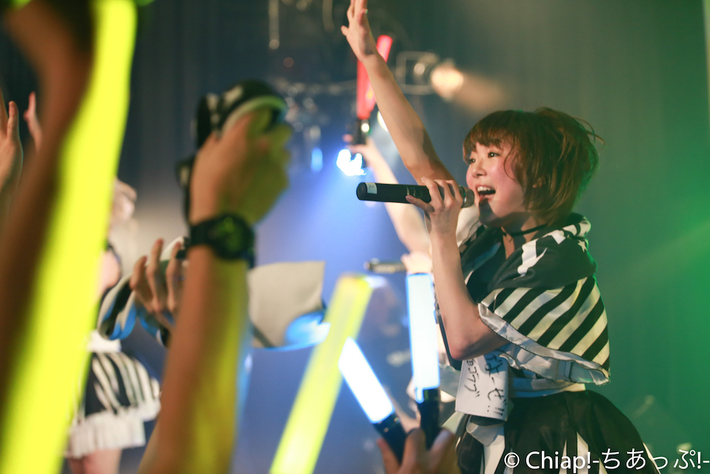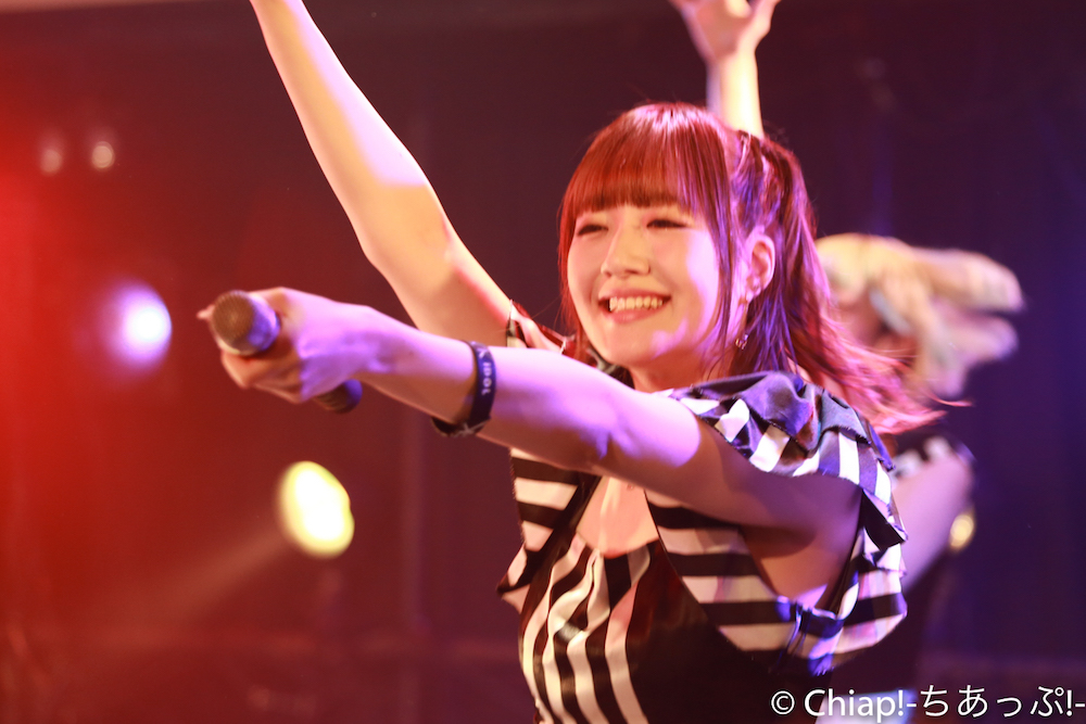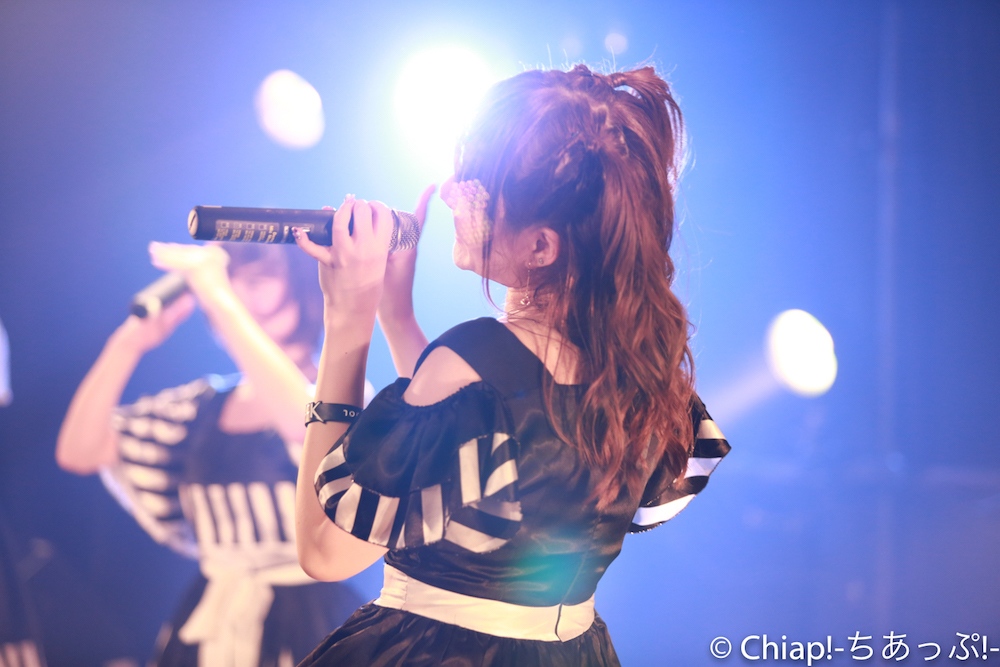 「FlashBack」ではなんとメンバー全員が楽器を持って登場。ロックな雰囲気抜群のアンズ100%。歌がずっと好きだった、という言葉に説得力のある存在感を示す、ギターボーカルを務めたニーナ。星乃さゆみはベースを手に。OVATIONのエレアコを構えるさっちゃそ(塩藤さやの)、まこちん(立花まこ)はポールリードスミスぽいギターと思ったらIbanezeのようだ。弾きやすいですよねIbaneze。楽器オタクにも熱い編成で地蔵ファン(筆者)も胸が熱くなるばかり。