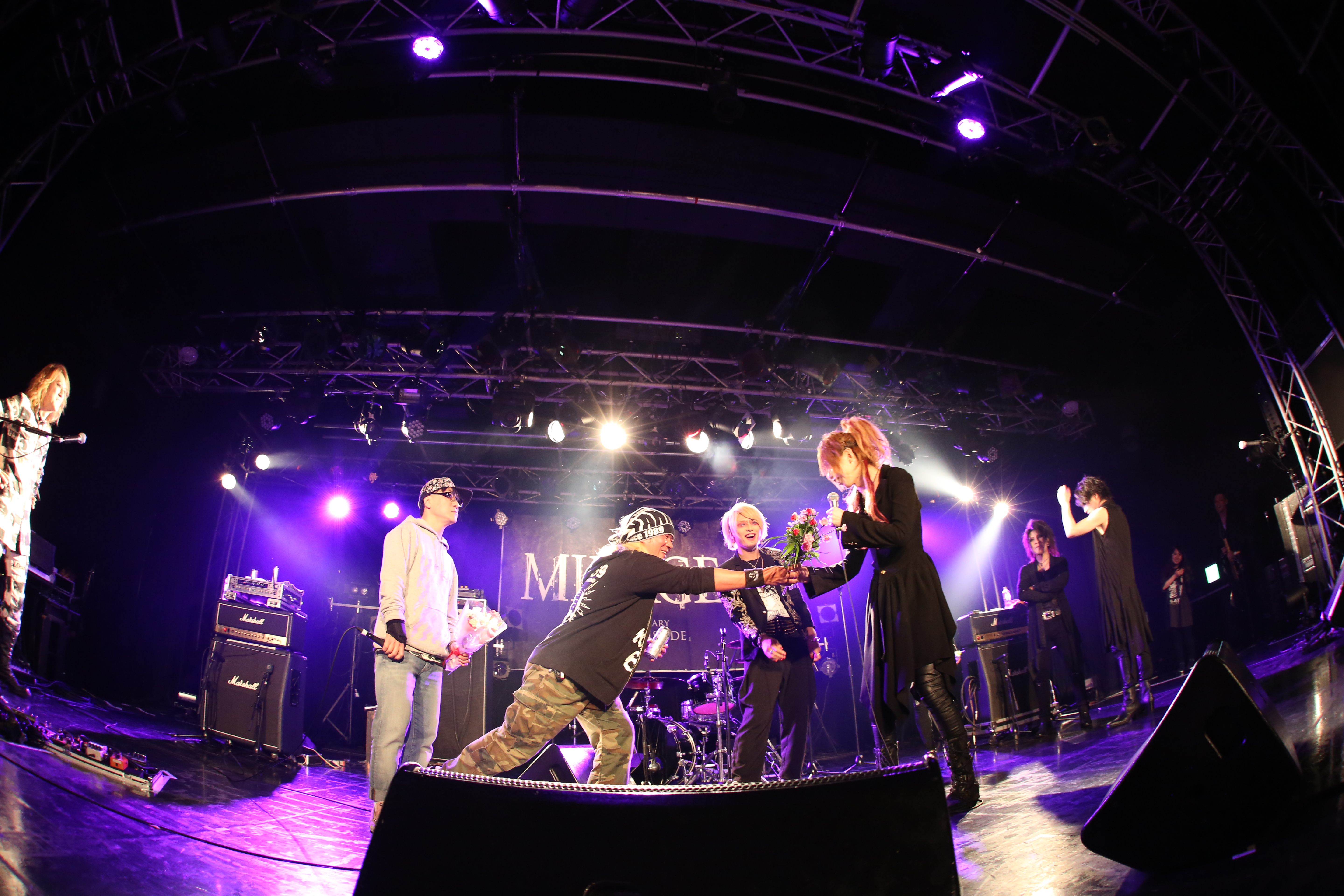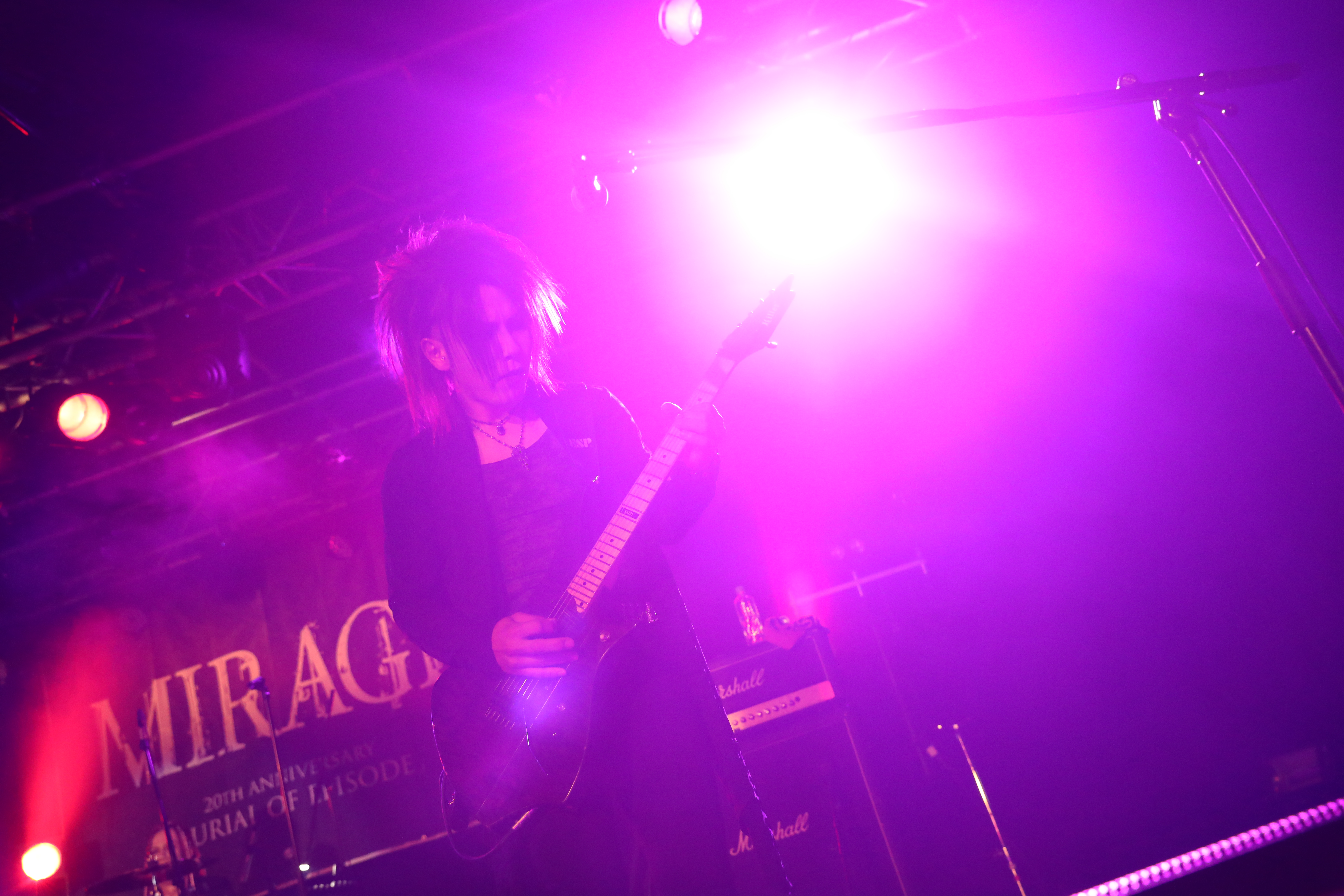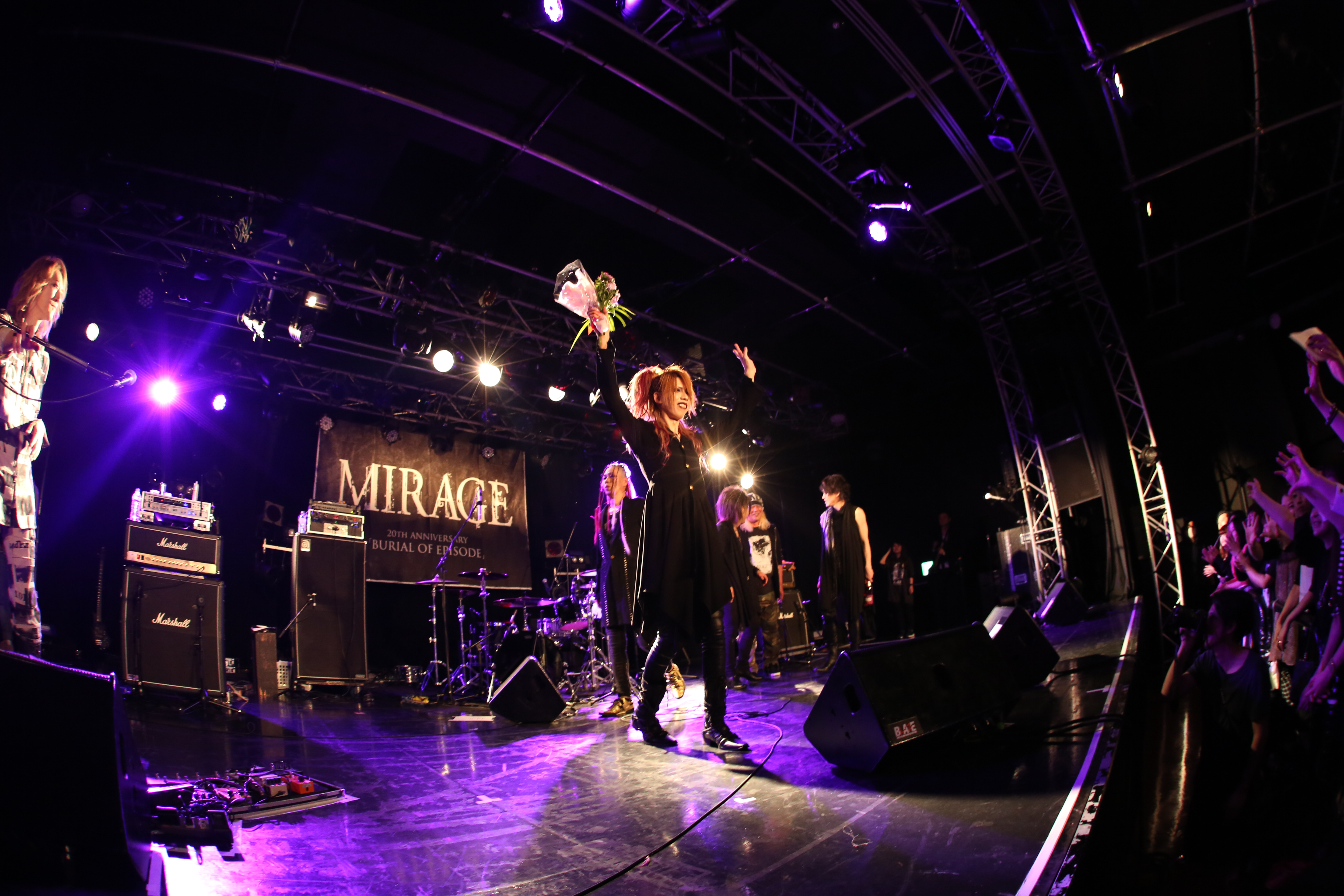 「全バンドが解散して環境が変わり色んな事があって全てが嫌になって一年間以上音楽やステージから避ける様な生活だったけど、今回、メンバー、スタッフ、出演バンドの皆さんと腹を割って話しました。みんなが背中を押してくれてやる気になった。その結果本当に素敵なイベントになったなと本当に感動しています。一年以上ステージに立たず、ヴィジュアルシーンは面白くなくなってきたな~と思ってたんですけど。今日のライブは楽しかったな。まだまだいけますね。MIRAGE地元の大阪でもやりたいし、2O周年YEARの一年間限定の活動予定ですが何が起きるかわかりません。その先のことは…」(KISAKI)