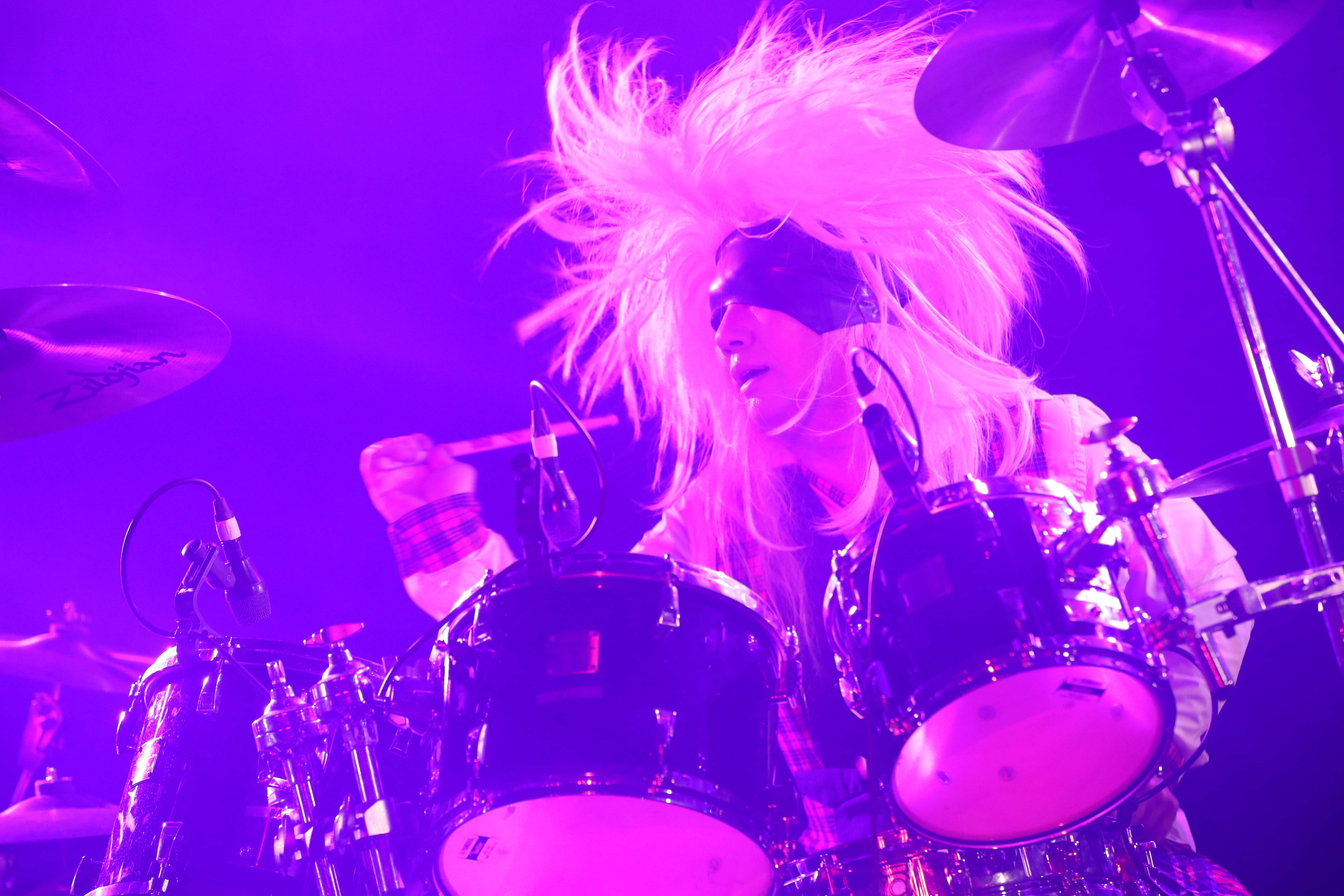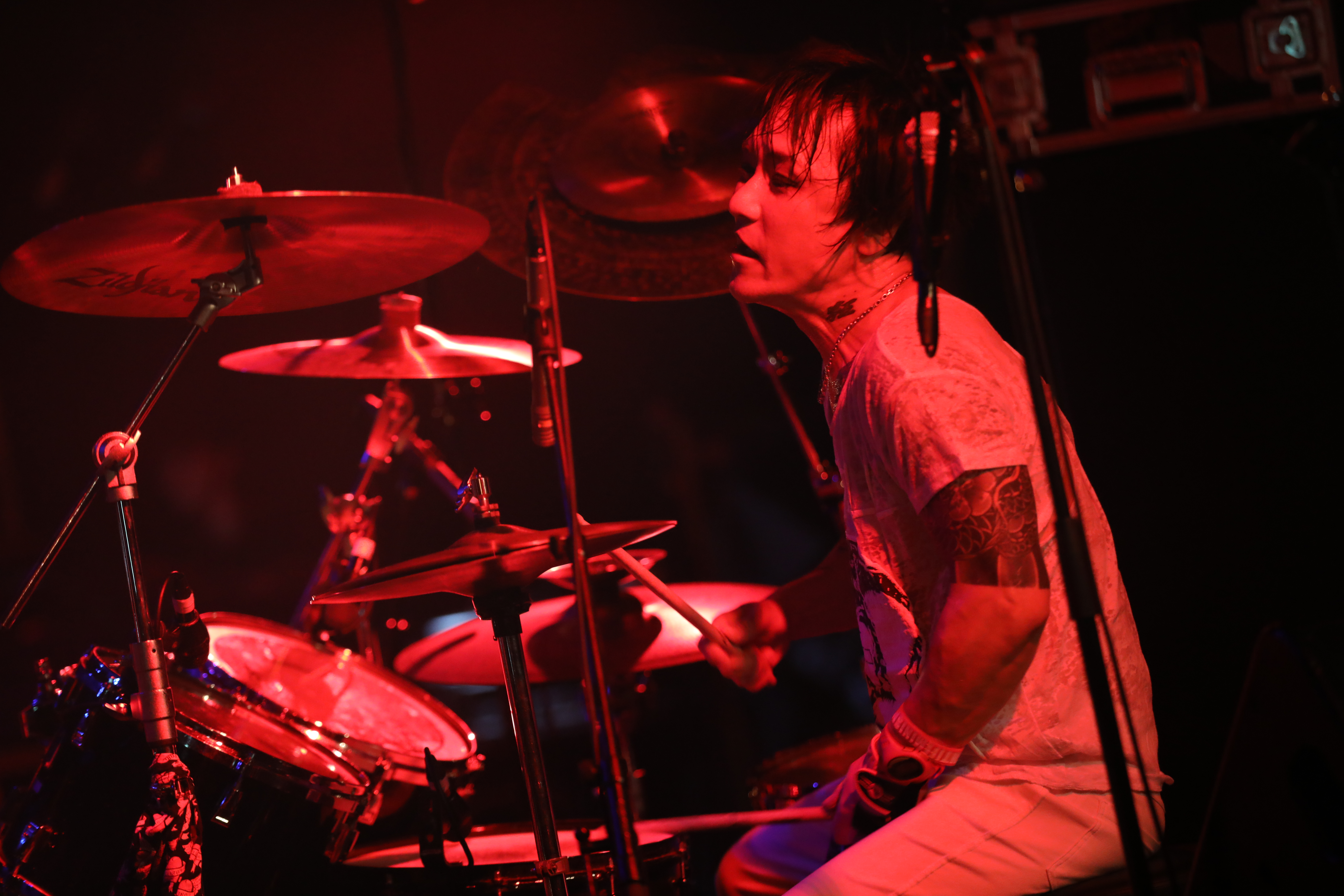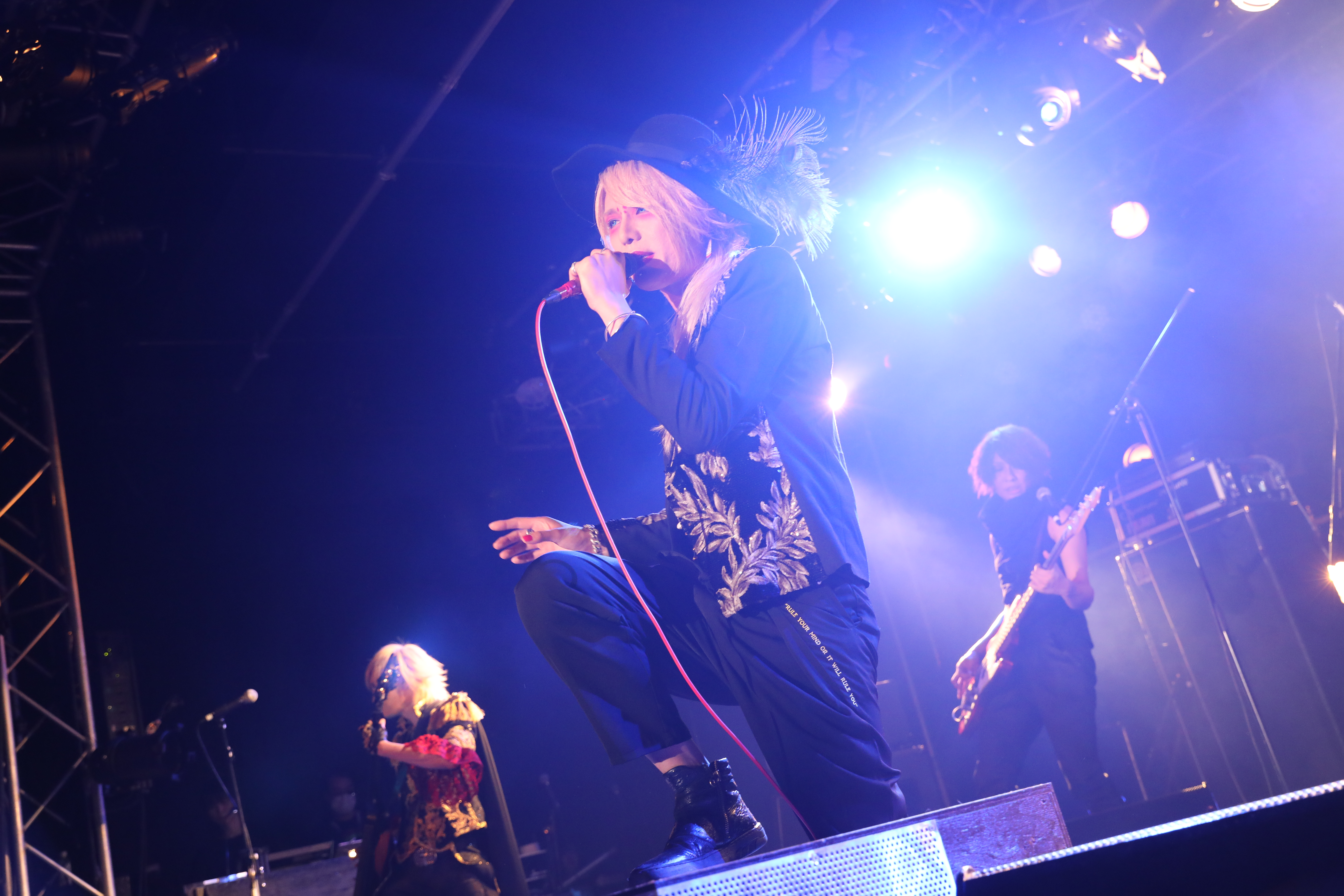 90年代のヴィジュアルシーンに激しい華を咲かせた覇叉羅の登場だ。幕が開くと同時に、そこには覇叉羅のメンバーたちの姿が居並んでいた。彼らは勇壮に、豪快に『VICTIM OF”D”』を突きつけた。激しいギターリフとブラストビートが絡み合い、観客たちの暴れたい感情のスイッチをガンガンに押してゆく。激走する演奏の上で、シャウトし、歌いあげるhideki。90年代のヴィジュアル系音楽の香りを、あの時代性が持っていたヤバい刺激を、覇叉羅が現代へ甦らせた。拳を振り上げ、ともにボイボイ叫び狂えばいい。あの頃に体感した、身体を芯から熱く震え立たせる興奮が、覇叉羅の演奏によって甦る。このヤバい空気感が、たまらない。