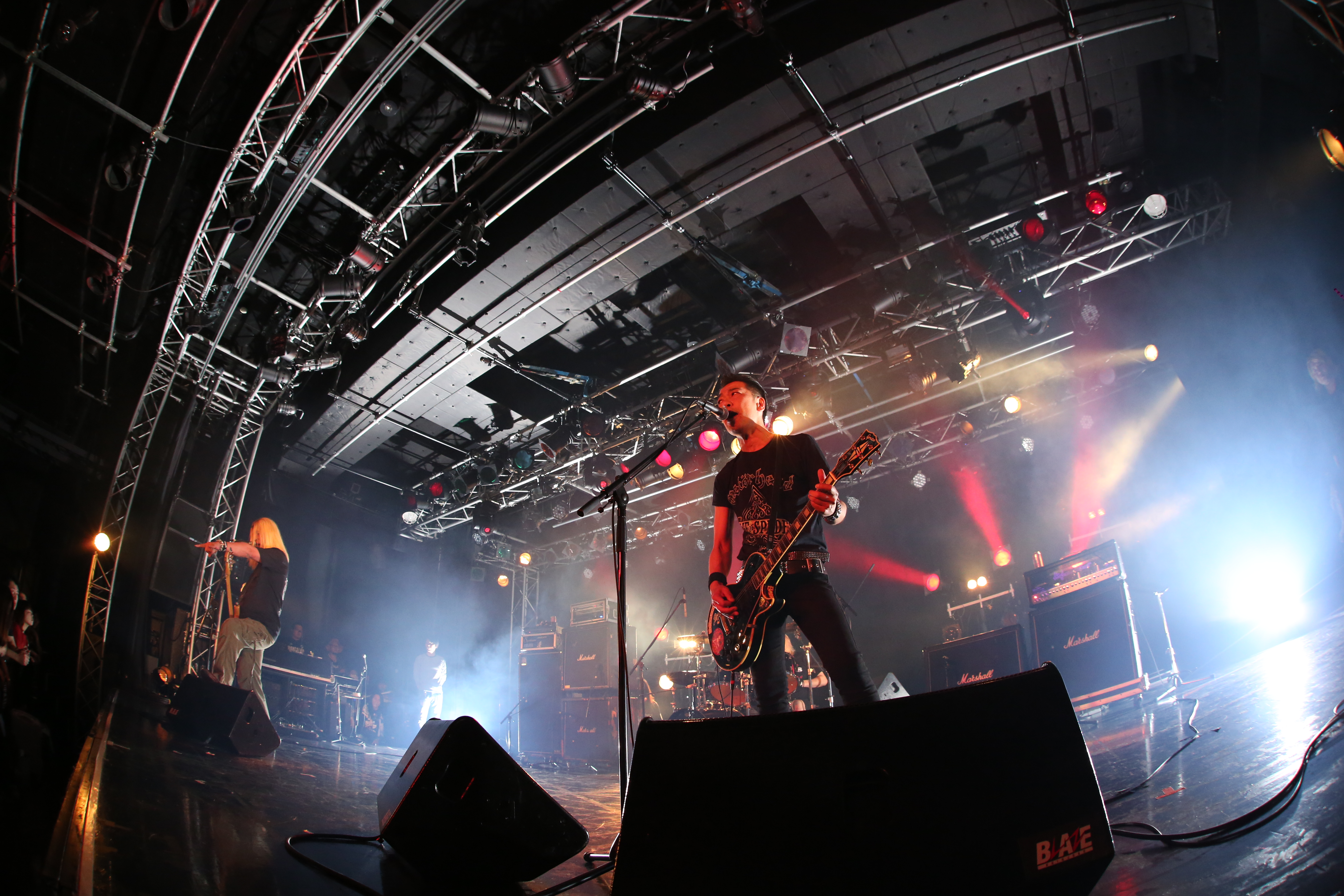 激しい同期の音とギターサウンドがシンクロ。5月に発売するシングルの表題曲『Celestial sphere』を通し、Sclaimはスリリングでハードな香りをフロアー中へ振りまきだした。サビでは滾る熱をぶつけ、観客たちをしっかり懐へ呑み込んでいく。次第に人が増えてゆく場内。客席後方にも飛び跳ね騒ぐ人たちがいたように、少しずつだが、Sclaimはファンたちを自身の懐へ呑み込んでいた。
