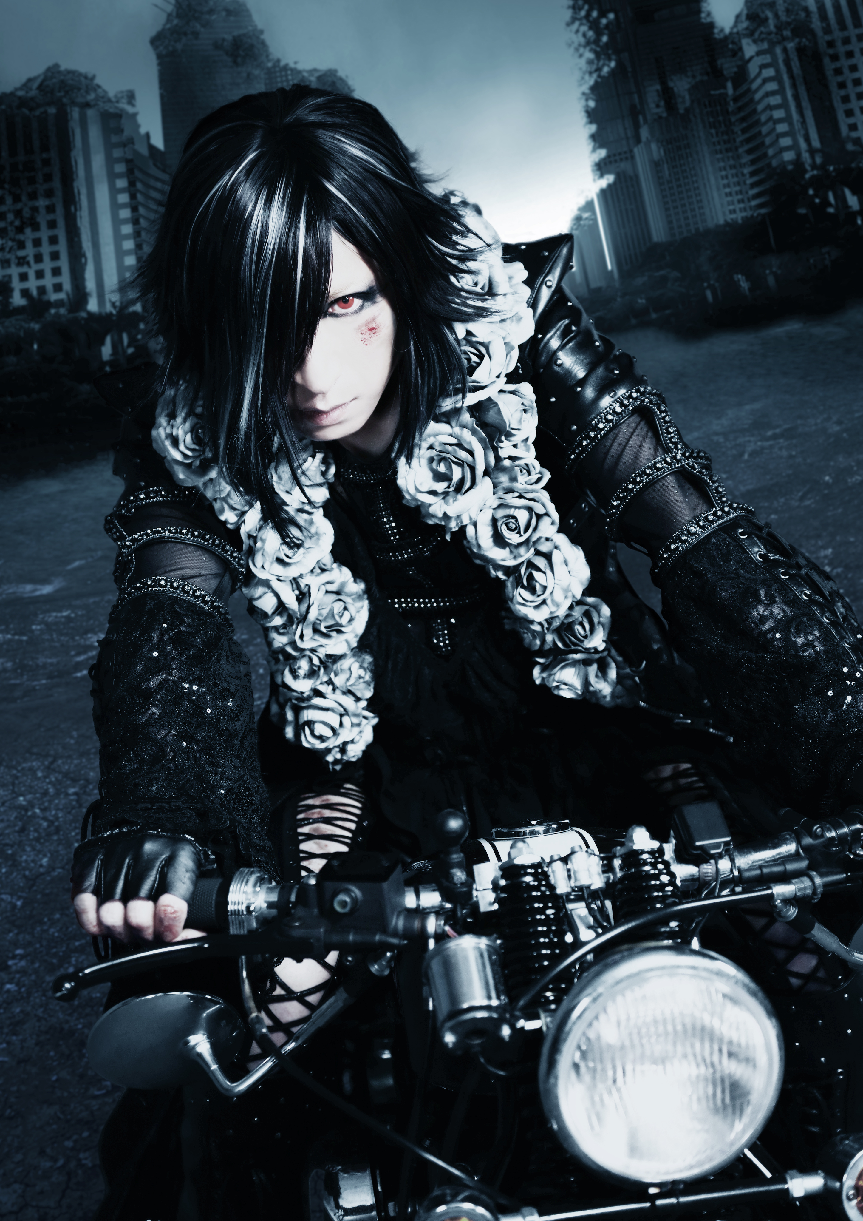 CDジャケットには、Vo.ASAGI扮するヴァンパイアの王の息子・ジャスティスが荒れ果てた街を背景にバイクに跨がり鋭く眼光を光らせる姿、転倒し煙を上げるバイクの傍で跪き何かに目覚める様子、さらにはバイク諸共倒れ込む衝撃的なシーンが収められている。