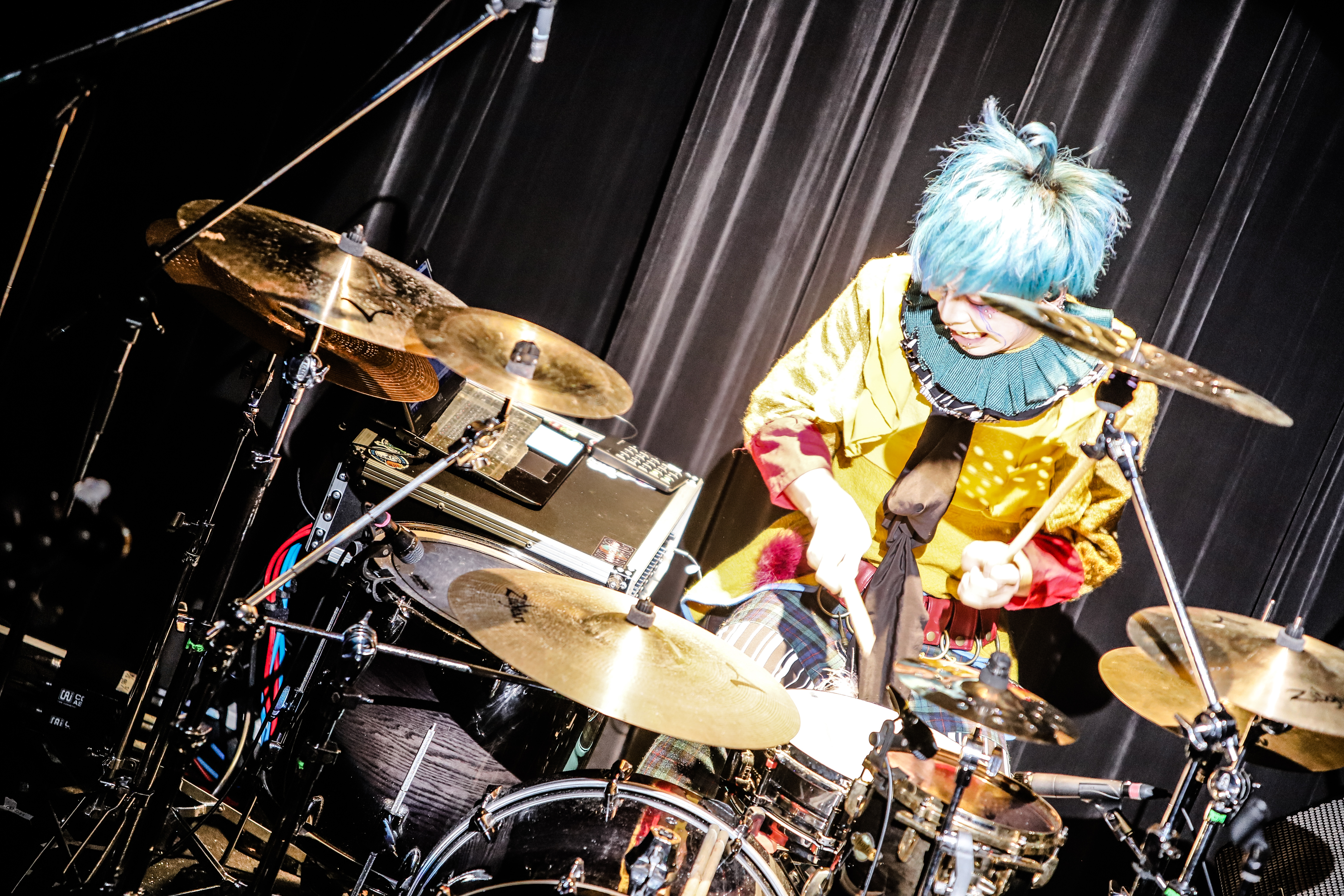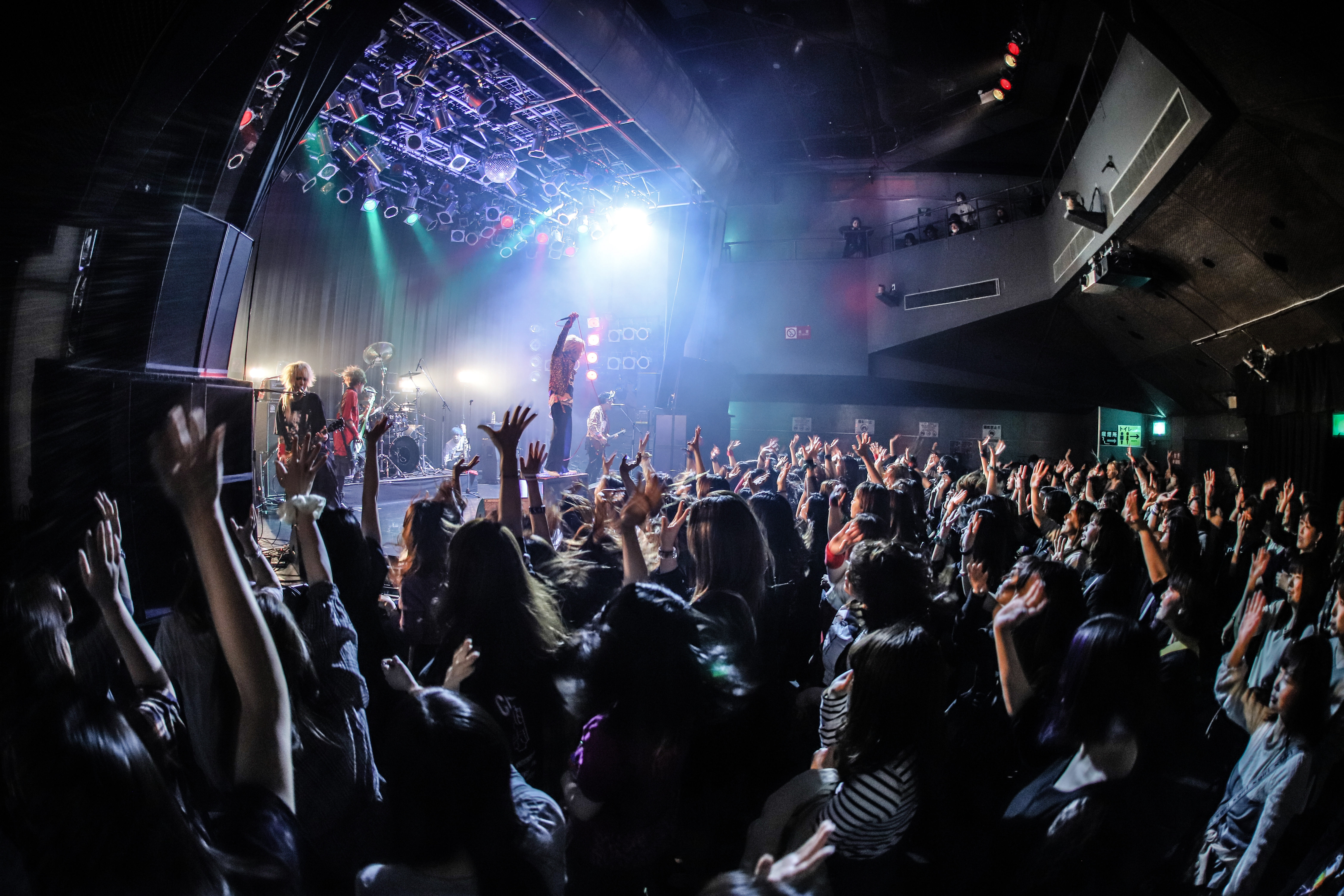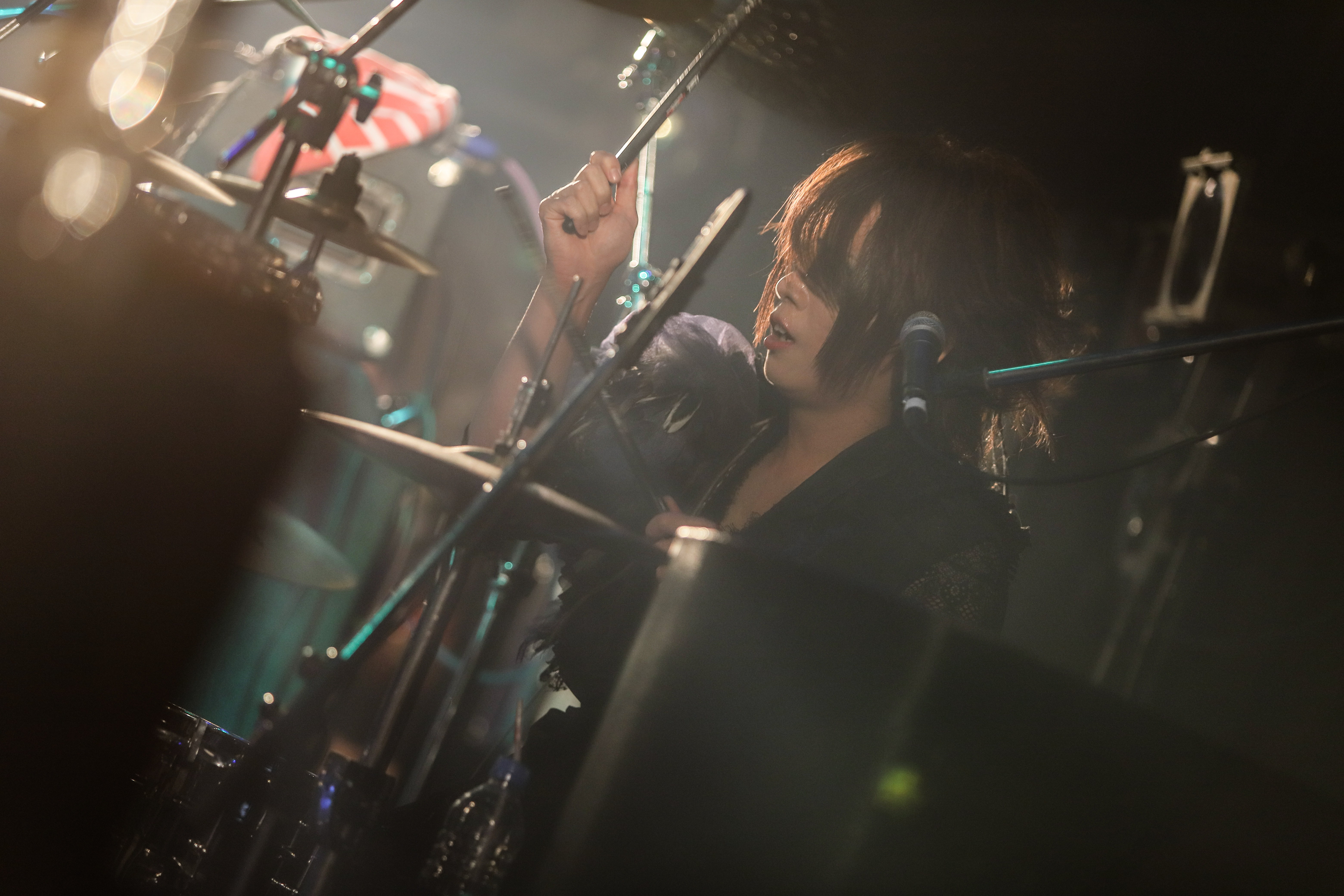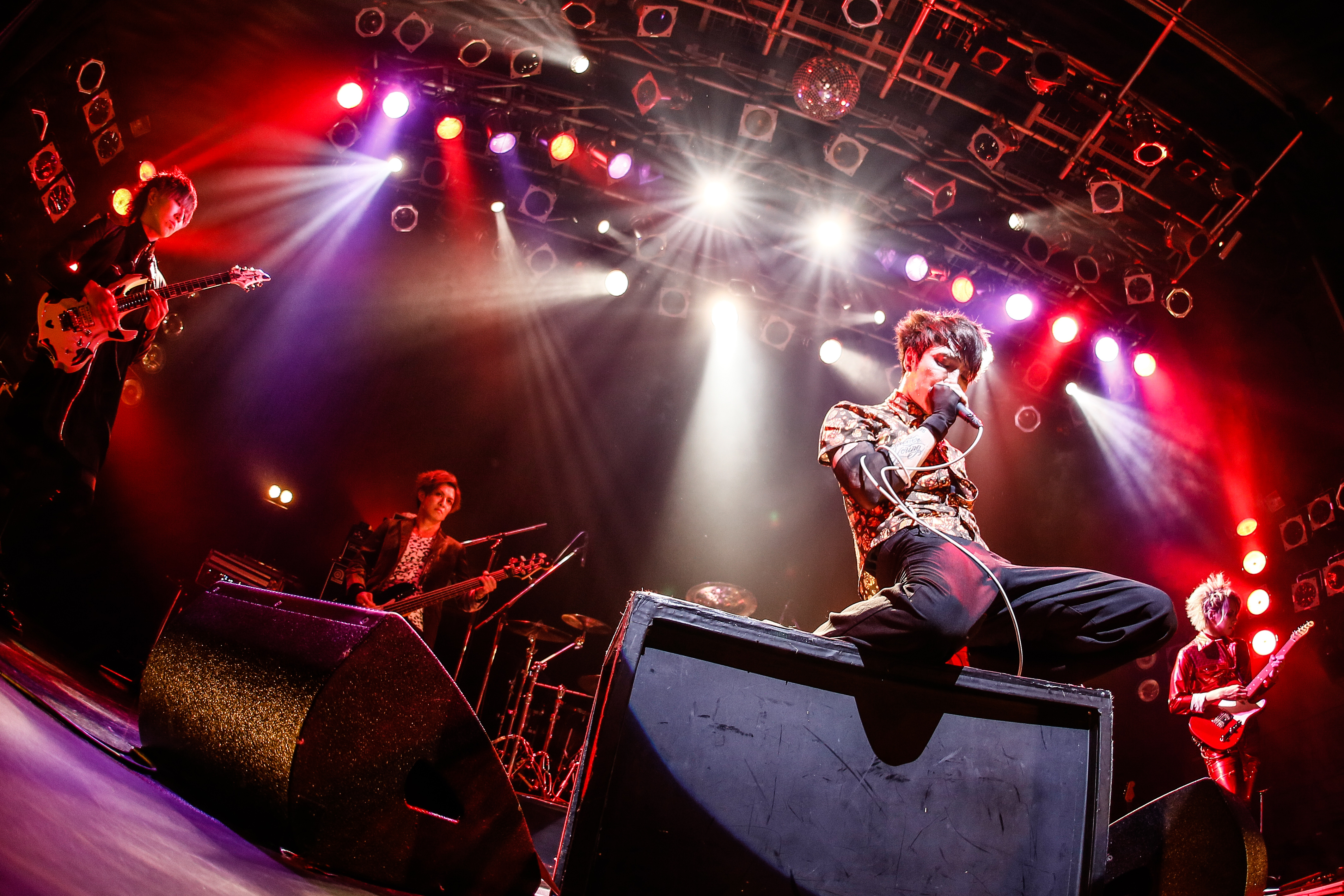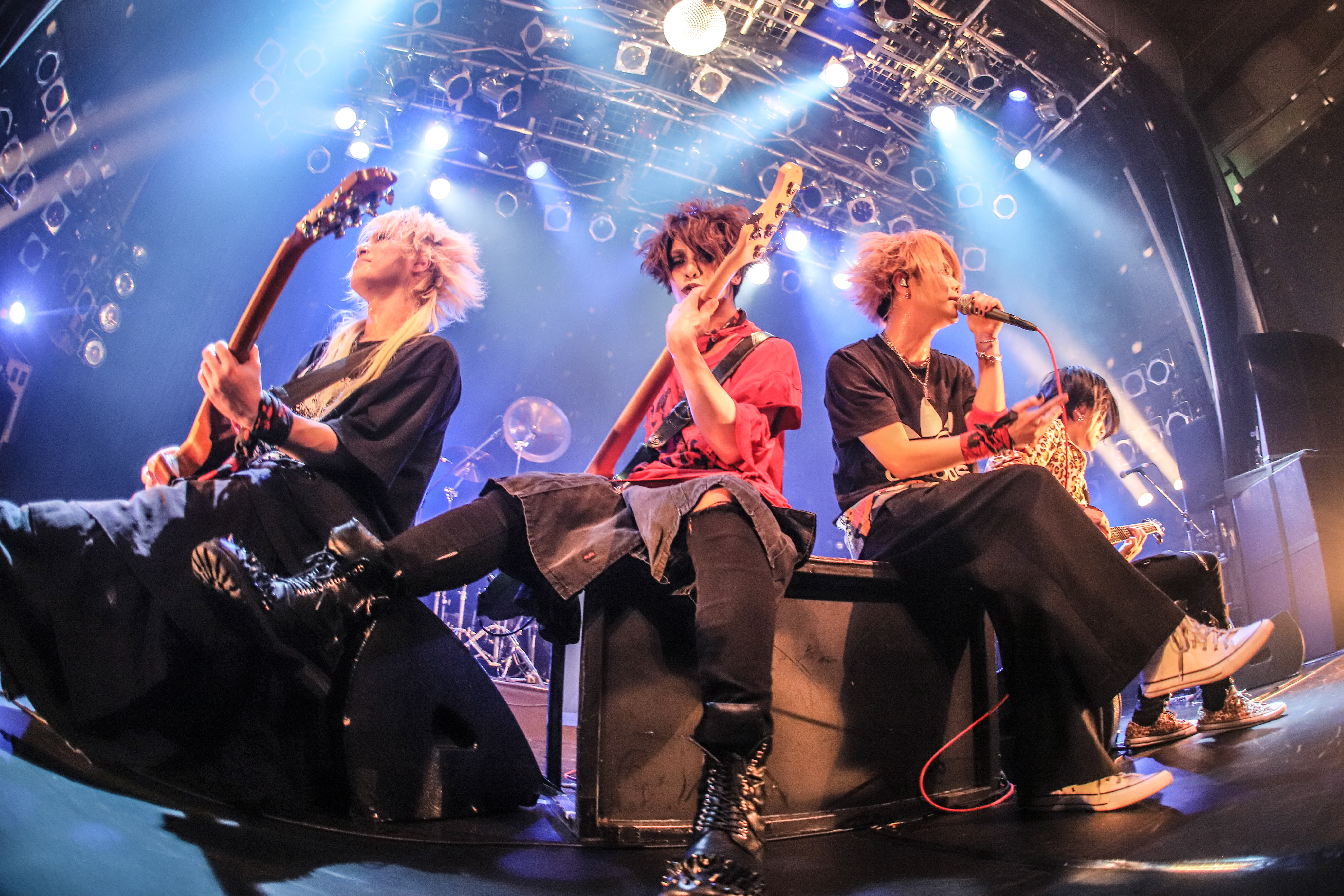 続く『シミ』では、重厚なラウドロックと疾走するハードコアな要素をミックス。祐弥の歌声の微妙さも、むしろ、彼らしい味となって見えていた。もちろん演奏はこのメンツだもの、壮絶な迫力で押し迫れば、観客たちも無邪気に暴れながら4人のセッションを楽しんでいた。フロント陣が暴れる中、一人Kだけが、意外と冷静にベースを弾いていたこともお伝えしておこう。