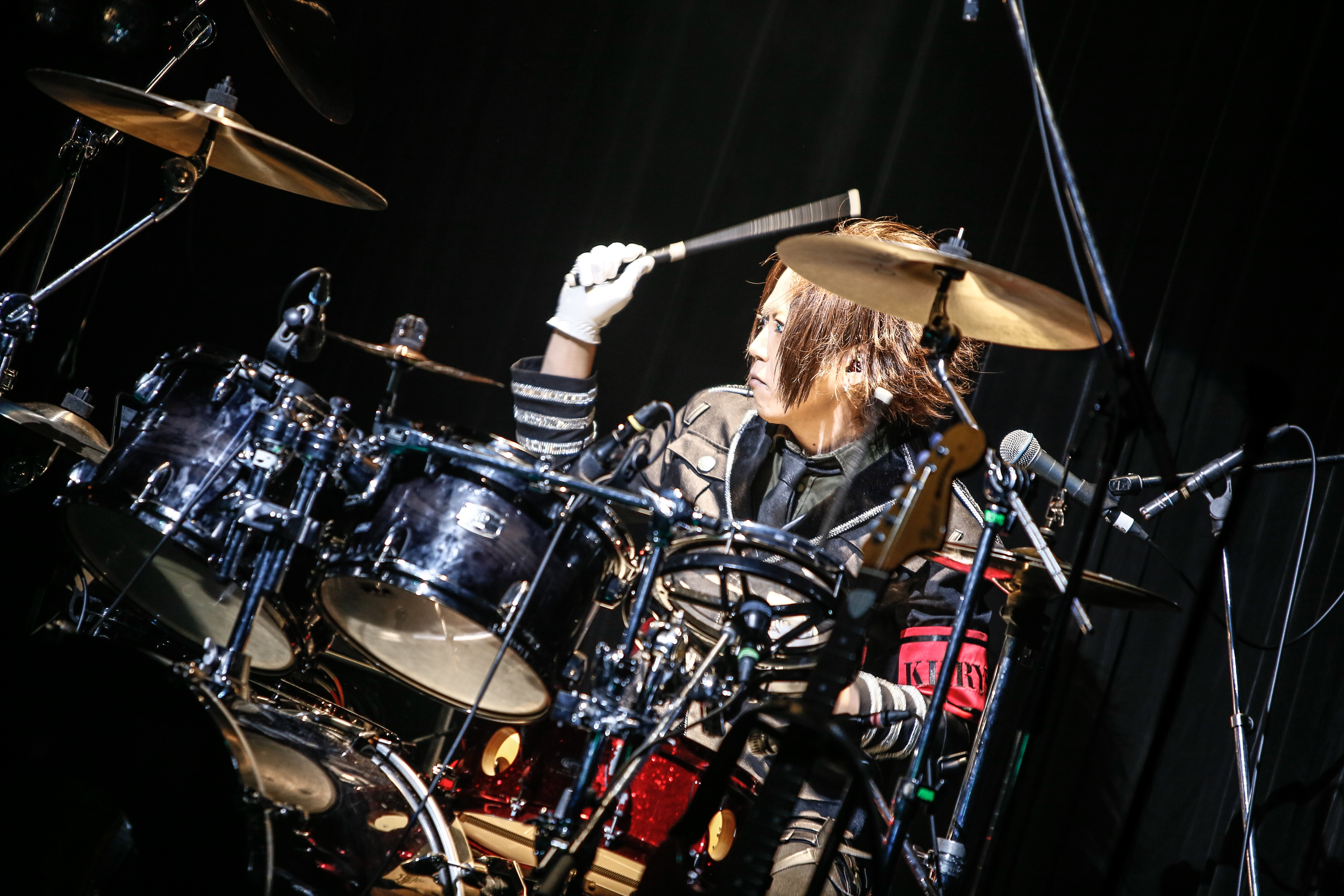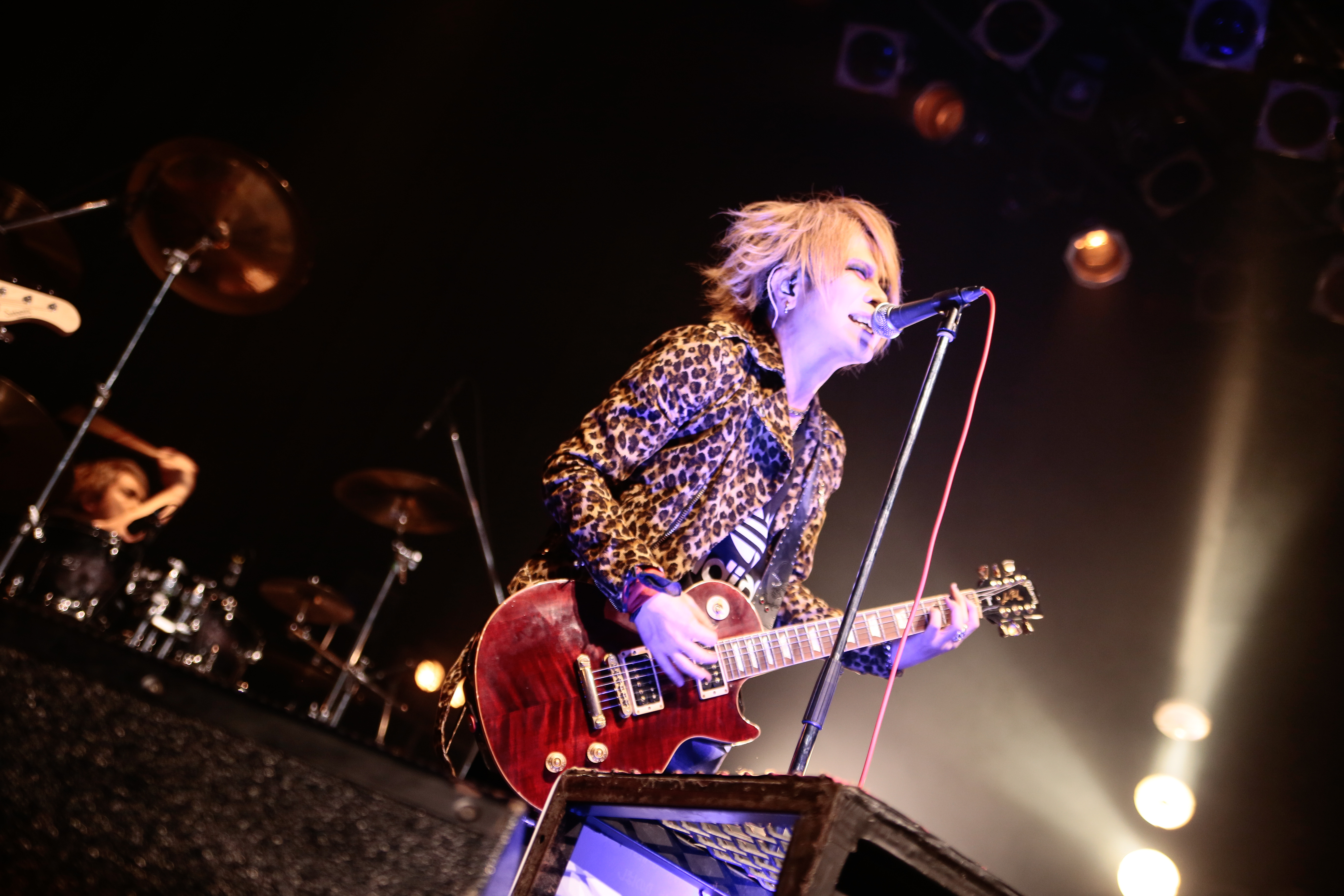 フロアから飛び交う凄まじい声・声・声。熱い声の数々に呼ばれるようにKが舞台へ姿を現した。タイゾ(G)/千歳(G) /Ivy (b)/ばる(Dr)というメンバーのもとトリを飾ったKのライブは、ソロ活動の始まりを告げた表情の一つ『Rebirth』から幕を開けた。身体をズシッと貫く演奏に触発され、フロア中から熱い手拍子が沸き起こる。K自身は、重い演奏を背に雄々しく、揺れる感情のままに歌声をはべらせていた。開放的なサビ歌に触発され騒ぐフロア中の人たち。Kの煽りに合わせ声を上げれば、間奏では冴えたギターソロも披露。これもKの性格なのか、けっして前のめりにではなく、会場中に生まれた熱気を抱き締めるよう雄々しくも暖かな声色で彼は歌いかけてゆく。