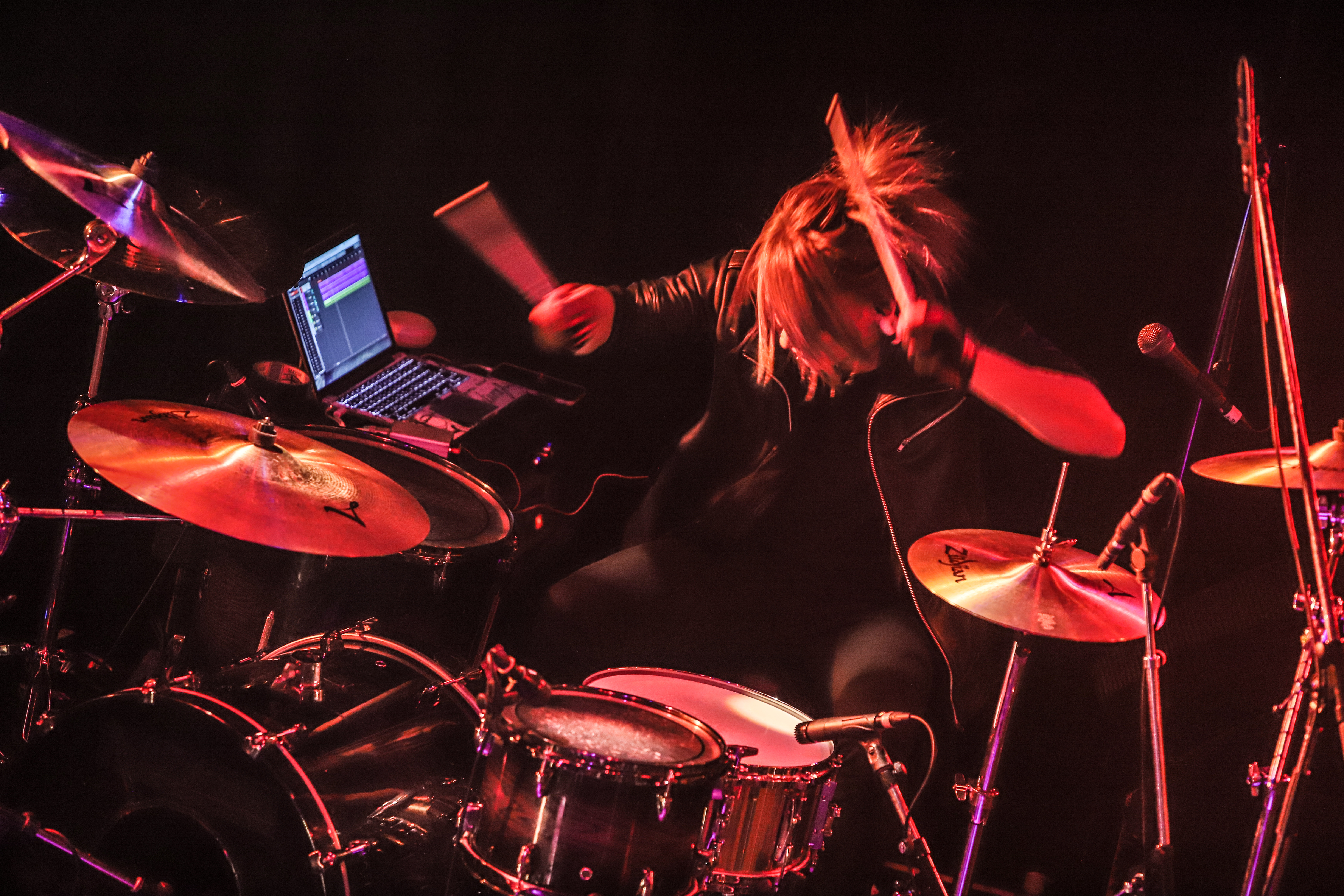 轟音と共に、一気に速度を上げて駆けだした演奏。舞台上から観客たちへ挑みかかる勢いでKHRYST+は『FREAKING OUT』をぶつけてきた。牙を剥き出しに襲いかかる野獣のような姿で、BYOは観客たちをけしかける。その気迫に負けまいと挑みかかる観客たち。これぞ、KHRYST+がこの空間に求めていた理想の遊び場だ。