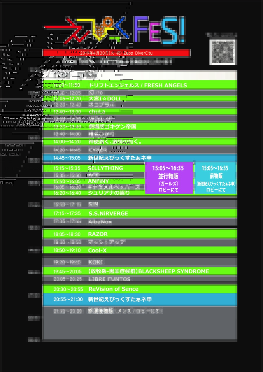 出演者:新世紀えぴっくすたぁネ申/ReVision of Sence/ SILLYTHING /KOKI/ACE/chuLa/S!N/WILL-O/神使轟く、激情の如く。/椎名ひかり/ジュリアナの祟り/マッシュアップ/CY8ER/【放牧系-黒羊症候群】BLACKSHEEP SYNDROME/LIBRE FUNTOS/S.S.NiRVERGE/RAZOR/キャラメルペッパーズ/Cool-X/ANFiNY/ドリフトエンジェルス/FRESH ANGELS/AlbaNox/劇場版ゴキゲン帝国/ネコプラ∞/幻.no/大宮I☆DOLL/