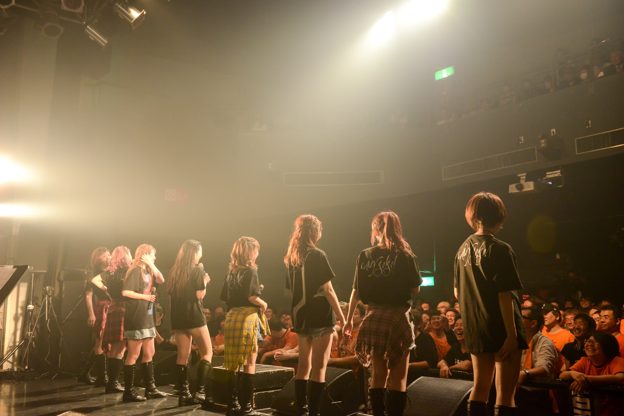 「はげしく揺らせ!」と、荒々しく身体を揺らし観客たちを挑発。でも、『overdrive』を歌う彼女たちは笑顔だった。熱狂の中へ身を置くことが最高の喜びだと感じながら、「はげしく壊せ!」 と楽しそうに挑発し続けていた。自分たちと仲間たちとの意志を一つに守り続けることを宣言するように。これからも余計な雑音など熱狂と絶叫で掻き消しながら共に逞しく生き続けようと誓いあうよう、8人が「身勝手な大人には邪魔させない」と力強く『Yes-Yes-Yes』を歌えば、『ありのまま、思うままに走れ!』でも熱を持って走り続ける演奏に合わせ飛び跳ねながら、沸き続ける観客たちとこの瞬間を無邪気に楽しんでいた。彼女たちは、自分たちが心の底から笑顔で声を張り上げれば、それが、この空間を同じ色に染め上げる力になることを知っている。だから8人は、「もっと騒げ」と観客たちを笑顔で煽り続けていた。