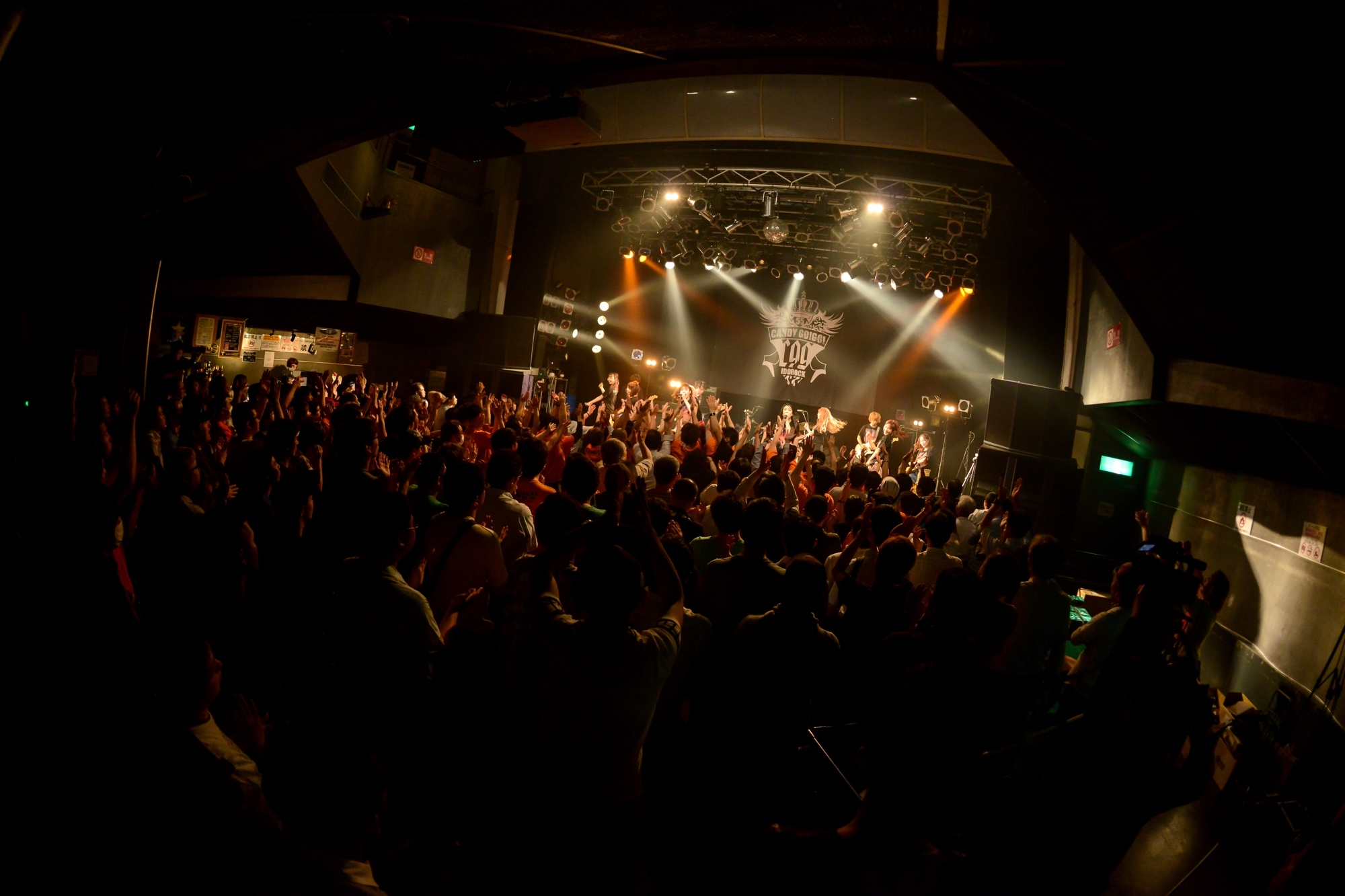 楽曲は、一気にロックなエンジンを熱く震わせた。沸きだすエナジーを振りまき、一緒に踊り騒げと挑発するように突きつけた『JACK!』。笑顔で挑発するメンバーたちへ熱した声をぶつける観客たち。ブレーキが壊れ暴走したCANDY GO!GO!という列車は、熱狂を喰らい走り続けてゆく。爆走する演奏へキラキラ眩しい輝きを加えるように、彼女たちは『Cinderella Call』を届けてきた。この歌に触れるたび、沸きだす気持ちを抑えられず、くしゃくしゃな笑顔で彼女たちに声をぶつけたくなる。この歌が彼女たちを、そして、このフロアにいる僕ら全員を眩しい輝きの中へ連れ出してゆく。この瞬間を抱きしめながら、信じた夢の先に広がる景色を一緒につかみたい。