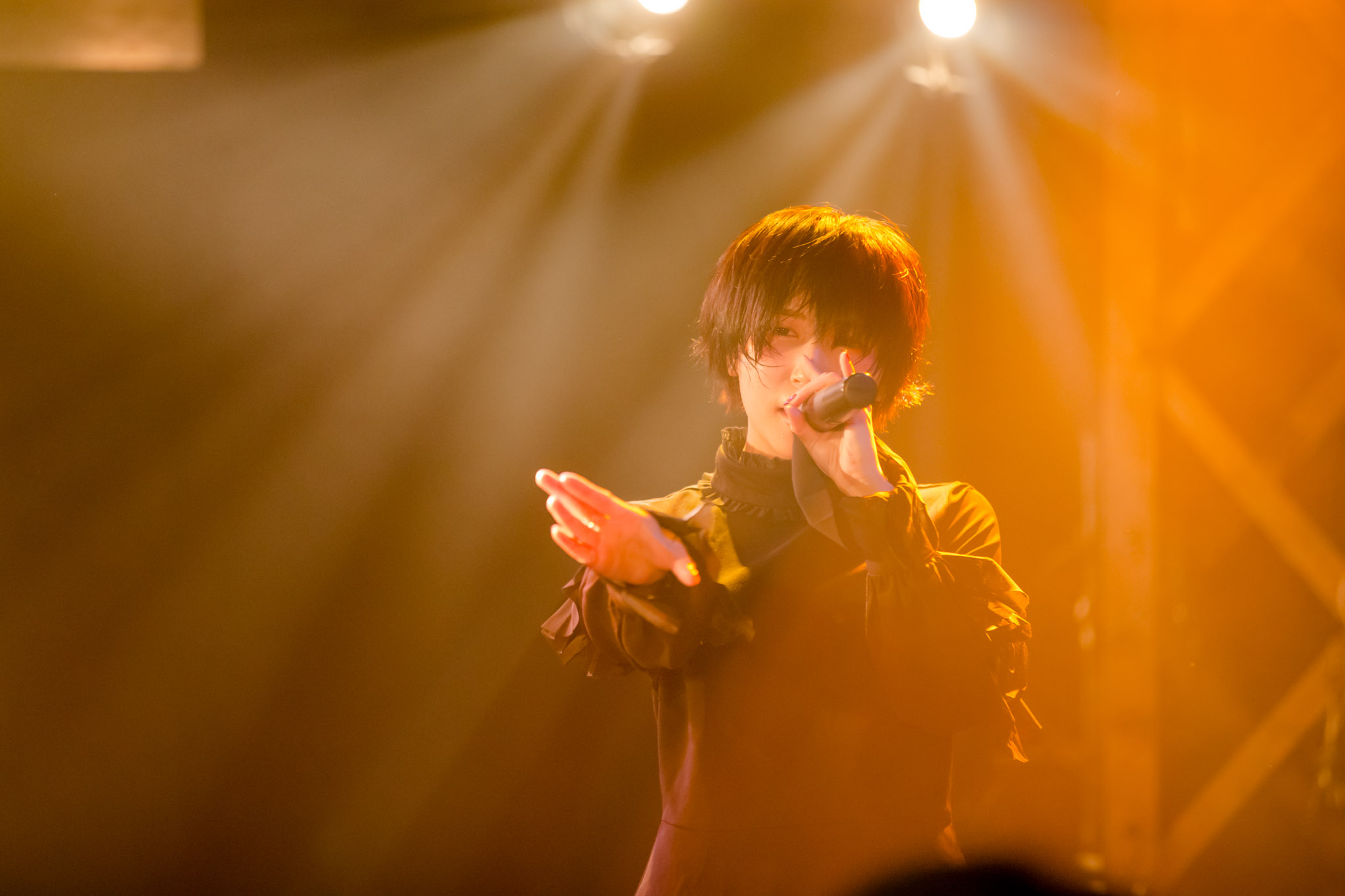 メンバーの煽りを合図に、楽曲は唸りを上げて襲いかかる。ここが新たな物語の始まりの地だと宣言するように、Aphroditeは凛々しい歌声を魅力に『GENESIS』を突きつけた。荒々しい楽曲とは裏腹に、舞台の上を華麗に舞い踊るメンバーたち。その姿は、奈落で無邪気に戯れる黒い天使たちのよう。美しさと激しさが絡み合う『Utopia』でも、5人は、神々へみずからの身を、想いを捧げるように歌い踊っていた。彼女たちは歪(ひず)む演奏の上で祈りを捧げるように、澄み渡る歌声を闇の彼方で輝く空まで届くようにと歌っていた。