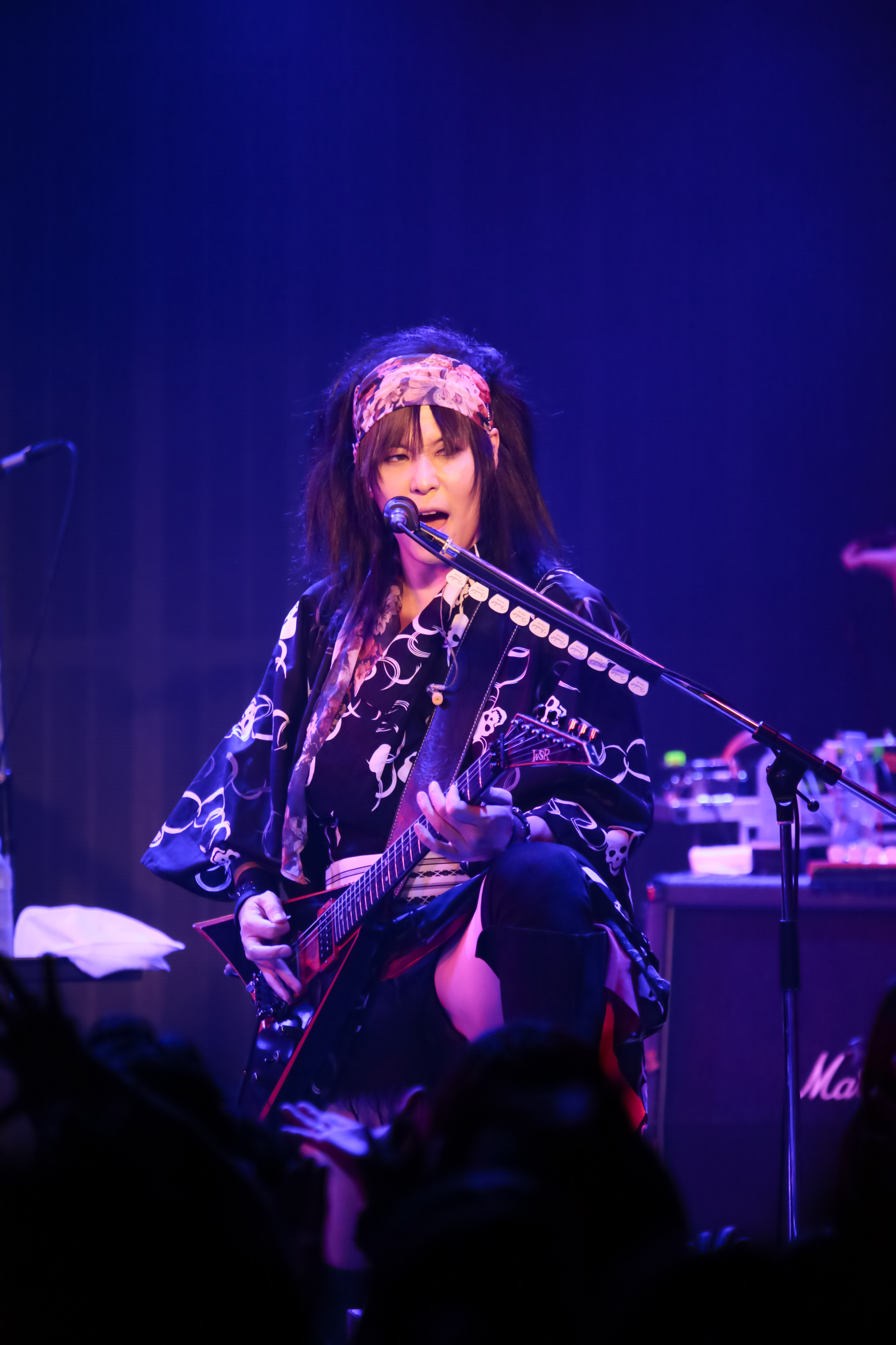 ザクザクとした野太い千聖のギターが、身体を跳ねさせるロックンロールなリフビートを刻みだす。「UFO 対 ラオウ」の登場だ。扇子を扇ぎながら歌うHAKUEI。パーティロックな演奏へ誰もが身を任せ、心地好く身体をシェイク。誰もが童心に返り、ロックンロールな宴へ無邪気に身を任せ身体を揺らし続けていた。