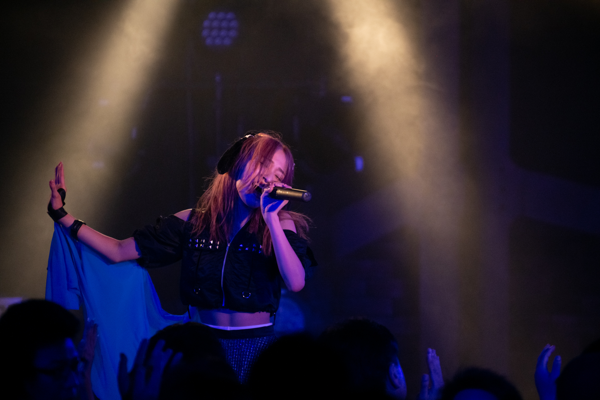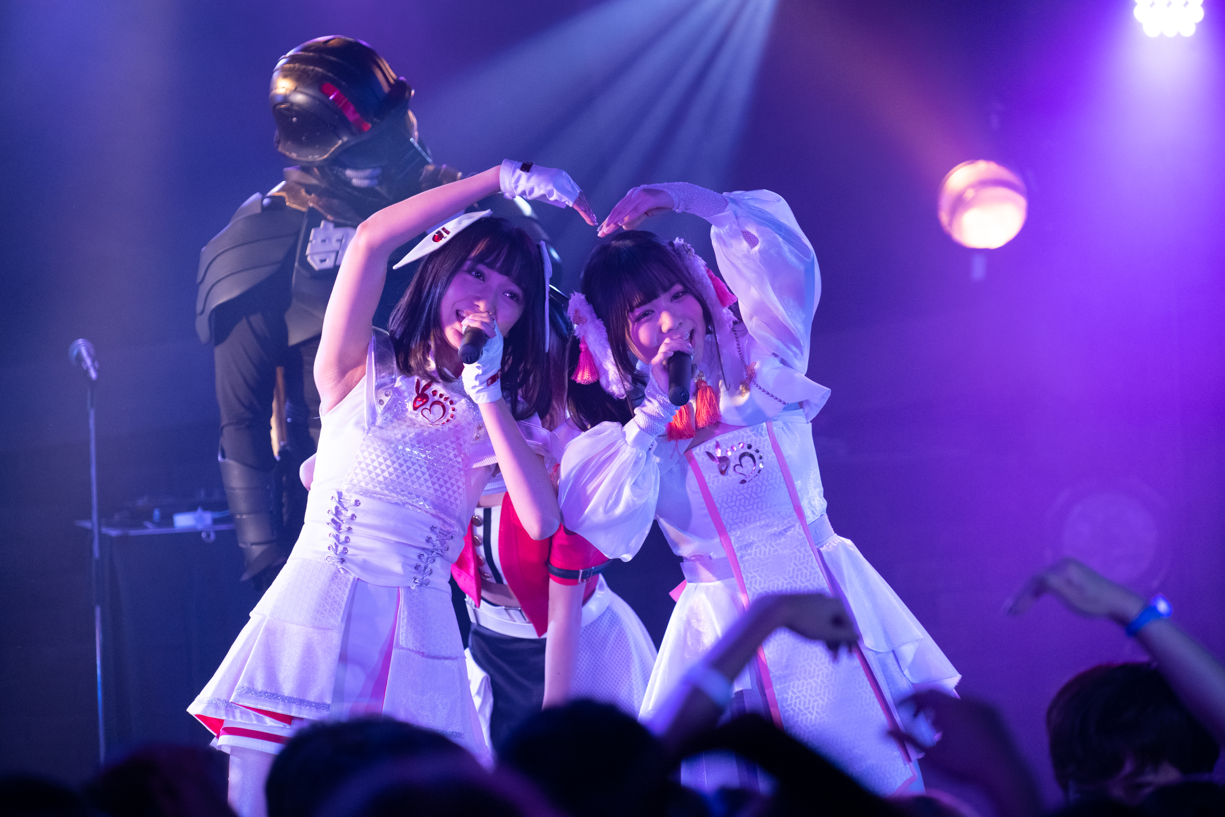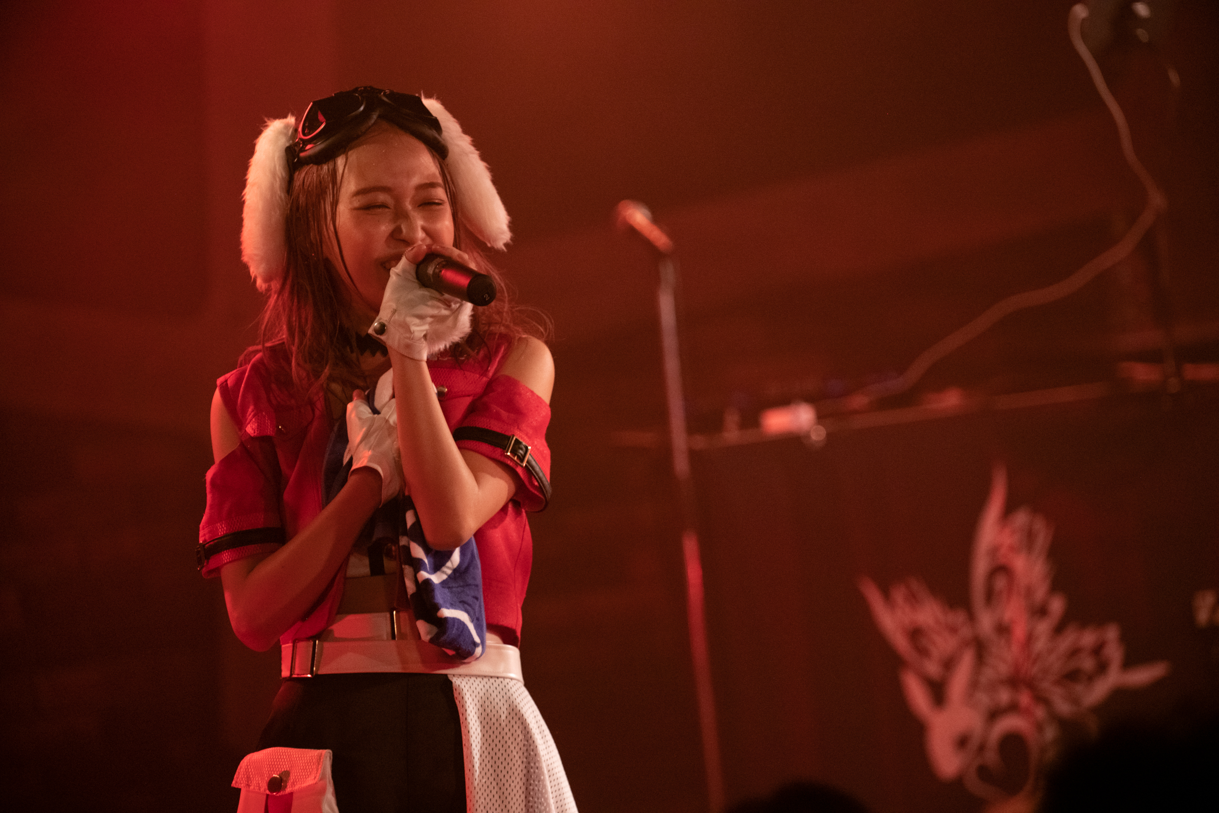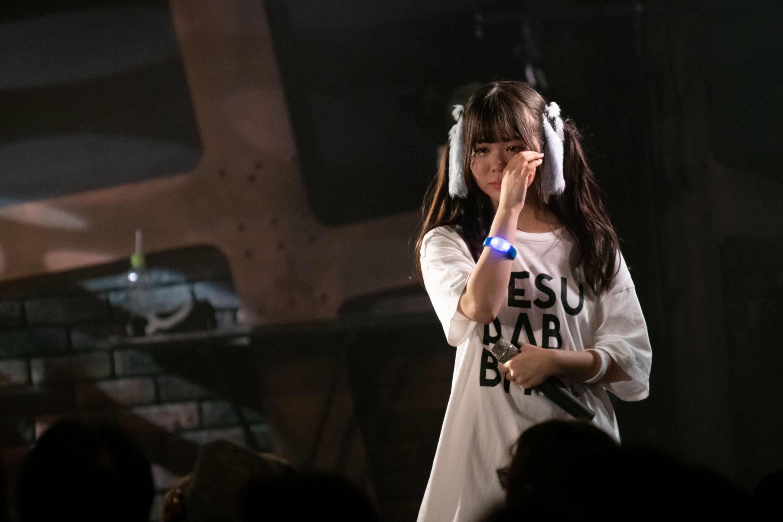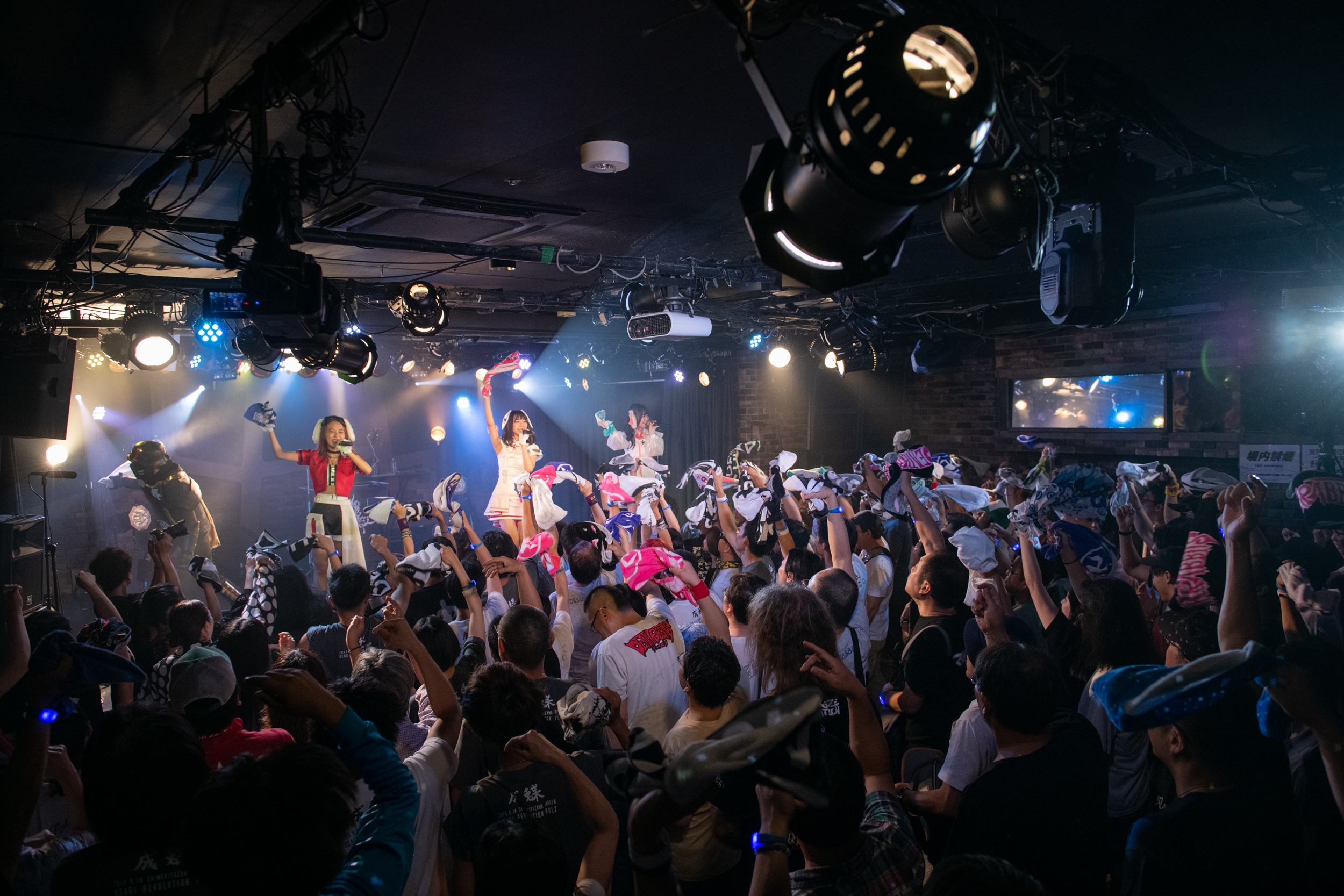 止まることなく楽曲は「2nd Attack」へ。猛々しい楽曲の背景から聞こえるBUCHOのデスラップも嬉しいインパクトだ。激しく走る楽曲の上で、3人は可愛さたっぷりに「にゃんこ 子にゃんこ 大にゃんこ」と歌いだす。メンバーらと観客たちによる熱した掛け合いも含め、可愛さに心が熱く震えながらも、3人の誘いに胸を騒がずにいれなかった。さらに「うさぎストリーム2」では躍動的なダンスパフォーマンスを通して観客たちを煽りだす。フロアでも、観客たちが3人の動きに合わせぴょんぴょん飛び跳ね叫び続けていた。彼女たちが飛び跳ねるたびに熱が大きく脹らんでゆく。そして…終盤に。