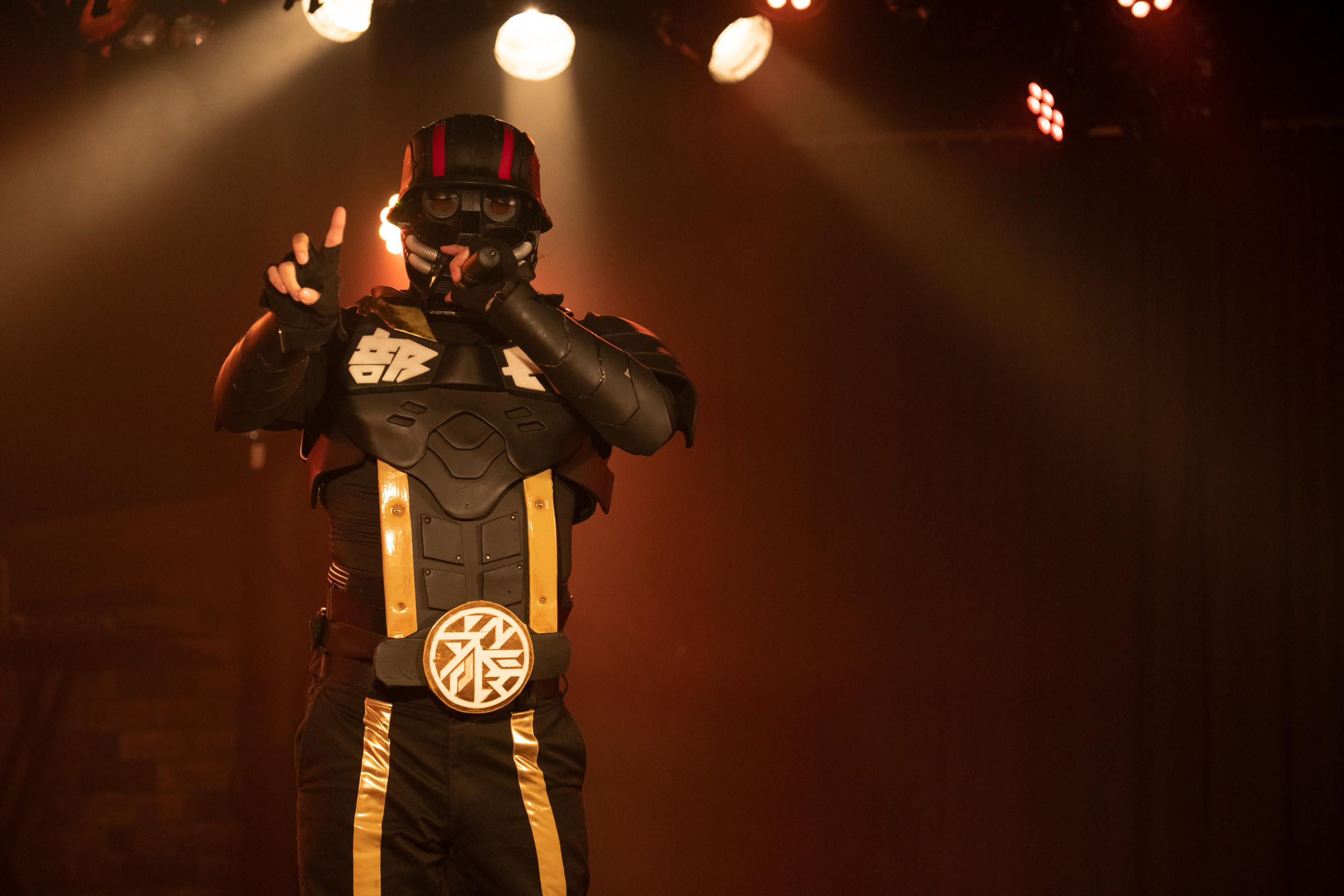 「一緒にぴょんぴょん出来る?!」の声を合図に、右手をうさぎの耳に見立て「うさぎのきもち」を歌いながら左右に飛び跳ねる3人に合わせ、フロア中の人たちが同じく左右に民族大移動。「現場こいやー」の声に同じく声を張り上げ熱狂する様も、ライブだからこそ味わえる光景だ。高ぶった熱へ情熱を描き加えるように定番曲「デスラビッツ軍の七ケ条うさぎのきもち」へ。激しく荒々しく煽るBUCHO。どんどんカオス化してゆくフロア。途中飛び出した、DESURABBITSのライブを楽しむための七カ条。その誓いを胸に、誰もが「We Are デスラビッツです」と3人と一緒フロア中から響く大きな叫び声が唸りをあげてゆく。