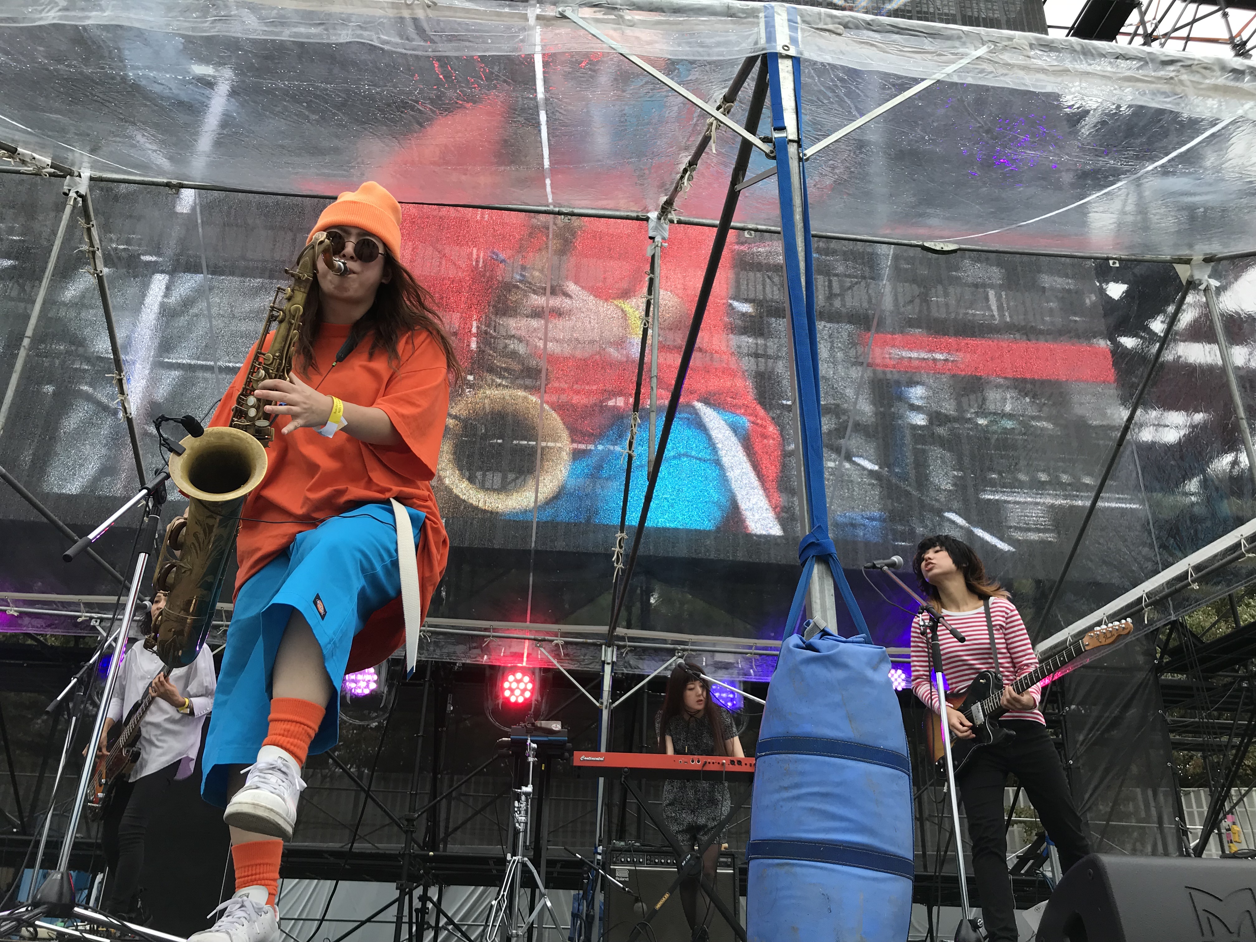 BimBamBoomは女性のみで構成され、正統派ルーツミュージックにパンクミュージックの要素がミックスされたサウンドが特徴。女性バンドとは思えない骨太なグルーブと一度聞いたら口ずさみたくなってしまうキャッチーなコーラスが言語の壁を超えて訪日外国人からも人気を得ている。この日もワールドカップということで多くの外国人観光客がおり、そのリズムに合わせ盛り上がっている様子が伺えた。