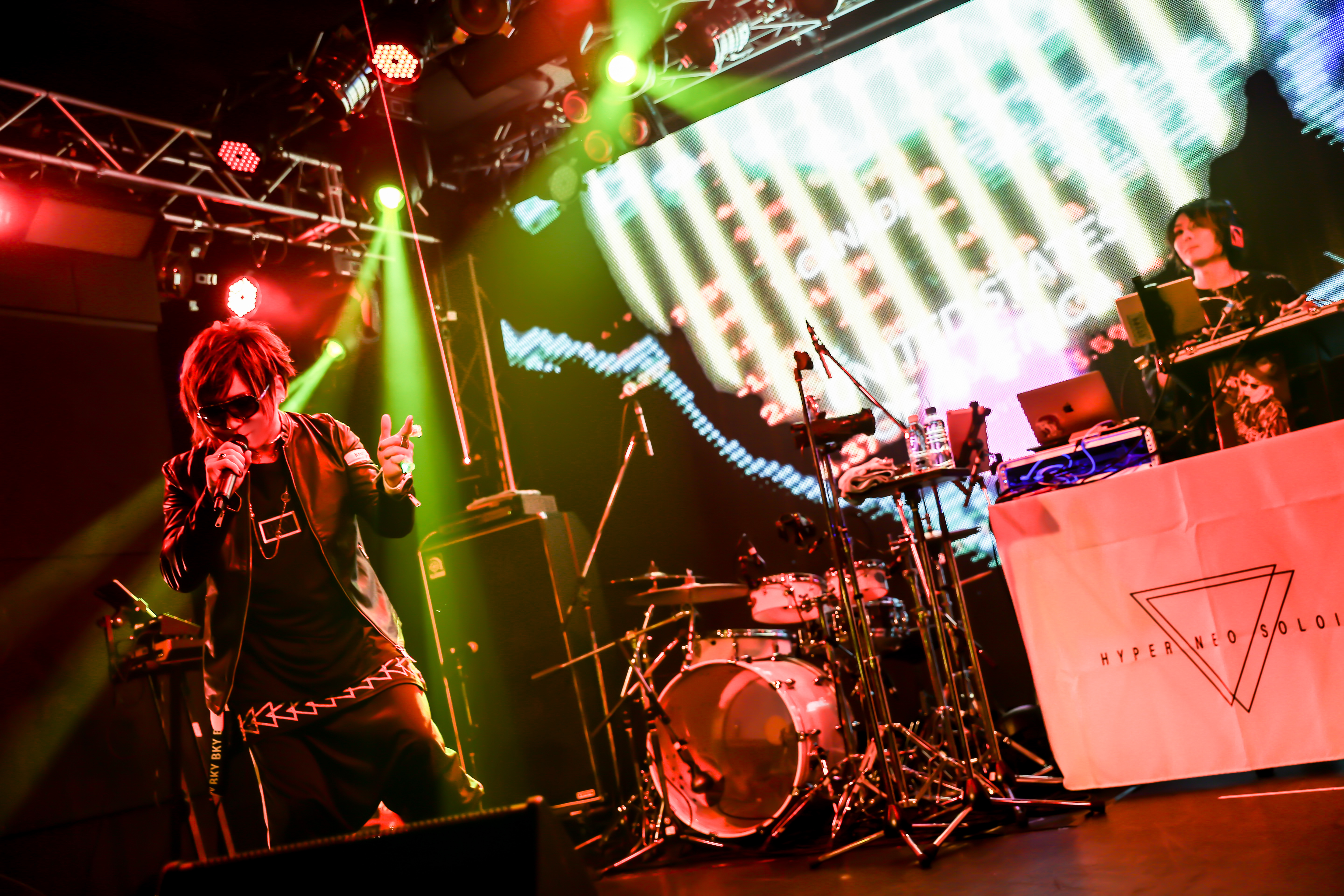 エスノサイコティックな音色が会場中を包み込む。Rickyは「SYNCHRO2CITY」を通し、異次元の扉を開き、観客たちをパラレルな世界へと導き出す。さぁ、Rickyと一緒にデジタルな世界で踊り騒げ。Rickyの動きに合わせ、一緒に振り真似しながら理性の鍵を外してはしゃぎ続けようか。誰もがサイリウムを手に、Rickyの動きとシンクロしながらパーティに興じていた。