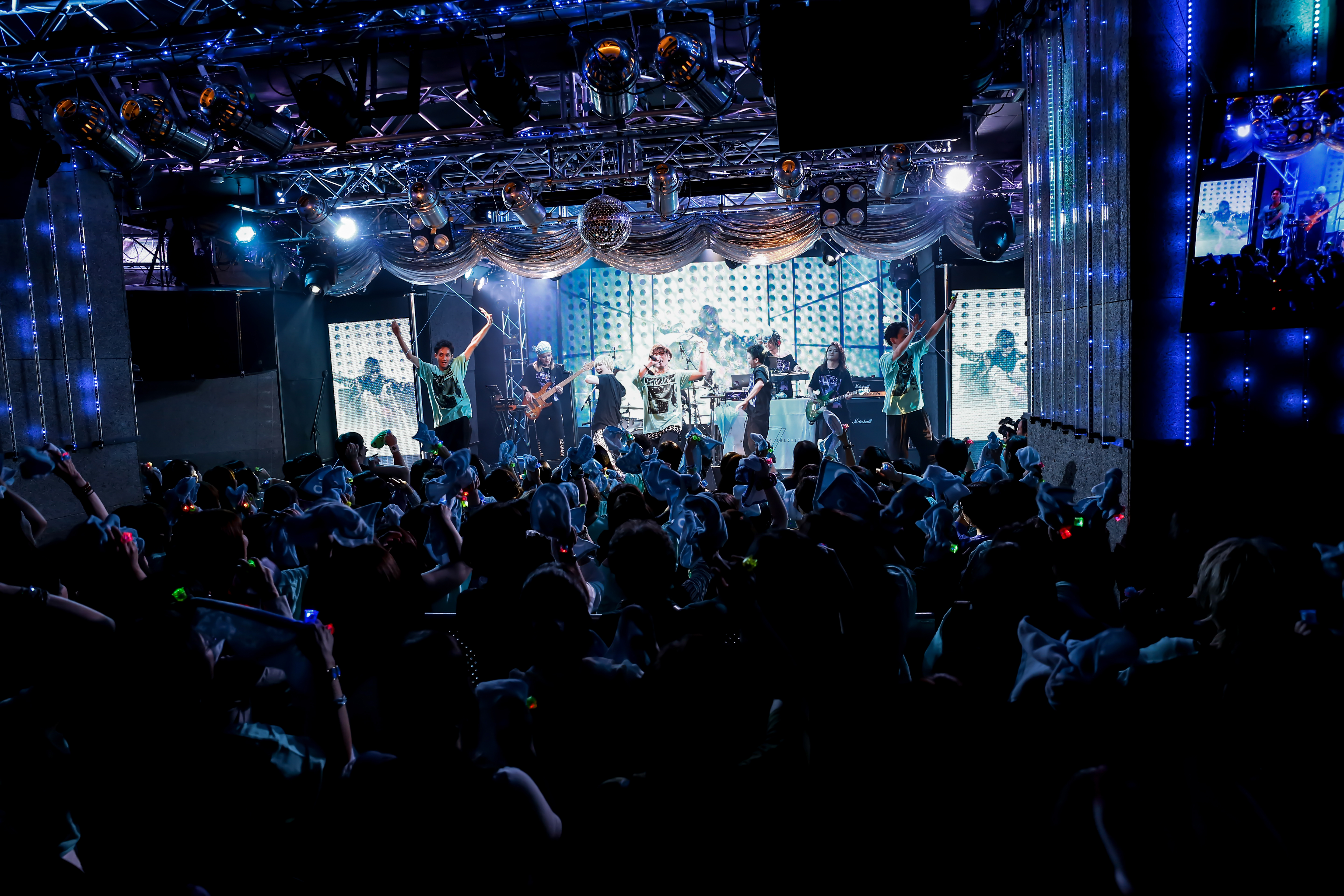 重厚なのにカラフルなEDMナンバー「曖昧モラトリアム」の登場だ。スケール大きなダンスビートの上で雄々しく響くRickyの歌声。サビでは、会場中の人たちが踊り、跳ね続けていた。さぁ、このままイキきってしまえ!!
