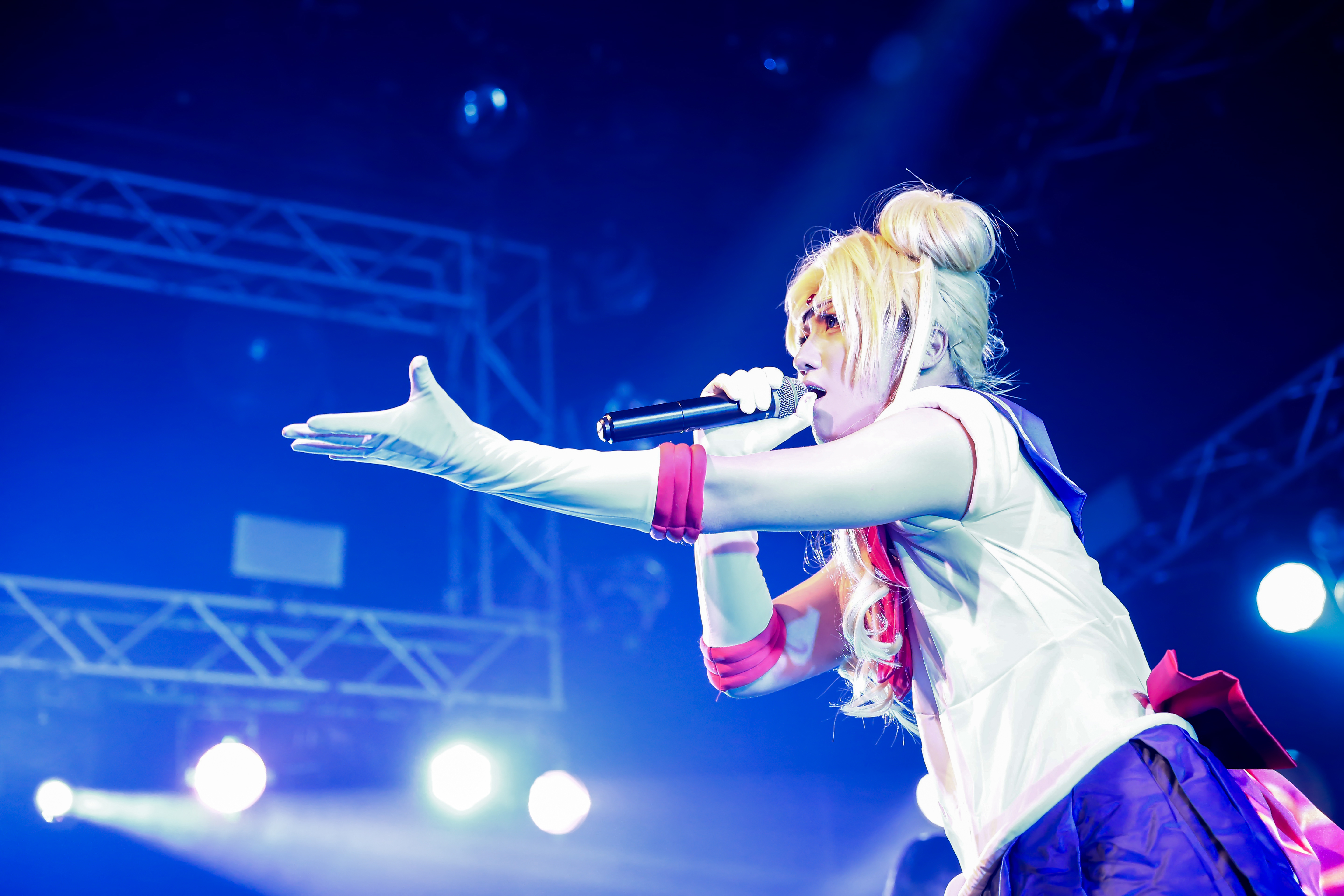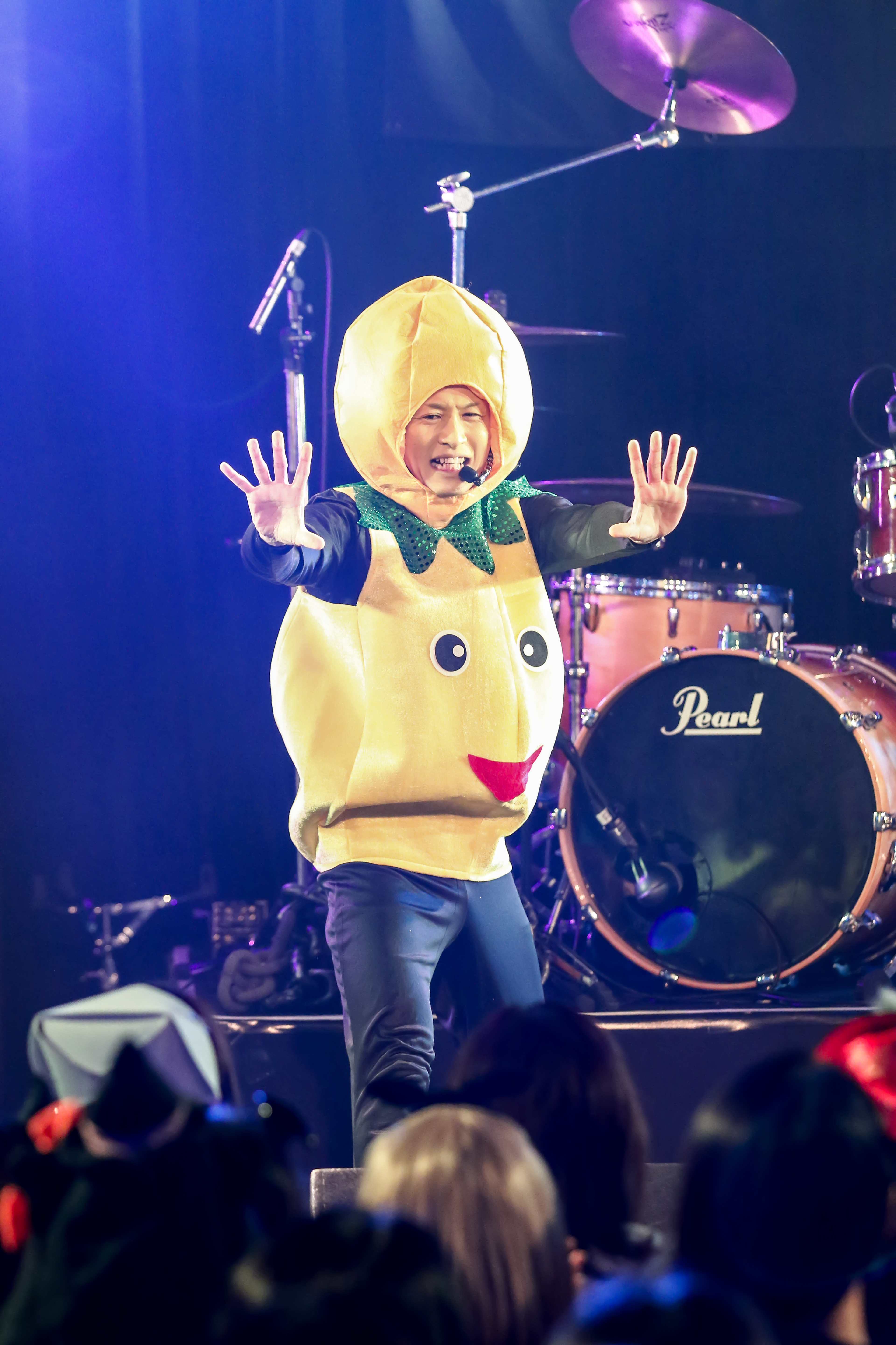 出演するたびに観た人たちの度肝を抜く、奇抜で趣向を凝らした姿でHALLOWEEN LIVEを彩り続けてきたDacco。今年はクレイジーなレモンに扮し、最新ナンバー「Enjoy!」に乗せて登場。2人が舞台へ登場したとたんフロア中から笑いが漏れていたように、さすがつかみはバッチリだ。2人も、楽曲の歌詞通りまずは自分たちが楽しもうという姿勢でライブを繰り広げてゆく。まさにエンジョイ・パワーが大炸裂。初見の人たちもすぐに覚えられる振りも魅力にしているように、何時しかフロアのあちこちでDaccoの動きに合わせ、一緒にエンジョイしている人たちの姿が多く見受けられた。