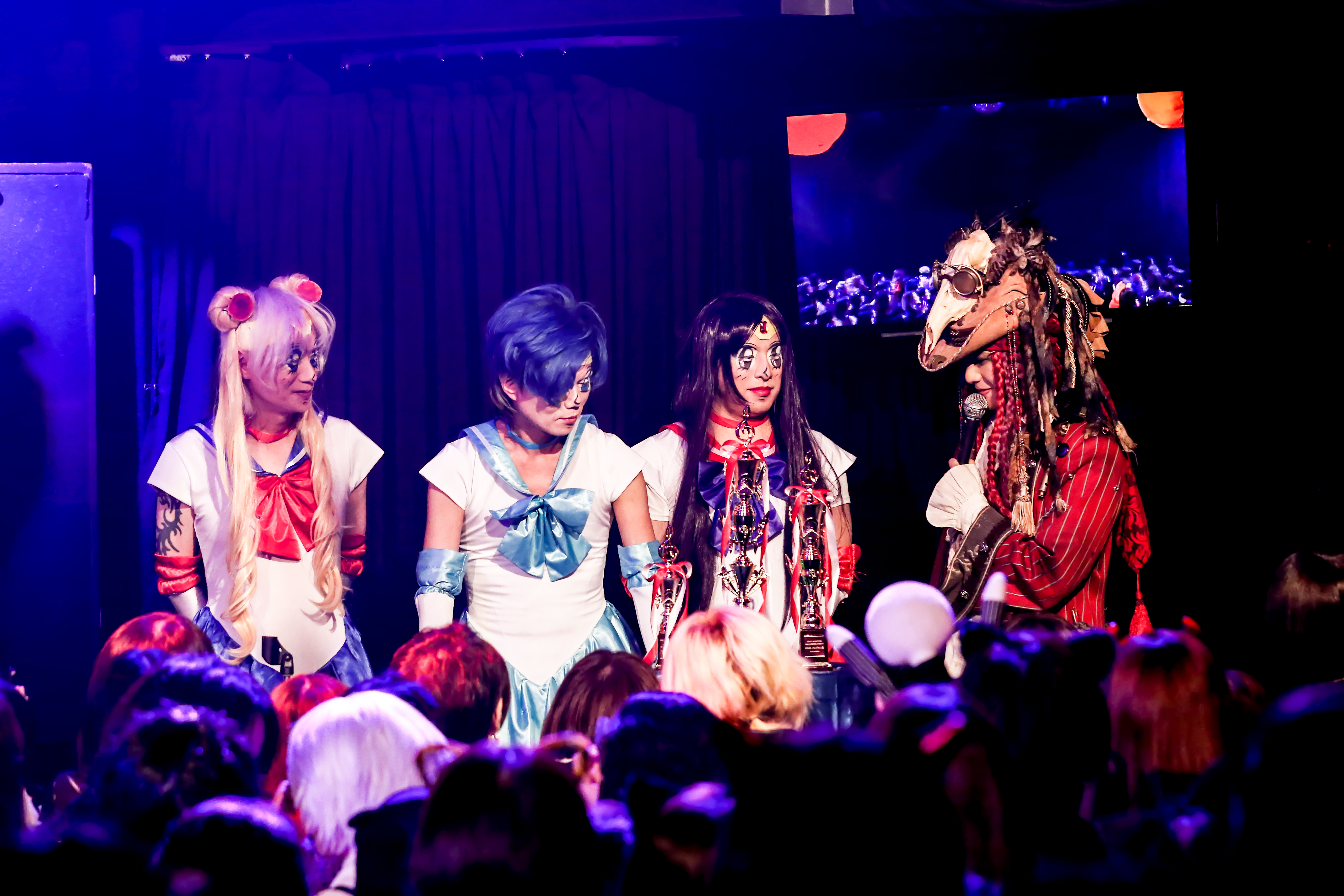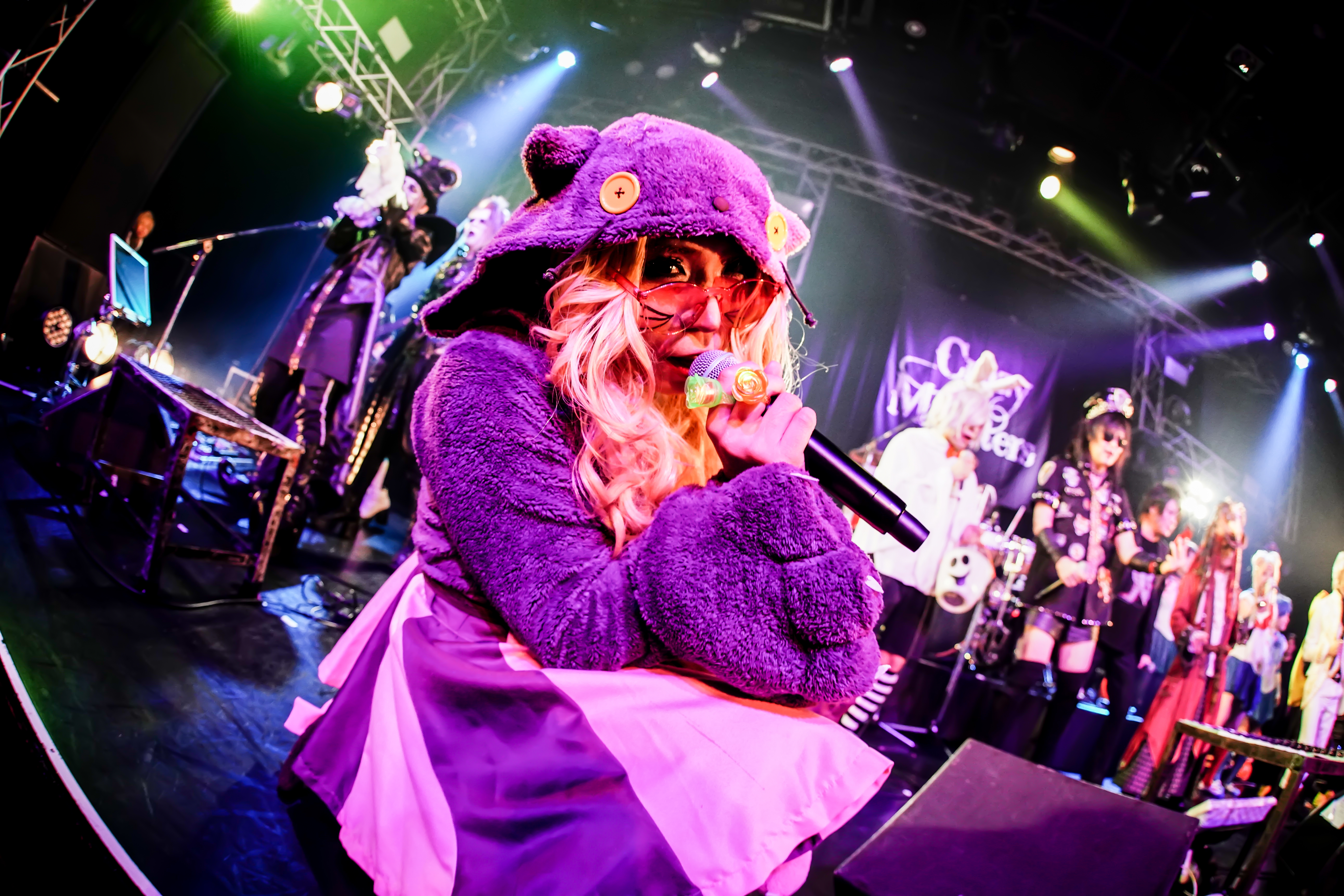司会を、雑誌Stuppyの編集長ぽっくんが担当。開演前には、MSTR(千聖)とぽっくんの期待を煽るトークも実施。フロアには仮装姿の人たちも大勢来場。天井には巨大ジャック・オー・ランタンが浮かべば、怪しい音楽が転換中に場内へ鳴り響く中、出演者それぞれに趣向を凝らした姿でライブを行った。