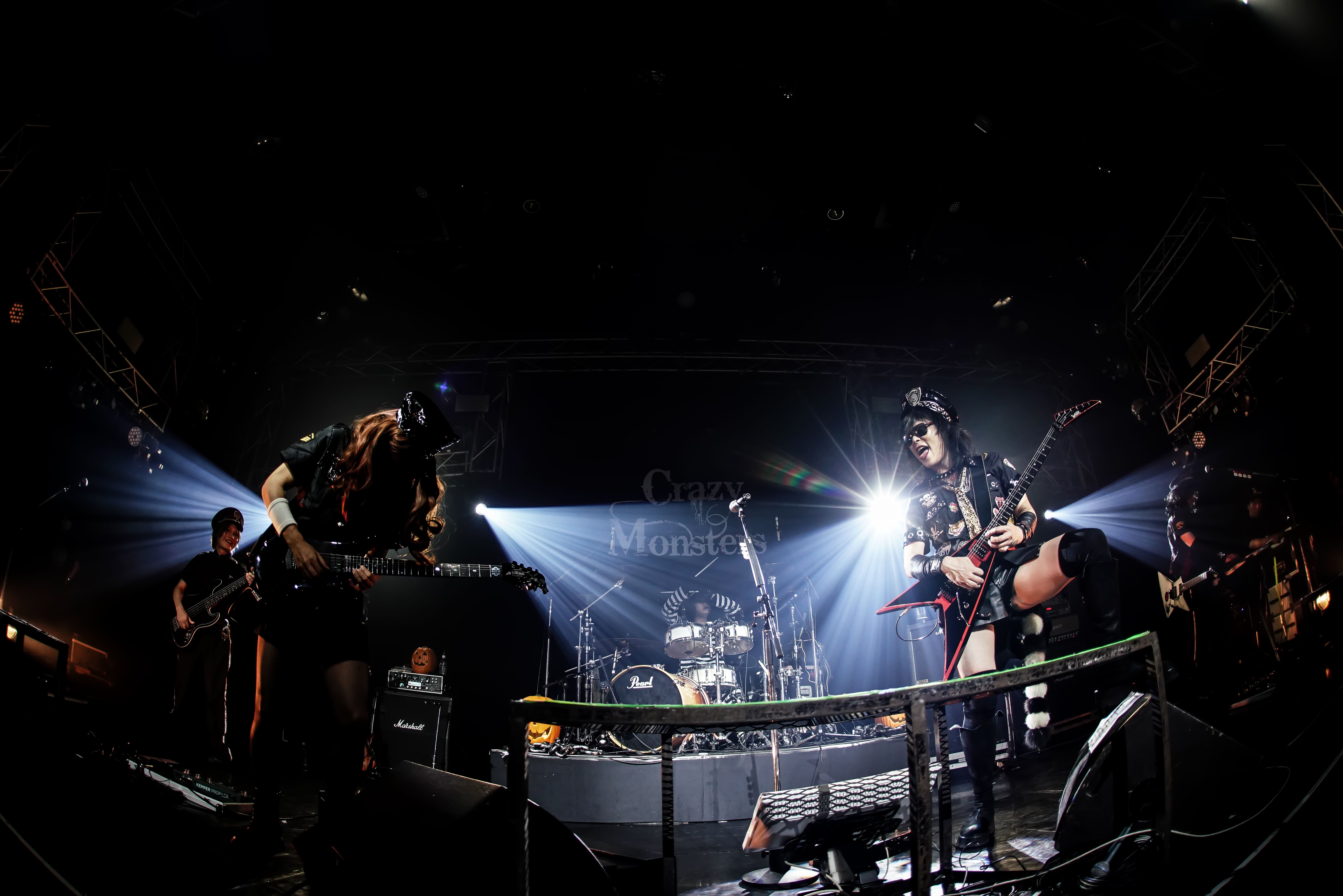トリを飾ったのが、「Crazy Monsters」の主催者MSTR(千聖)率いるCrack6。冒頭からアクセルを全開に、「カナリア」からスタートダッシュをキメてきた。今年のMSTRの仮装はポリス。でも、ライブでは法定速度を守るどころか、軽くオーバーしながら気迫と勢い満載で演奏。そこが一人無法地帯なMSTRらしさ。フロアでも、攻めに徹したCrack6のアグレッシブな姿勢に触発され、会場中に無数の掌や拳が突き上がっていた。