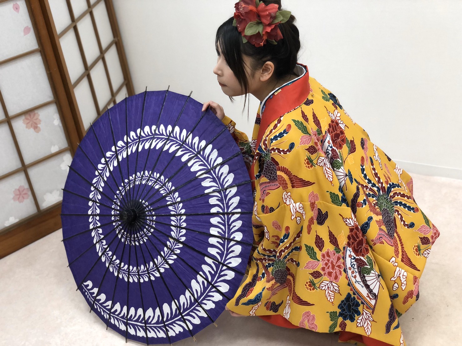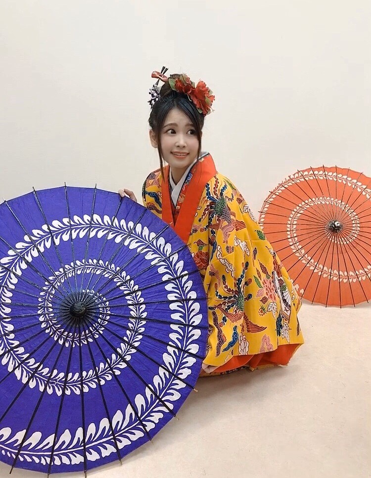多少出発を遅らせながらも、まずは、目的の一つとしてあった琉球衣装を身につけてのスタジオ撮影へ。民族衣装に着替えた彼女は、まさに見目麗しい琉球美女の姿へ。夏に韓国公演を行ったときはチマチョゴリ姿を披露。今回の沖縄では琉球衣装を身につけたように、このシリーズは今後も続くと予想される。