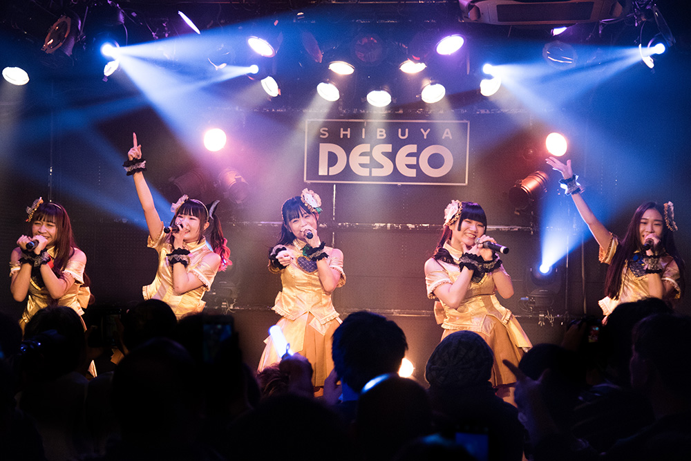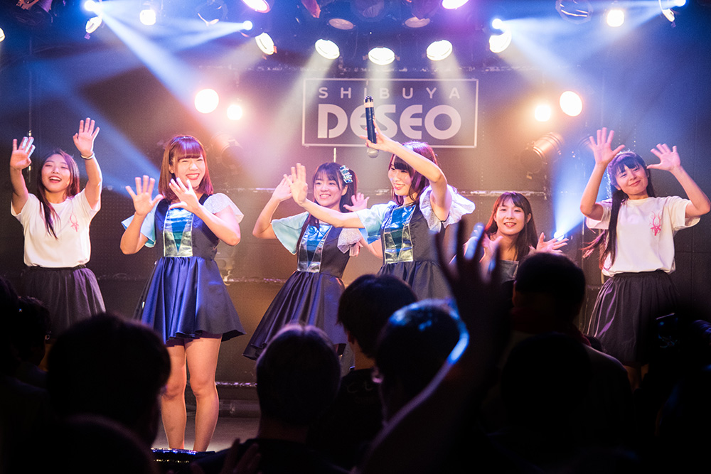 前回の「ちあフェス」で準優勝を獲得したきゅい~ん’ズが登場。SEが流れた時点から、フロアから絶叫にも似た声が飛び交っていたように、最初からフロアには熱を抱いた嬉しい空気が生まれていた。その空気を晴れやかな熱風へと変えるように、きゅい~ん’ズのライブは「BET」からスタート。とても華やかな、触れた瞬間から止まないドキドキを次々と生み出してゆくライブだ。真っ直ぐな想いと無邪気な心模様と確かな意志を持って、彼女たちは歌を届けてゆく。とても強い想いや決意を愛らしく届け、触れた人たちをドキドキさせてゆくところは、さすがだ。まさにアイドルとしてあるべきスタイルを彼女たちは提示していった。