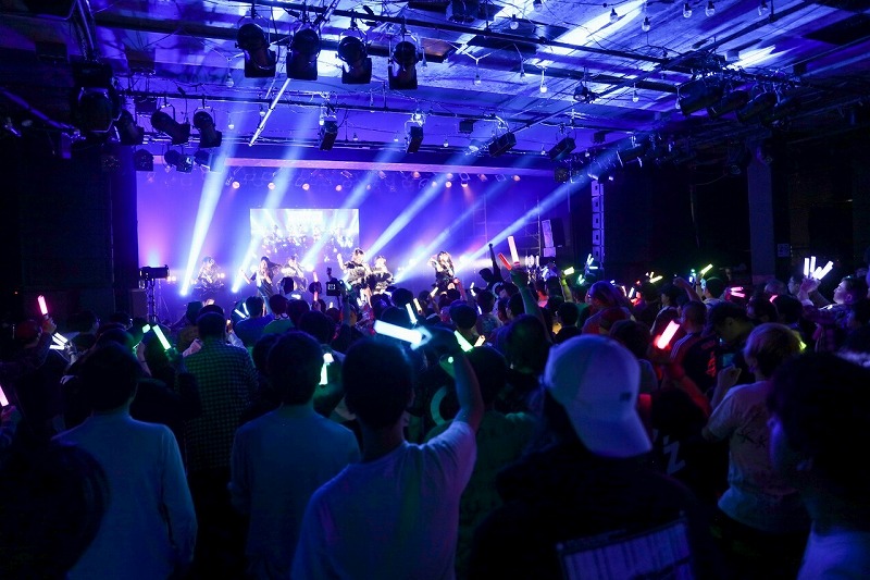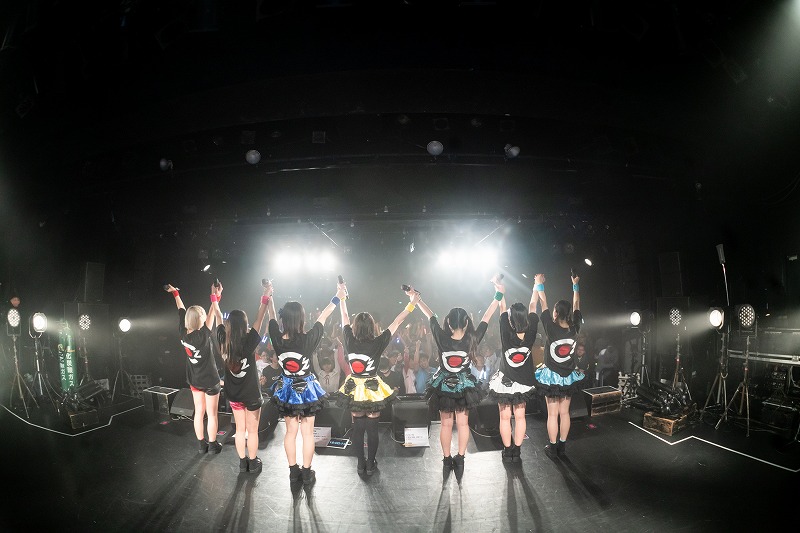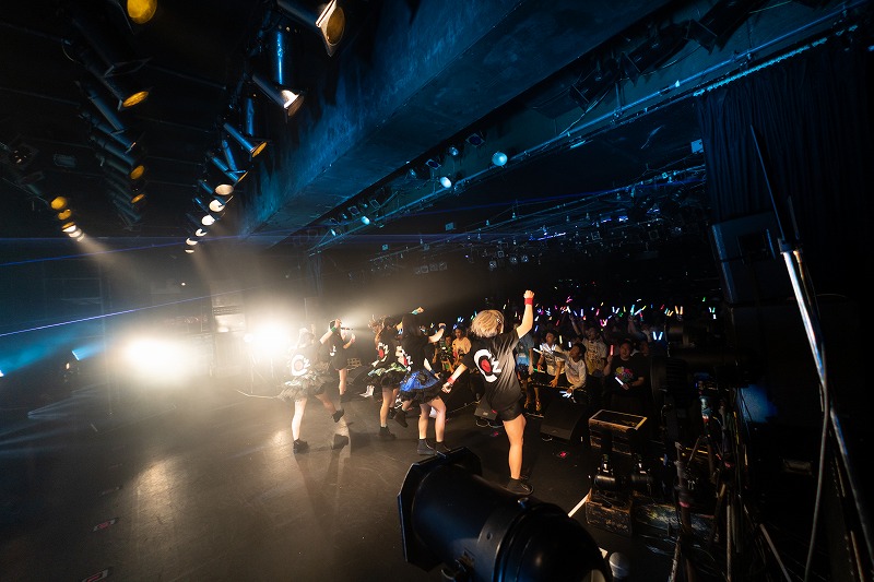 菜ノ花れみが、橘れおなが、観客たち煽るように「Survivor」を歌いだした。ここから9曲ノンストップで楽曲を披露。勢いを加速するように届けた「アブラカタブラ」。「感情をさらけだしてぶち噛ませ」と、サビへ向かって感情のボリュームをどんどん上げながらパワフルに歌い躍った「FUTURE ROUTE」。身体を直撃する激しいロックサウンドを背景に、ダイナミックなパフォーマンスを描いた「ナノカメ」。橘れおなの煽りを合図に飛びだした「ヒトプログラム」では、モノクロ(無感情)な心へカラフル(感情的)な色を塗り重ねてゆくようにライブを展開。7人は凛々しい声に乗せ、「VICTORIA」を武器に「もっともっと強く抱き締めて」と観客たちを挑発。続く「境界線」では、未来へ進むための境界線を一緒に超えようと彼女たちは呼びかけてきた。気持ちを一つに、ダイナミックな動きとパワフルな歌声をぶつけた「Wallet!」。熱狂を塗り重ねるように届けた「Triangle love」。この歌では、終盤に起きた音響トラブルで、楽曲が流れない状態へ。そんなピンチさえ彼女たちはアカペラで力強く歌い踊り、観客たちの熱を醒ますどころか、ハプニングを逆手にとり、心一つにしてゆくパワーに変え共に熱狂を作りあげていった。