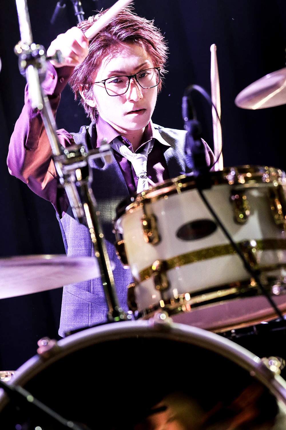 アンティック-珈琲店-と【Lc5】、2つのバンドのヴォーカリストであるみく。今回のライヴを支えるのは、ドラム・Aki(【Lc5】/ Bräymen)、ベース・カノン(アンティック-珈琲店-)、ギター・Reo(【Lc5】)という、スペシャルな面々だ。