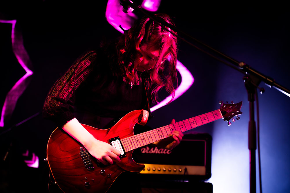 終盤を彩った、これぞ文学青春パンクロックと言うに相応しい「名もなき少年の 名もなき青春」では、幾つになっても心を熱くたぎらせる青い炎へ、渇望という薪をくべてゆく様を投影。まさに、青春の叫びという言葉が相応しいネエルギッシュなライブを披露していった。最後に届けたガガガSPのカバー曲「卒業」では、疾走する演奏に乗せ、太田彩華が熱情するままに沸きだす言葉を吐き続けてきた。終盤にはベースを置き、拡声器を手に言葉をぶつけてゆく姿も登場。鳴りやまぬ心の叫びを振り絞るように歌う様は、瞼へ強烈に焼きついた。