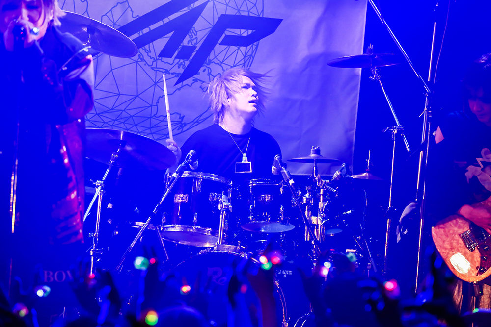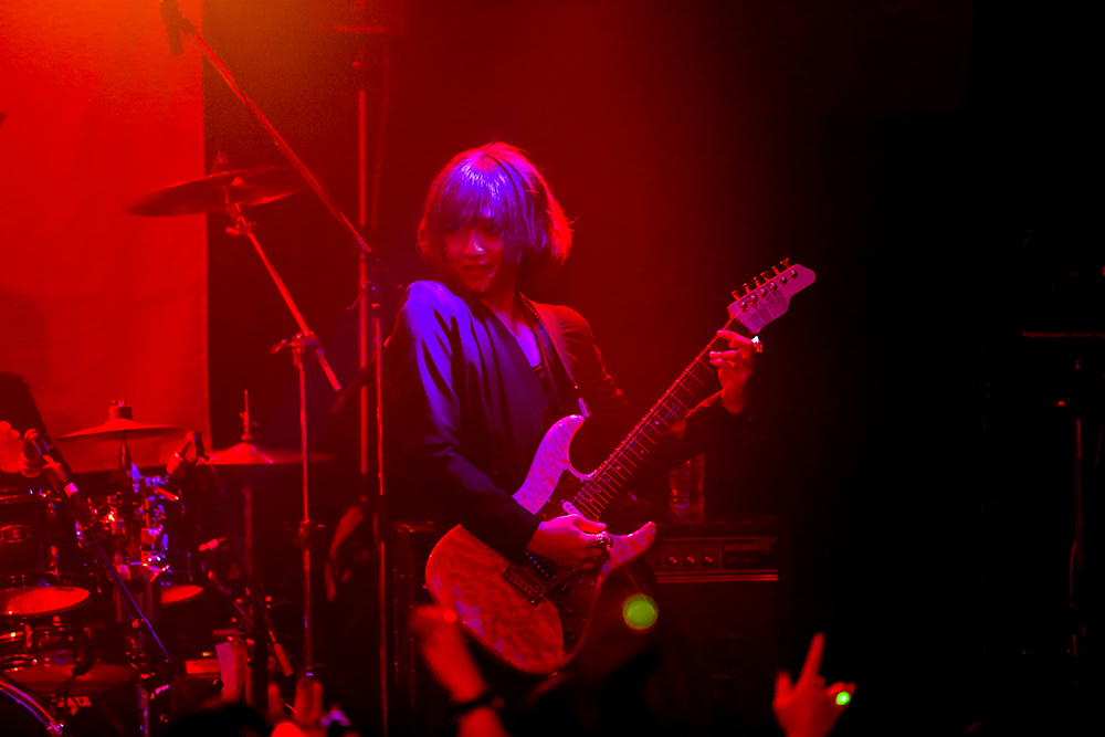バンドメンバーが再びステージインすると重厚なバンドサウンドが炸裂した「BLACK ANT」をプレイし、ばる(Dr/DuelJewel)がそのパワーヒッターぶりを遺憾なく発揮すると、各メンバーのソロタイムを経て始まった「ヨウコソサヨウナラ」では刻(Gt/ex.BFN)の小気味いいカッティングが冴える。そしてラストスパートと言わんばかりにアゲアゲテクノチューン「Hi-Techno-Boy」を叩きつけると、YUCHI(Ba/sukekiyo)のグルーヴィーなベースが会場にうねりをもたらし、オーディエンスはフロアを揺らす。