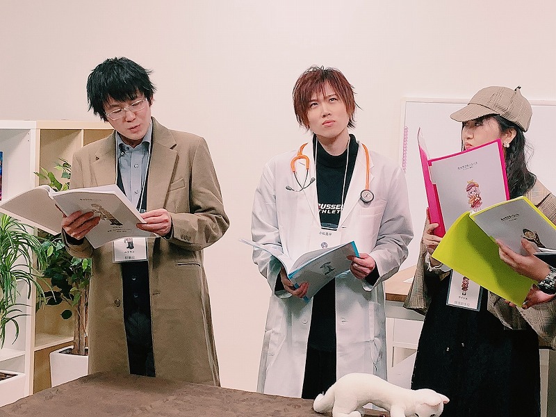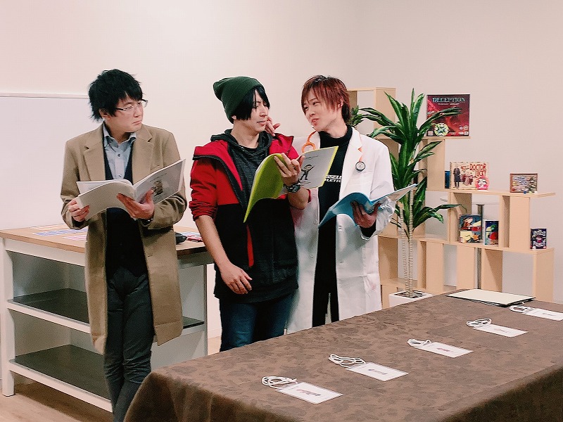 何時もなら、キャストたちがテーブルへ横一列に並び、出演者たちの気さくな会話から始まるのが「ボドカフェ!」の特色だが、この日は声優陣の真骨頂というべき舞台劇を演じるようにスタート。見ている人たちはきっと、「えっ、一体何が始まったの??」状態だろう。第3-4回目の放送に関しては、視聴者自身も、役者たちの演じる物語を客席から見ている気持ちで楽しんでもらいたい。