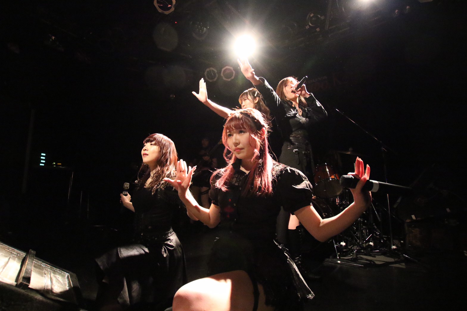 続く「Born to fate」では、なぎさりん、永瀬りか、夏井さら、宇野みずきの4人がステージへ。愛しさも胸に秘めながら、なぎさりんと宇野みずきが、そして永瀬りかが切々と歌声を届けてゆく。Elue marineの4人も哀切さを心へ抱きながらも、エッジ鋭い音を突きつけていく。その音は、触れた人たちの胸にもしっかり突き刺さっていた。CANDY GO! GO!のメンバーたちの凛々しステージングに視線が惹かれる。Elue marineのメンバーたちも、舞台にどっしりと身構え、CANDY GO! GO!の心の動きへしっかり音と気持ちを同期させようとしていた。