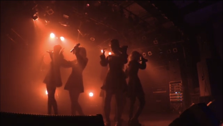 今宵の宴の最後を担ったのが、破壊力満載な暴走轟音交狂曲「ユダの接吻」だ。凛々しい歌声で煽る彼女たちへ、フロア中の人たちが雄々しく声を上げ、沸きだす想いをぶつけていた。ふたたび会場の熱気を一つに作り上げた、意識を混濁する邪黒な宴。でも、その毒牙に取り憑かれた人たちには、堪らなく刺激的なひとときだったに違いない。
