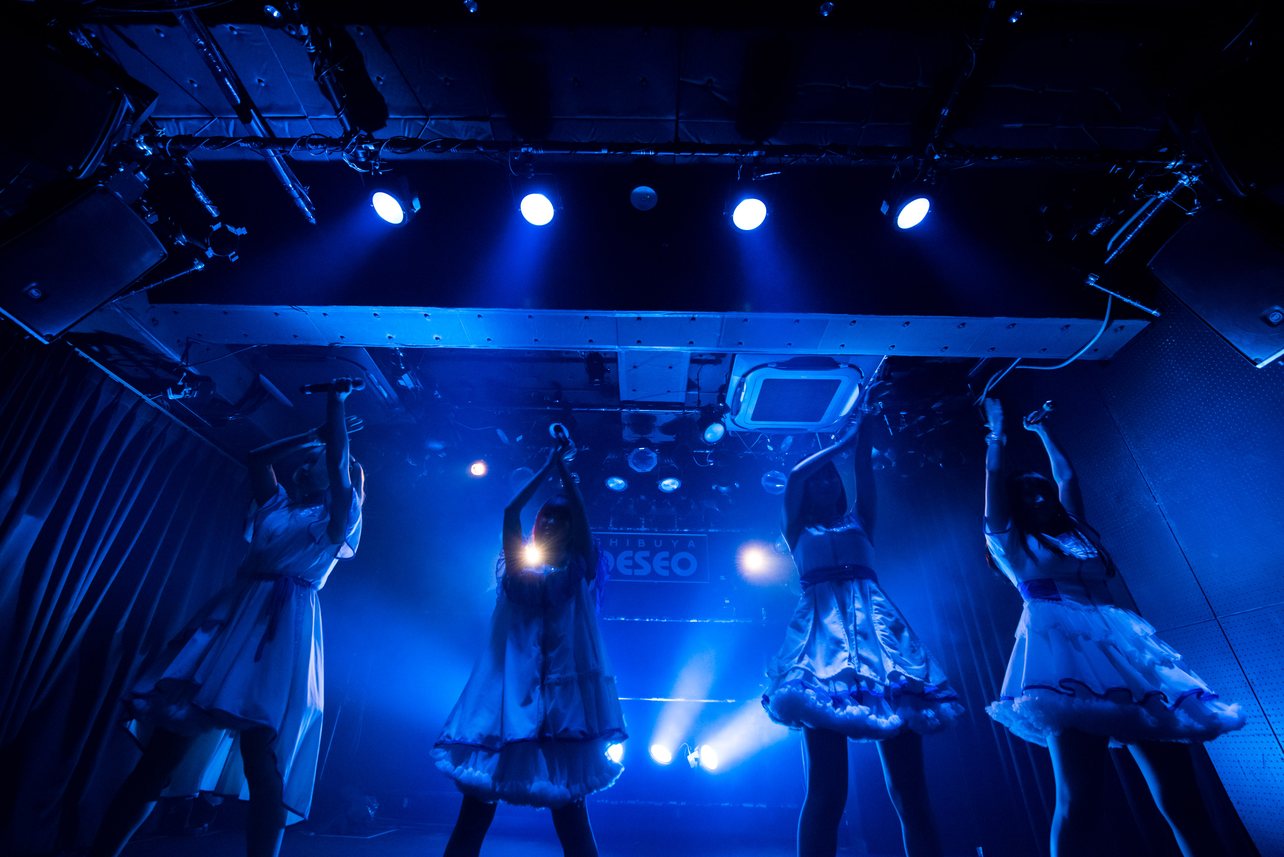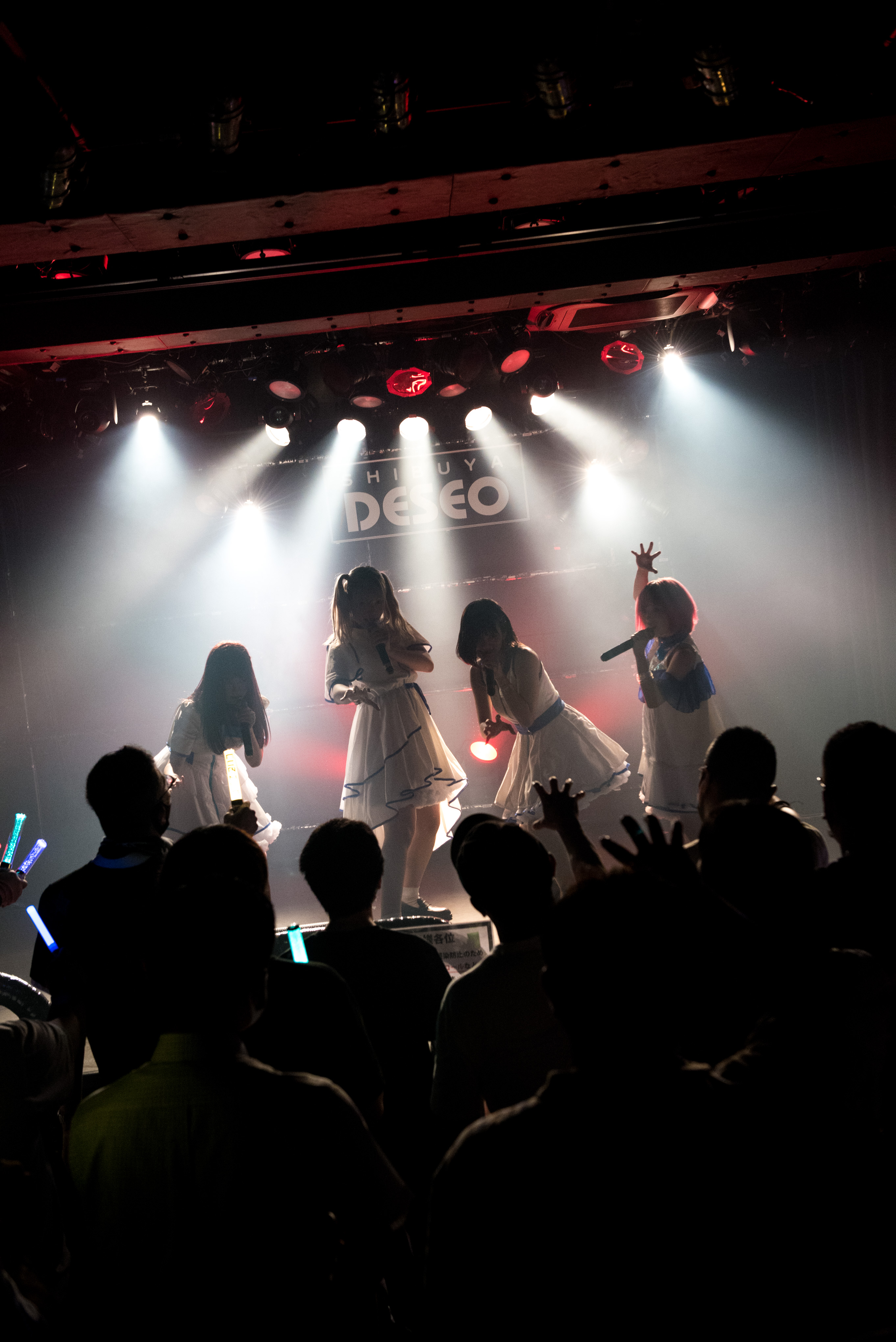 続く「微レ存ガール」でも4人は、身体を揺さぶるエキセントリックなダンスビートに合わせ、地上の喧騒に惹かれ空から舞い降りた天使たちのような様でわちゃわちゃ歌い踊っていた。その姿が、とてもチャーミング。観客たちも声を出せない変わりに、大きく手やサイリウムを振りながら彼女たちへ想いをぶつけていた。
