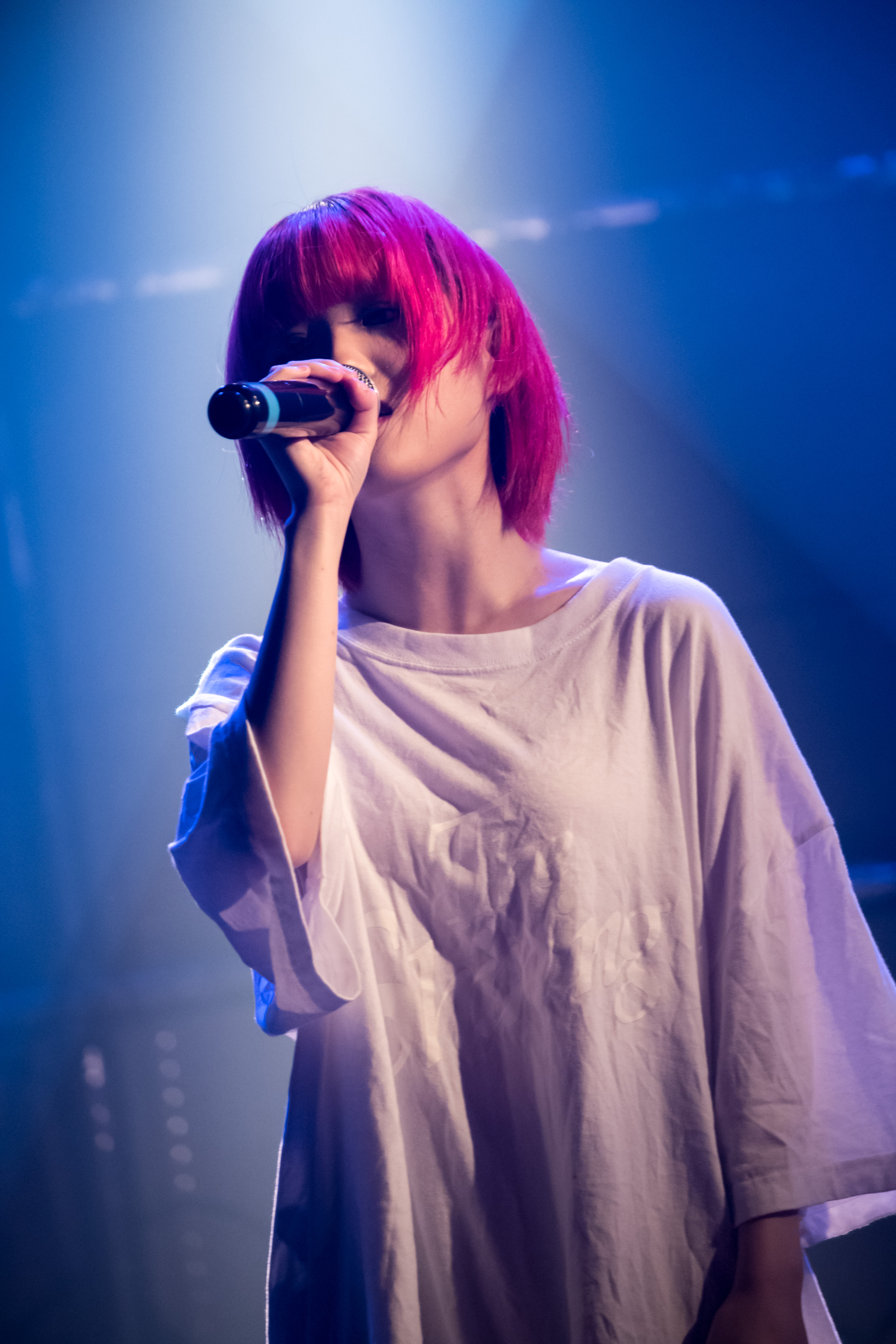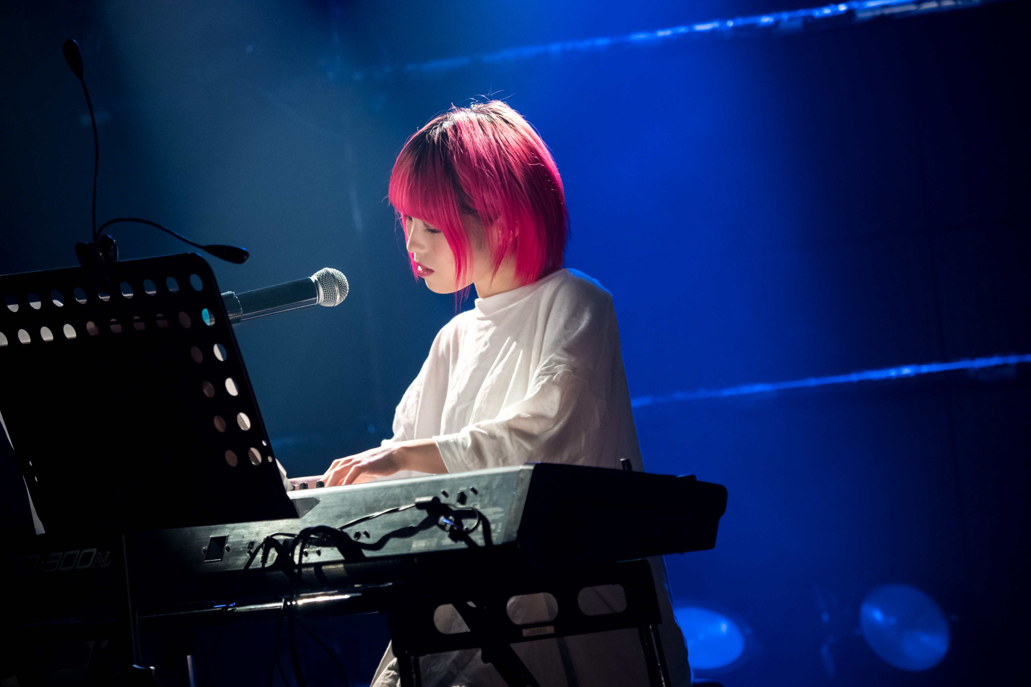 さらに彼女は、ピアノの弾き語りで宇多田ヒカルの「First Love」を歌唱。吐息まじりの儚い歌声で、兎月ねむりはしっとり歌いあげる。フロア中の人たちも彼女の歌にじっと耳を傾け、悲しく揺れる歌声にしばし想いを寄り添えていた。