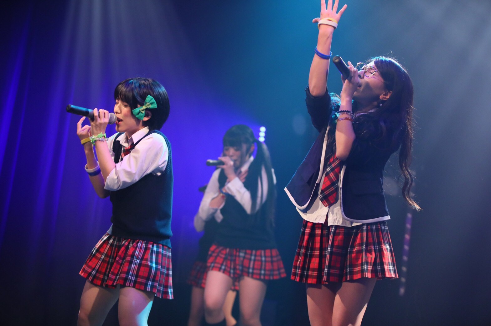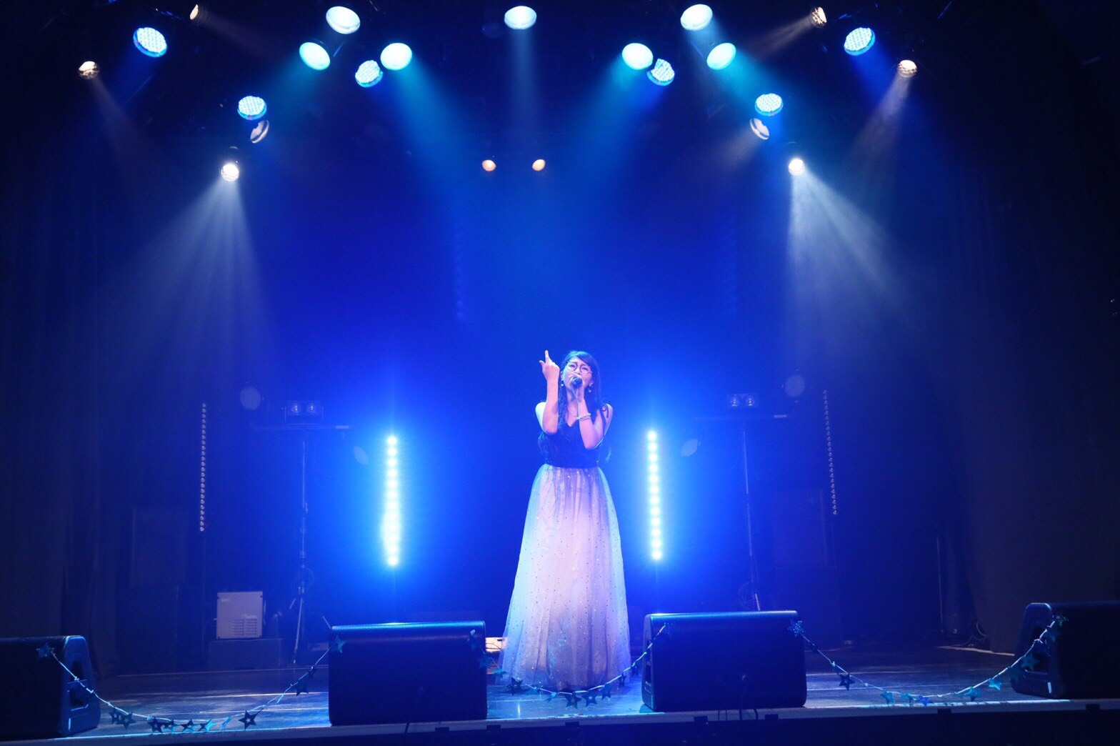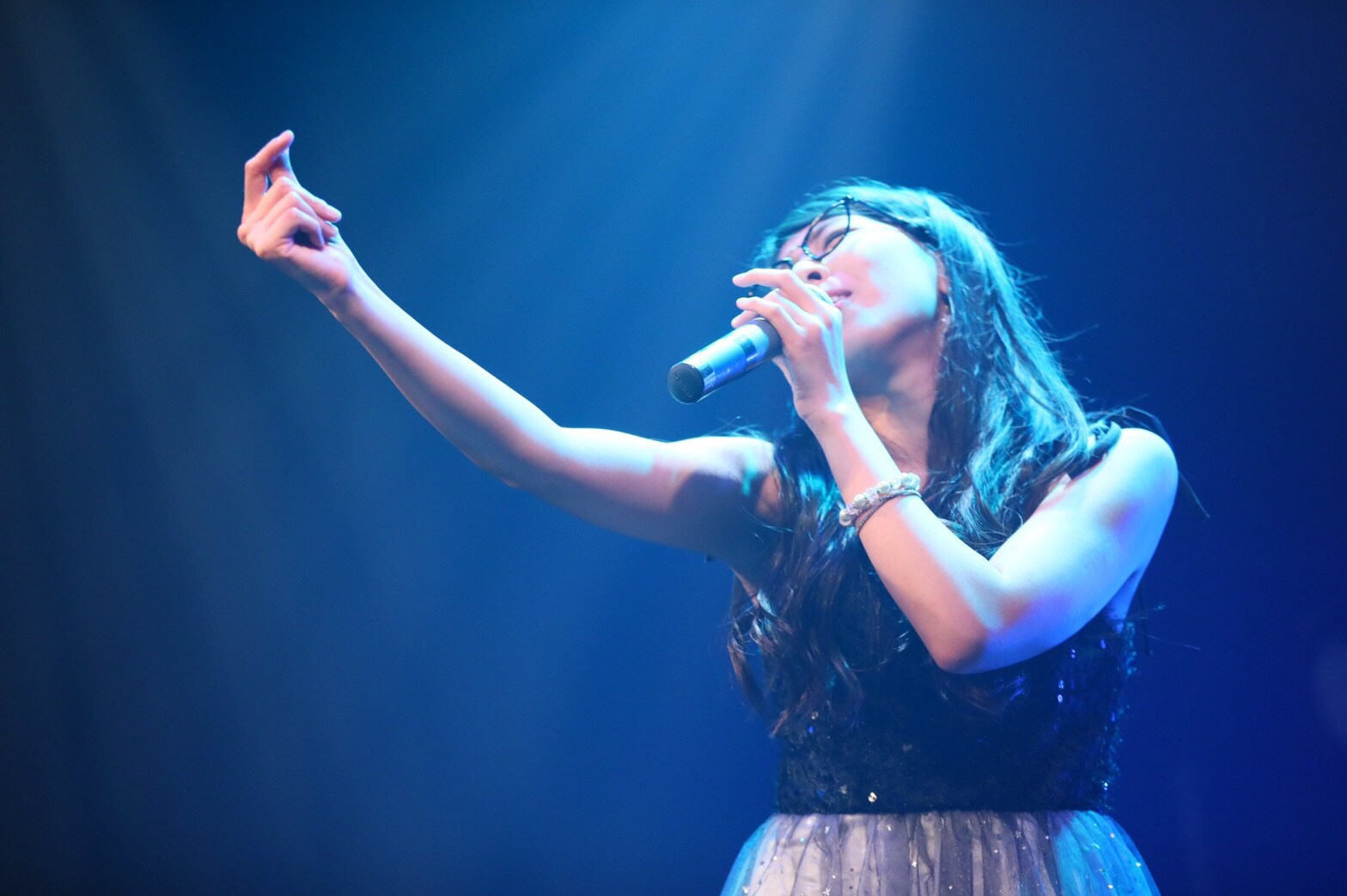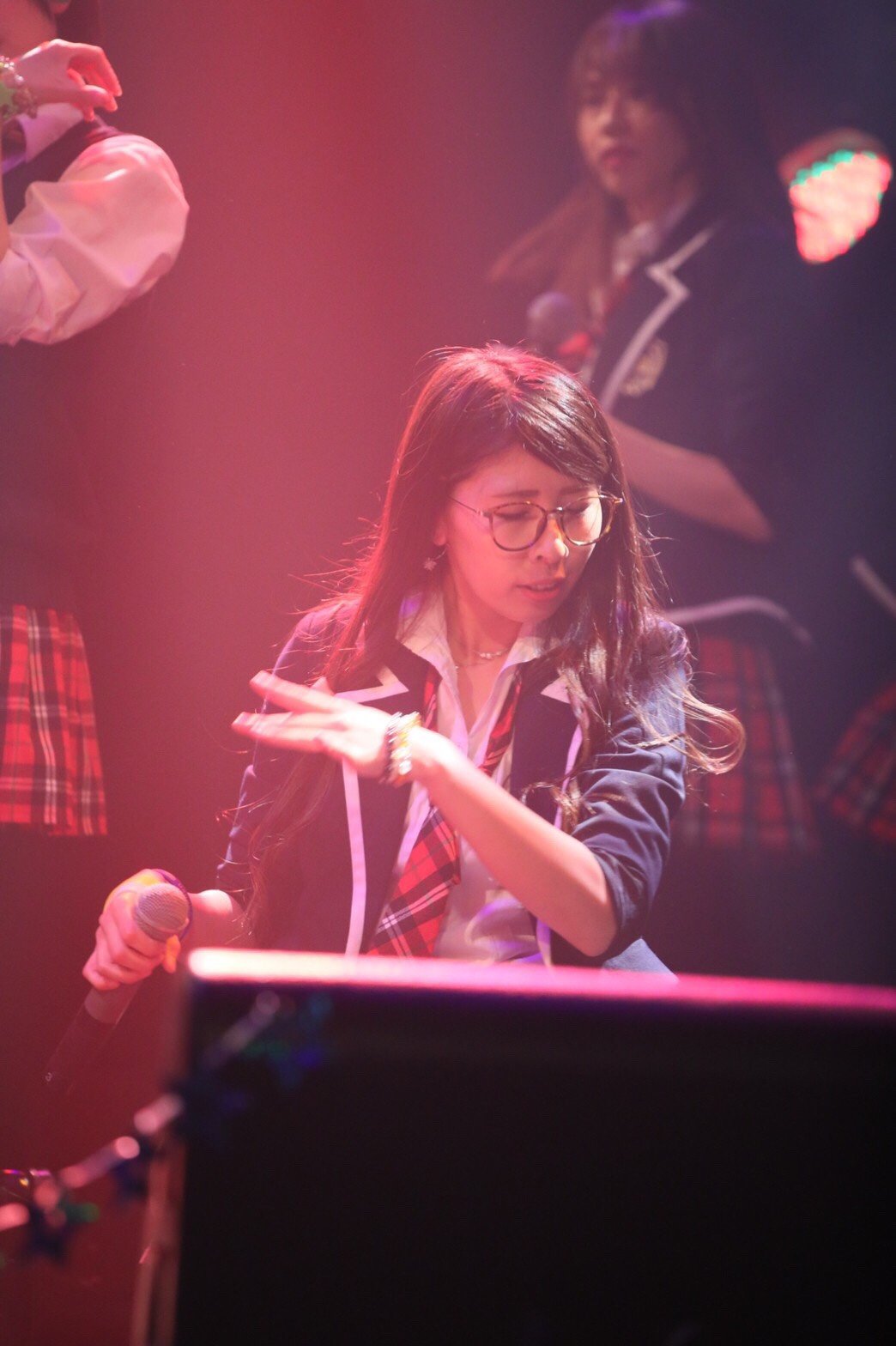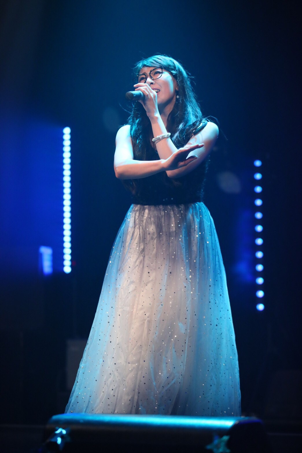 メンバーを呼び入れて披露したのが、佐々木千咲子のイメージである星に関連した「星の記憶が降る夜に。」。佐々木千咲子を中心に、想いを馳せるように歌う一人一人の姿が、夜空に輝く星のようにキラキラ輝いて見えていた。この歌では、メンバーみんながメガネ姿に。