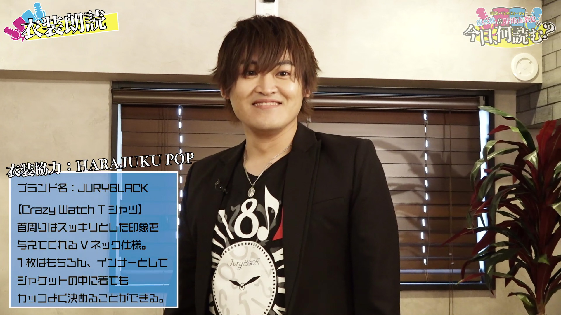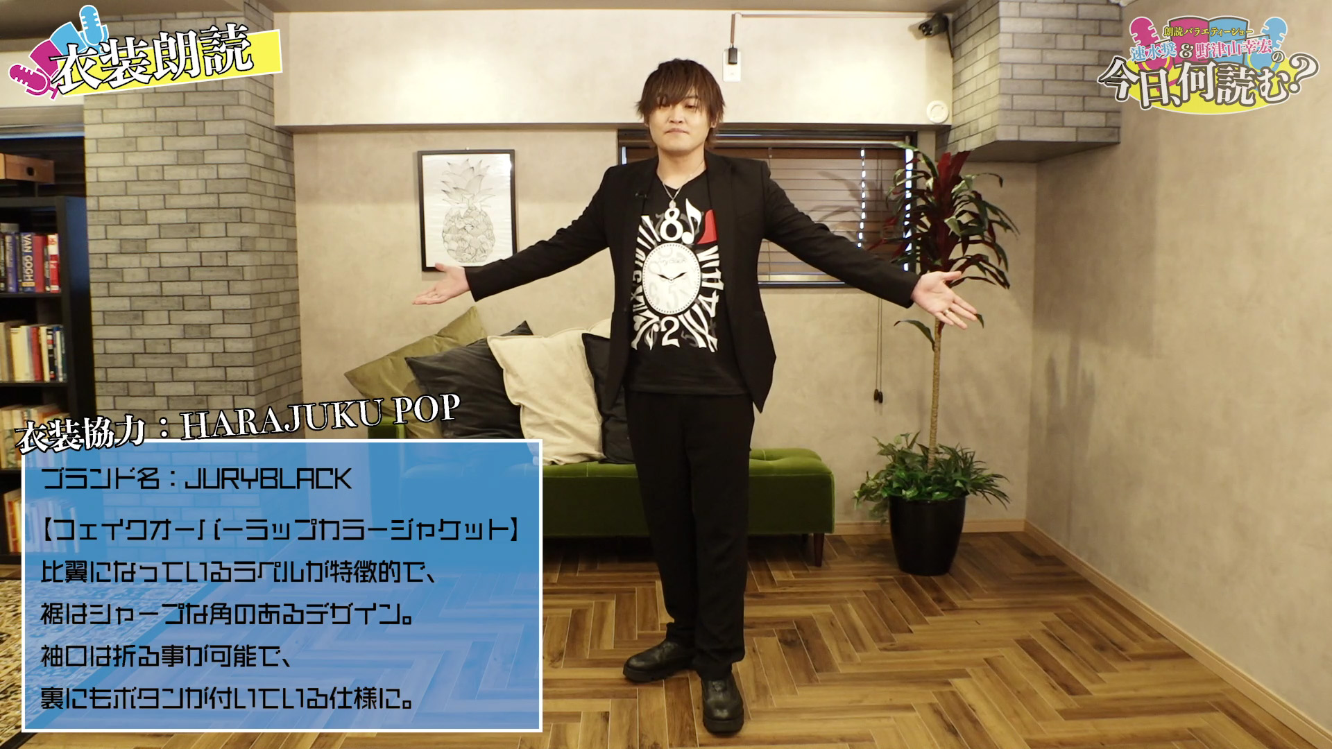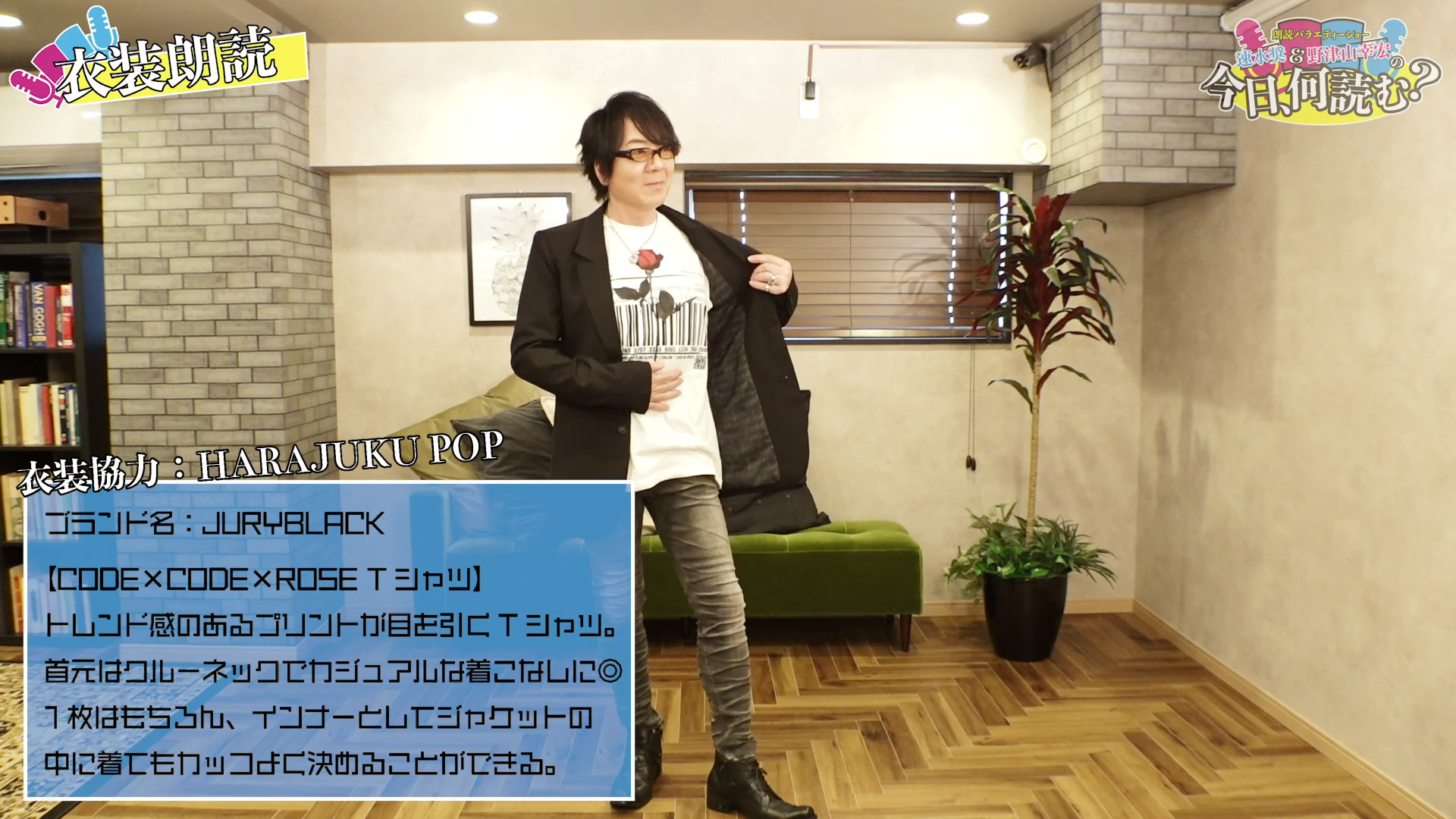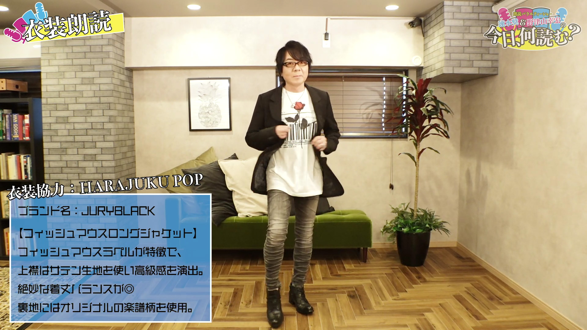 「衣装朗読」のコーナーでは、『原宿POP』さんが番組用に提供した衣装を、こちらも朗読のように読みながら紹介。第一回目の放送回では自分が着ている衣装を紹介していたが、第二回目では、他の人が着ている衣装を朗読風に紹介。野津山幸宏さんが木島隆一さんを、木島隆一さんが速水奨さんを、速水奨さんが野津山幸宏さんの着ている洋服を朗読風に解説。テンション高いアドリブ交じりの朗読に合わせ、モデルとなった側がどんな風に洋服を紹介してゆくのか。その仕種はかなりの見どころになっていた。ぜひ、白熱したやりとりをご覧になっていただきたい。