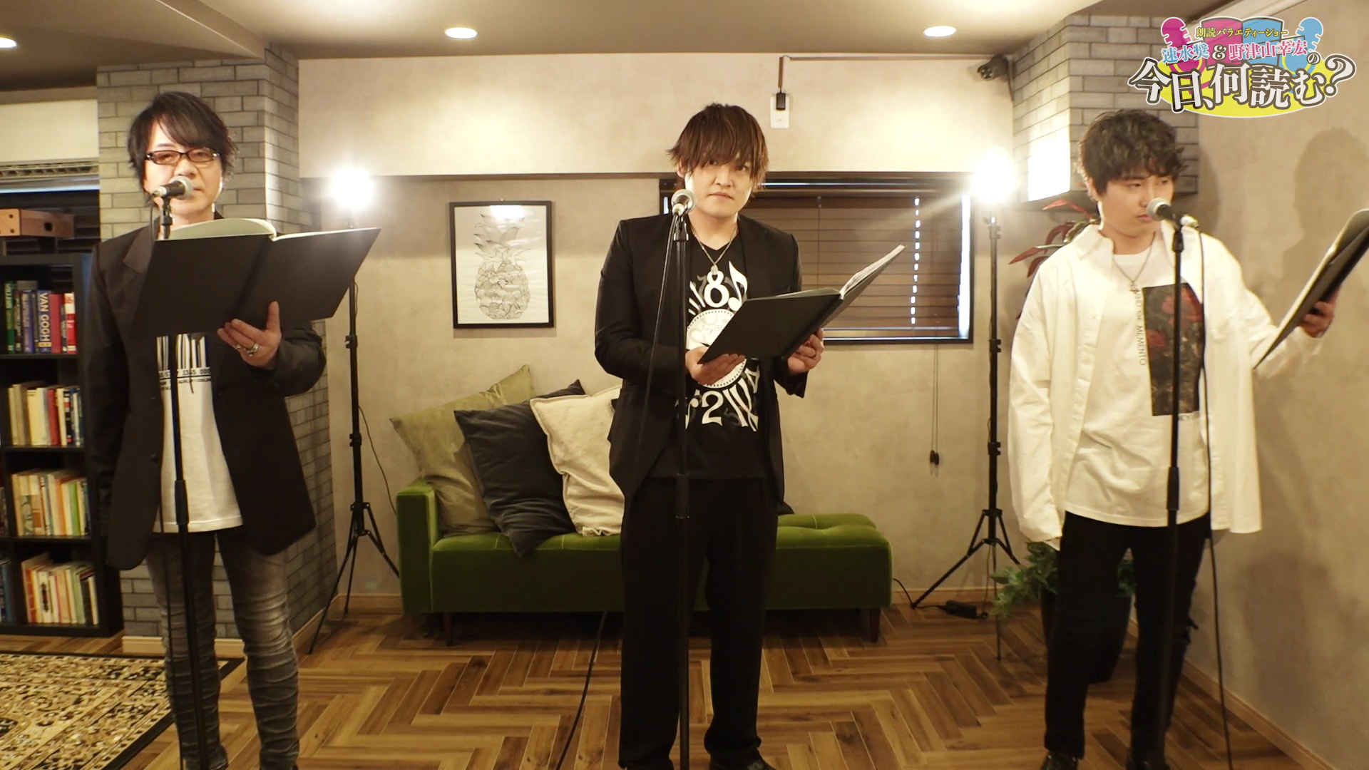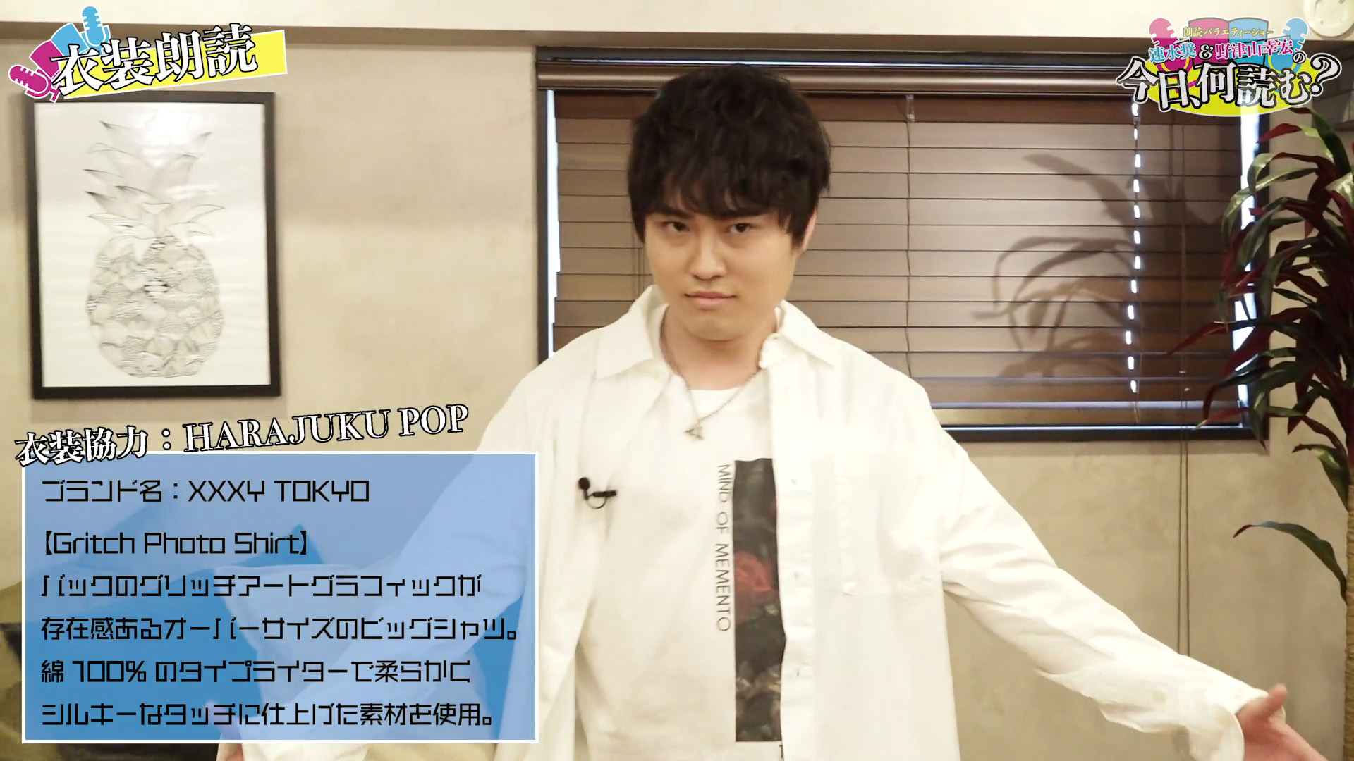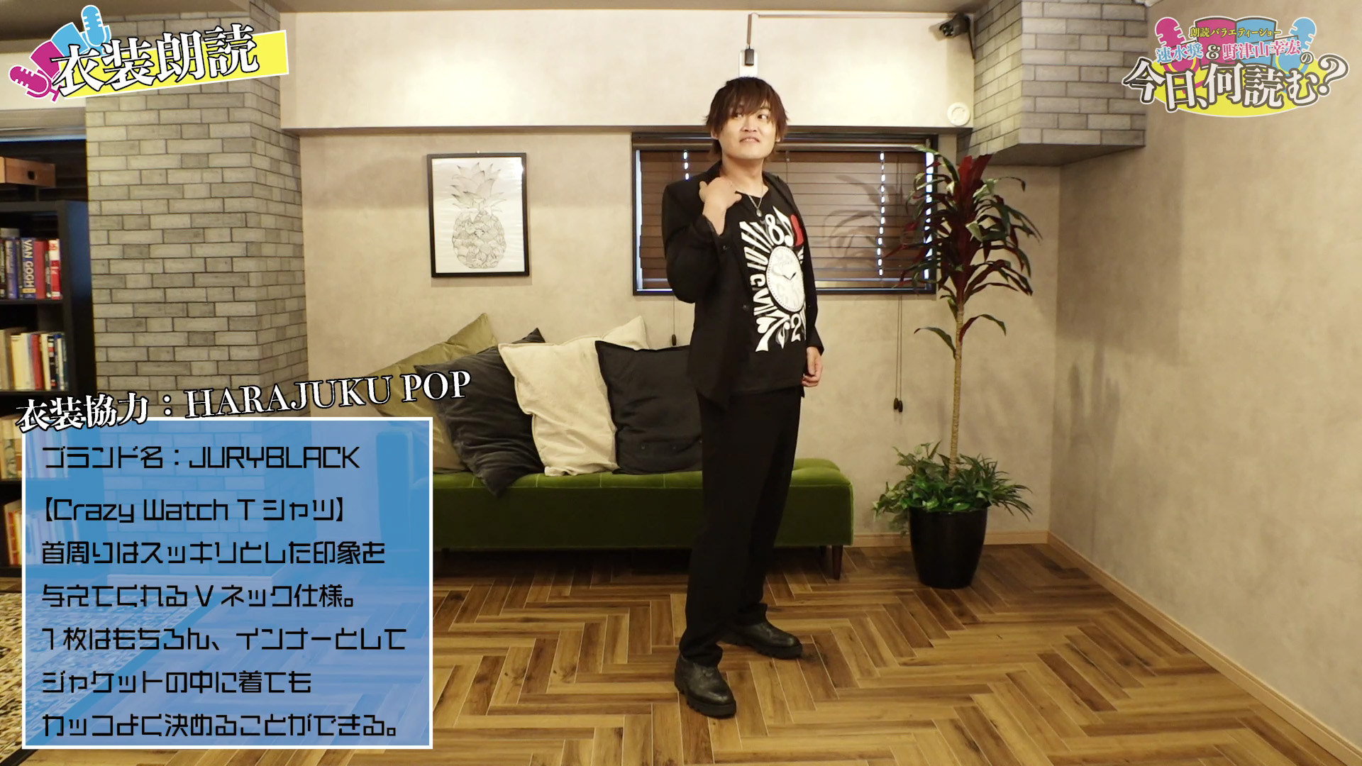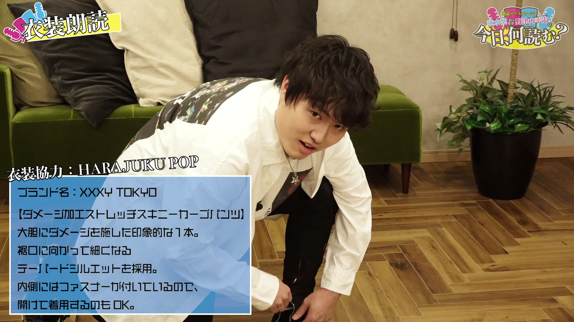 「衣装朗読」のコーナーでは、『原宿POP』さんが番組用に提供した衣装を、こちらも朗読のように読みながら紹介。第一回目の放送回では自分が着ている衣装を紹介していたが、第二回目では、他の人が着ている衣装を朗読風に紹介。野津山幸宏さんが木島隆一さんを、木島隆一さんが速水奨さんを、速水奨さんが野津山幸宏さんの着ている洋服を朗読風に解説。テンション高いアドリブ交じりの朗読に合わせ、モデルとなった側がどんな風に洋服を紹介してゆくのか。その仕種はかなりの見どころになっていた。ぜひ、白熱したやりとりをご覧になっていただきたい。