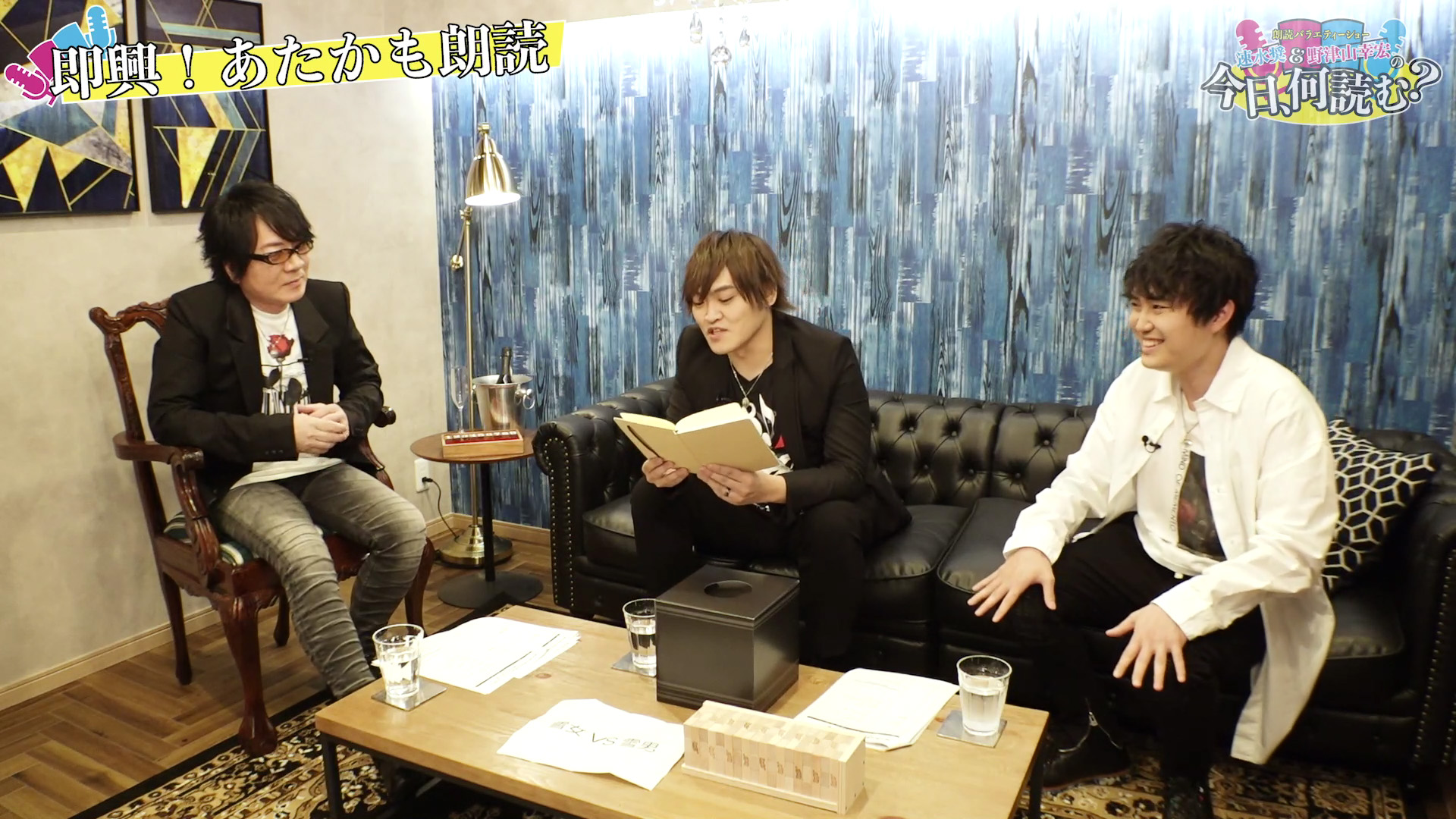 第二回目の放送回では、ゲストの木島隆一さんを交え『即興あたかも朗読!』を実施。ここでは、タイトルだけを発表。何も書いていない本を用意し、それを手にした声優たちが、即興で作った物語をリレーしてゆく、まさに「即興朗読劇」。最期に、どんなオチへ辿り着くかが見どころとなる。