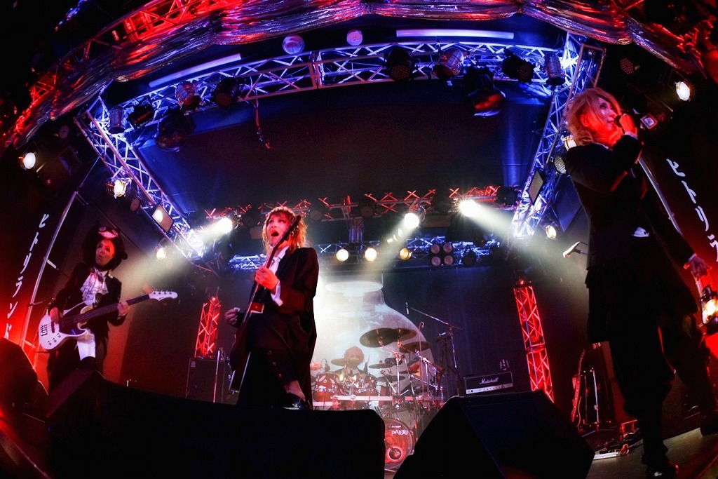 壮大な物語を語り始めるように幻想的な交響曲が流れだす。その音に導かれ、メンバーらが次々と舞台へ姿を現した。少し歪んだ調べが、この空間に訪れた人たちを不思議な世界へ招き入れる。そして…。情次2号の爪弾くギターの音色を合図に、白いスポットライトに照らされた谷琢磨が、その場にいる人たちや画面の先で待ちわびていた人たちに向け、「おしえてあげる どうすればいいか~ ねぇ こっちであそびましょう」と妖しく誘うように歌いだした。物語(ライブ)は、ハイダンシークドロシーの始まりを告げた「メーズ」から幕を開けた。谷琢磨のハイトーンヴォイスに導かれ、心と身体を揺らすシャッフルビートが流れだす。少しずつ体温を上げながら、演奏はどんどん生命力を蓄えてゆく。「ねぇ こっちであそびましょう」と闇(病み)の中へ潜む遊園地へ手招かれ、気持ちが強く脈動。谷琢磨のオペラヴォイスが炸裂するのを合図に、激しく揺れだしたビートと感情がシンクロし、気分が一気に弾みだす。なんて麗しくも幻惑した音楽だ。ハイダンシークドロシーに導かれ、何時しか心は不思議な世界へ落ちていた。