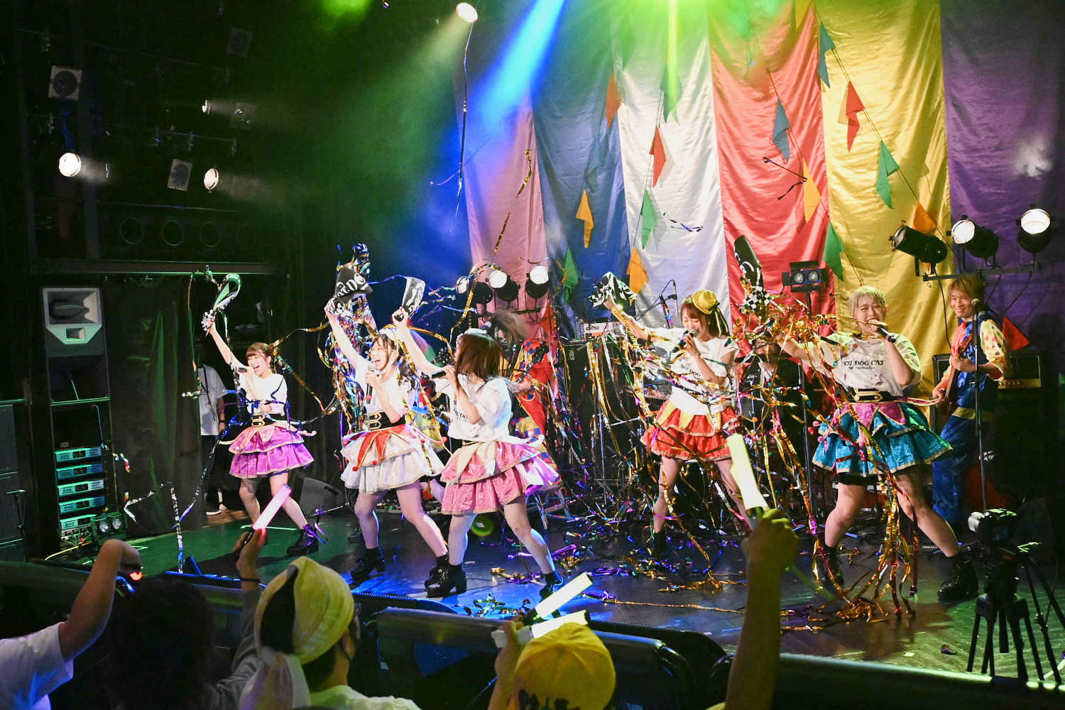 最後は、燃え盛る気持ちを最高潮まで引き出そうと「オリンピック・ハイテンション」をテンション高い姿で熱唱。騒ぎたい気持ちをぶつけるように、フロアからも熱い手拍子が飛びだす。メンバーたちもダイナミックな動きを見せながら、どんな困難な状況さえハイテンションな気持ちで乗り超える姿勢を示していた。楽しいがあふれだすステージって、最高だ。細かいことなんか気にしない。胸いっぱいに飛び込んでくる彼女たちの熱いエナジーを思いきり受け止め、心のフィールドで全力の笑顔で楽しむ。それでいいんだよな。