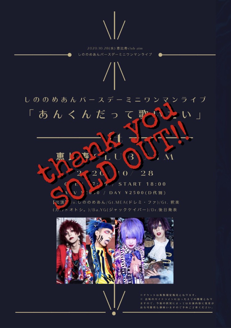 ご存じのように、今は恵比寿club aimも毎公演限られた人数しかチケットを手に出来ない環境にある。既にしののめあんのライブチケットを手にしている方は立て続けに。未完成アリスの晏の誕生日を目の前で祝いたい方は、この機会に身近な距離で、晏に「おめでとう」「生まれてくれてありがとう」の声を届けて欲しい。
