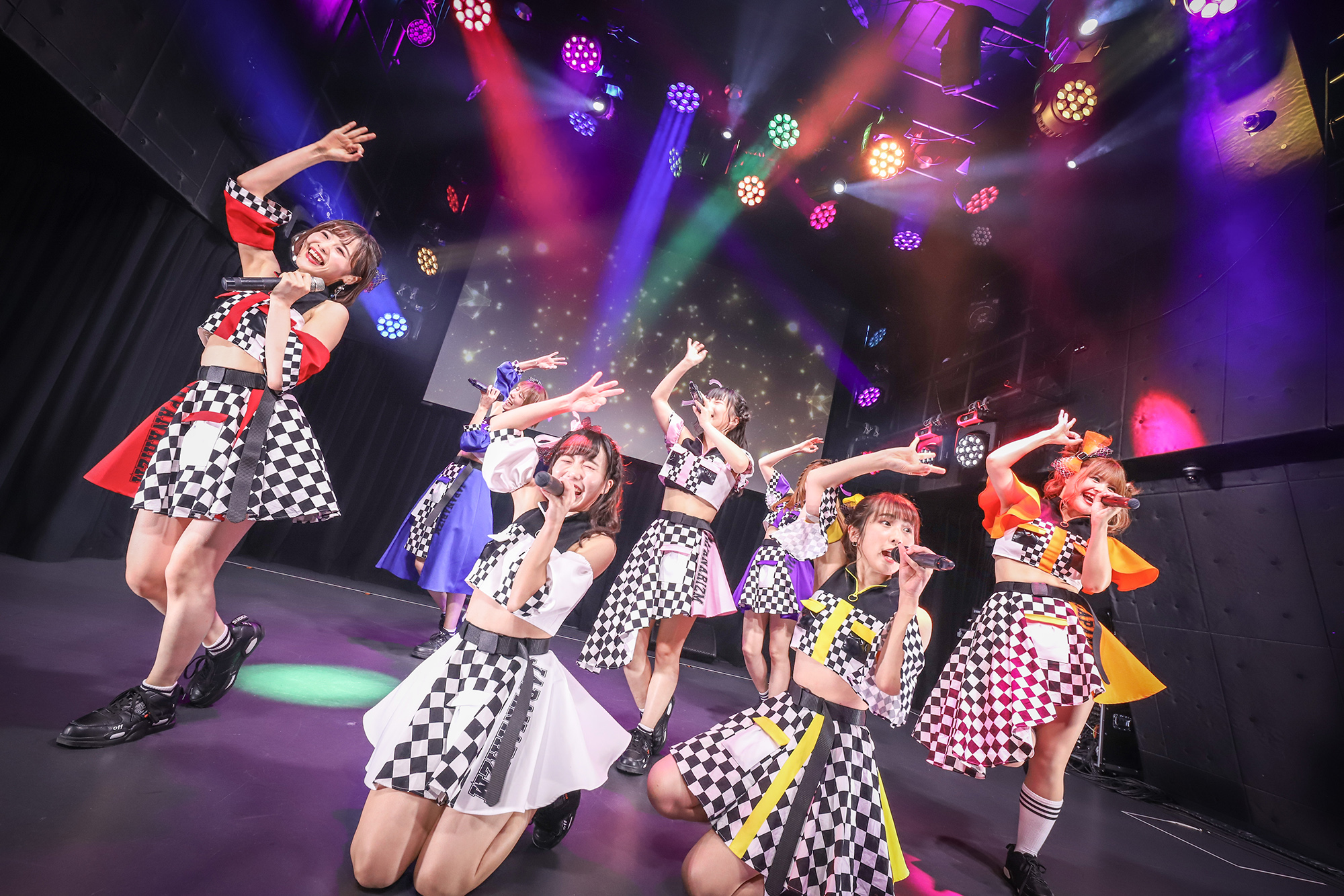 続いて、バリエーション豊かな楽曲で彩られたユニットコーナーへ。紫担当天乃七夕と新メンバーの赤色担当白瀬あかりで、JAPANARIZMの前身グループである”はっぴっぴ”の楽曲「気まぐれスナイパー」を披露した。