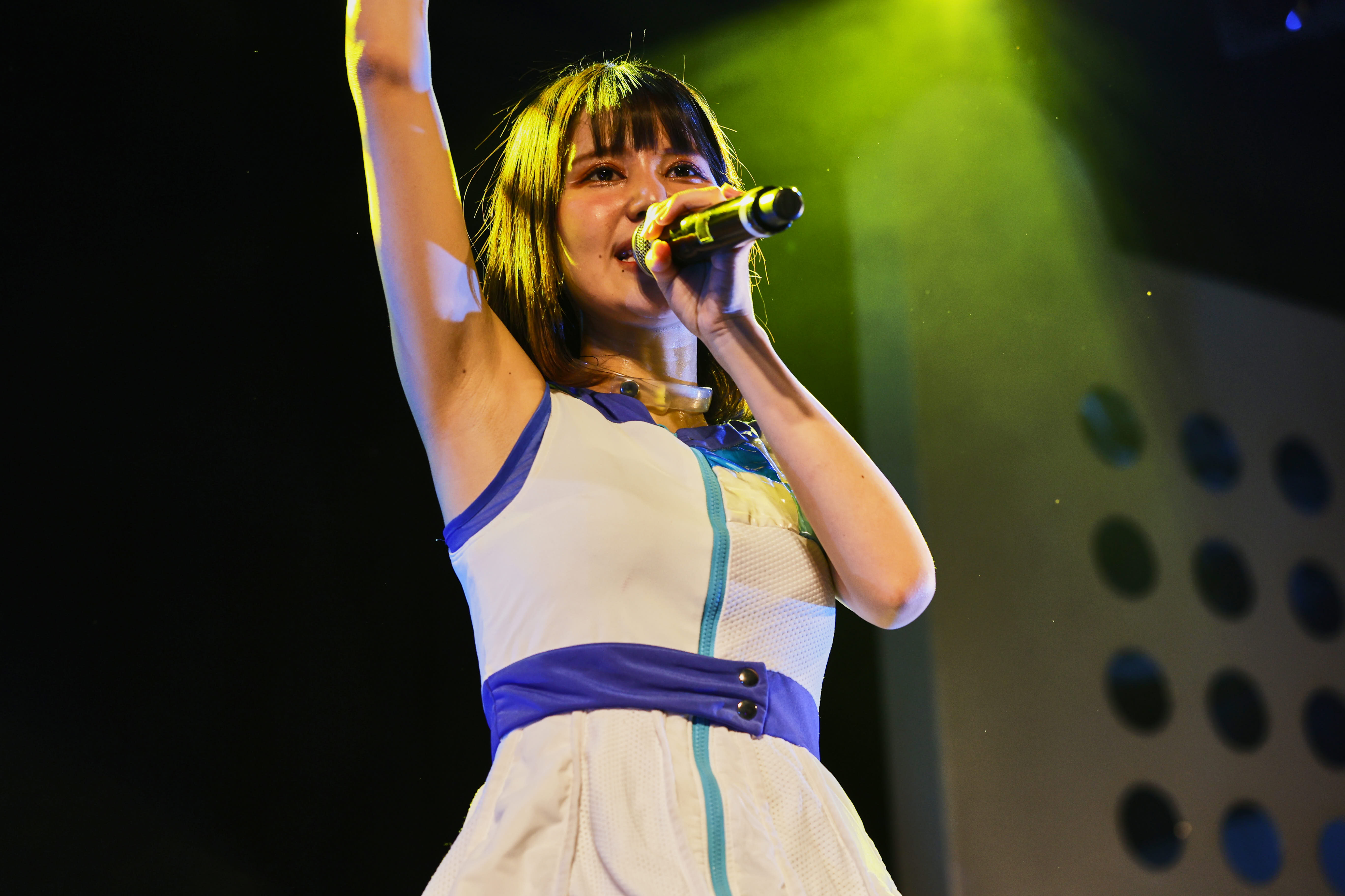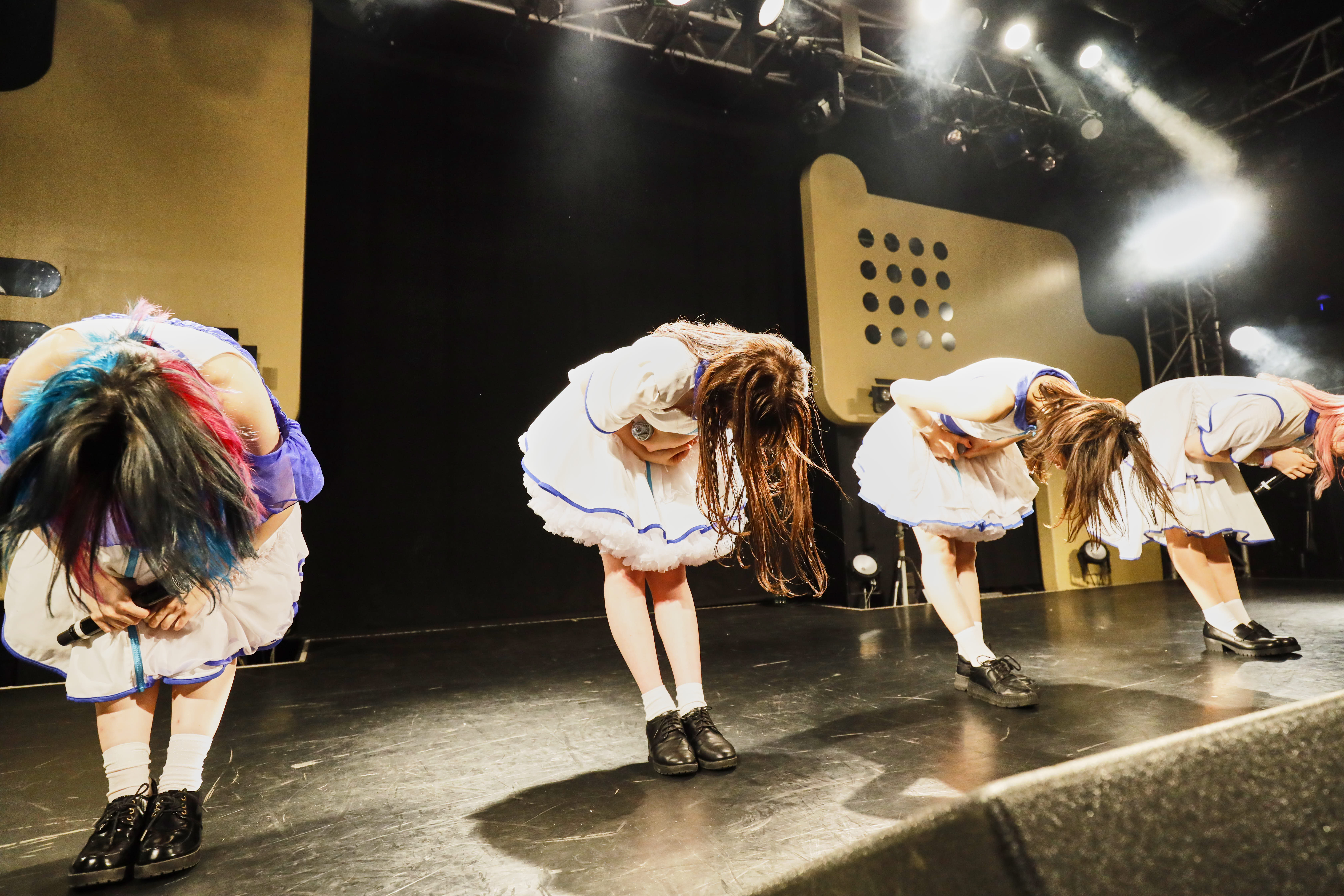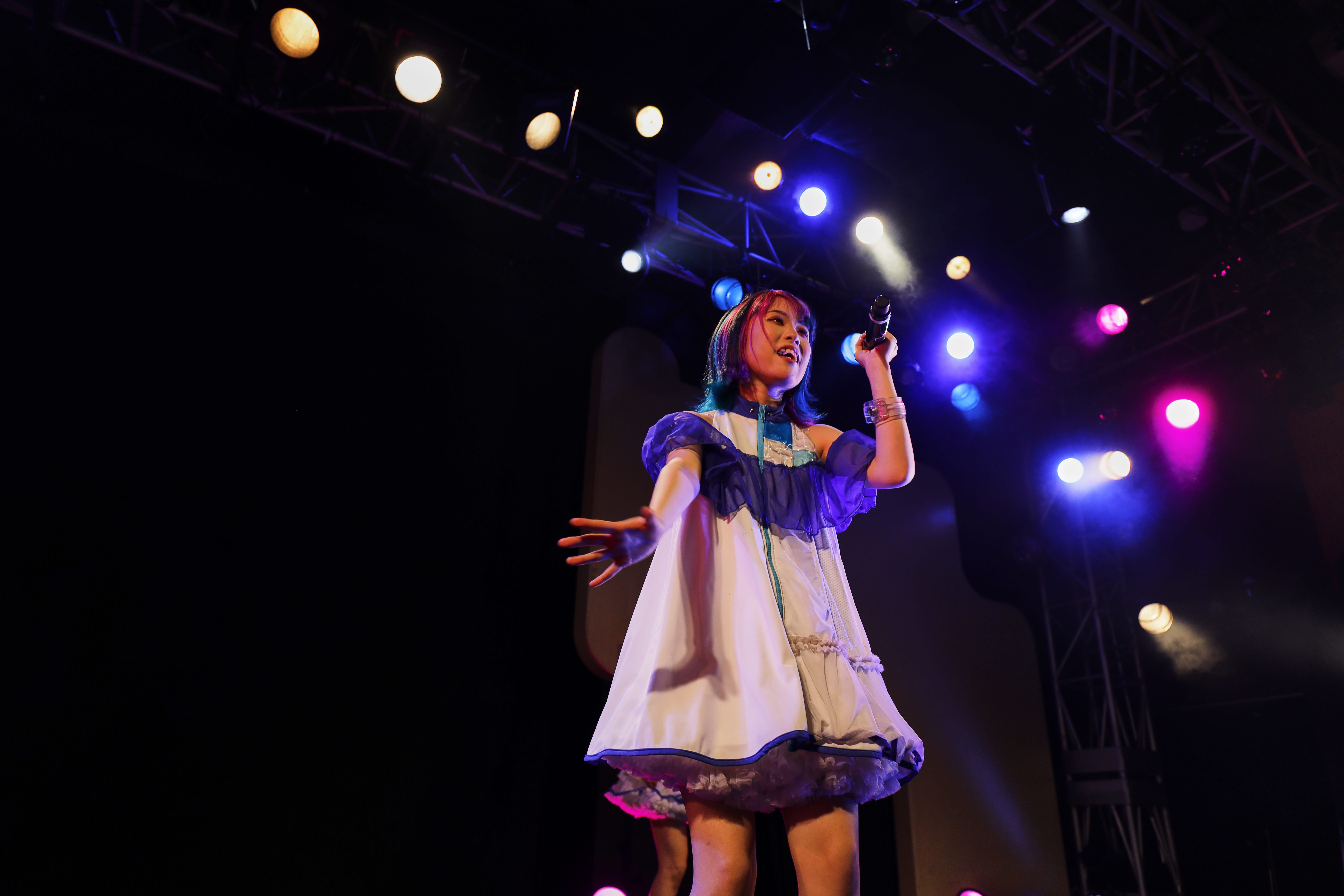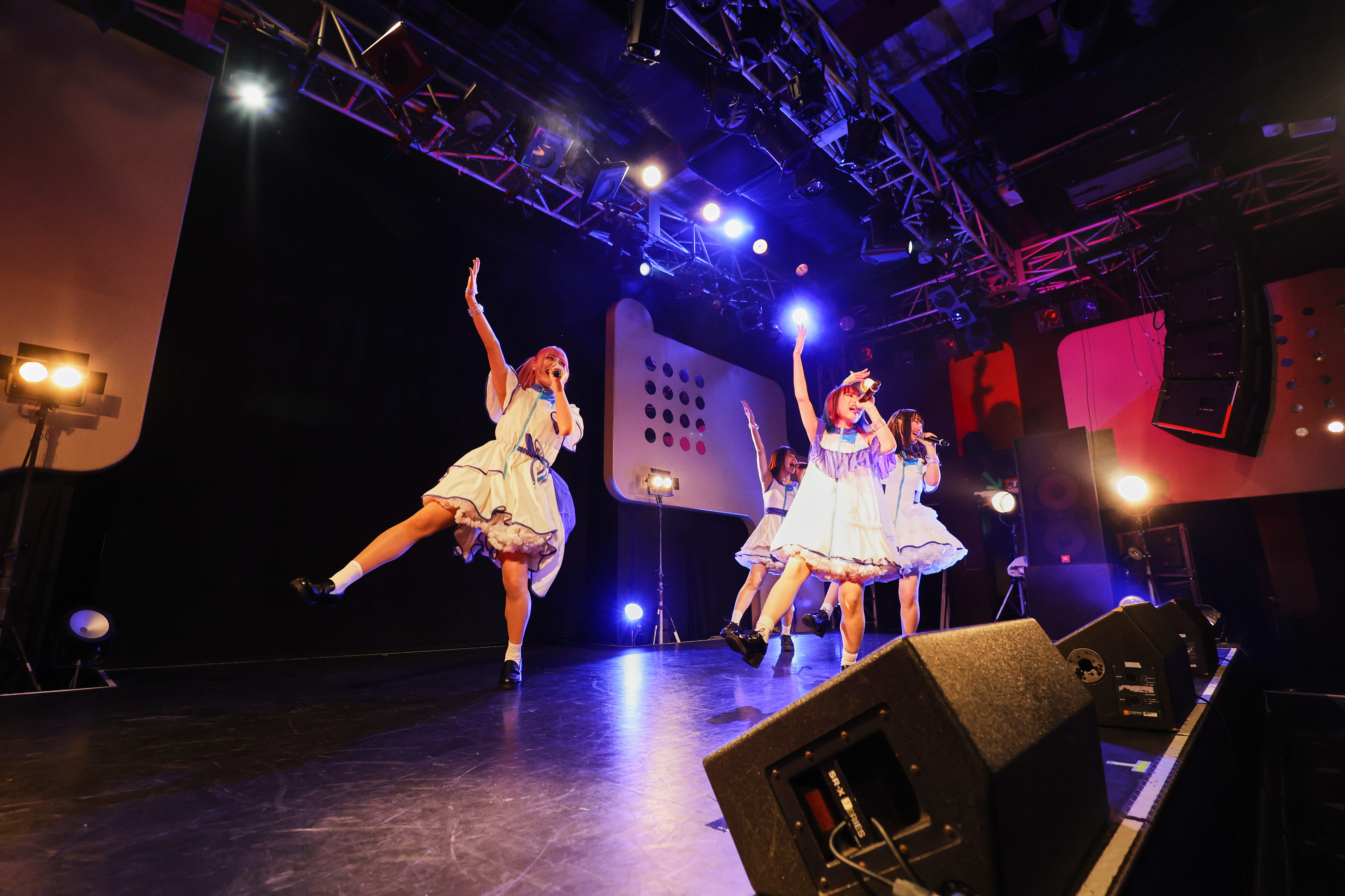 ライブは、訪れた人たちを銀河空間に現れたダンスホールへ招き入れるように「微レ存ガール」からスタート。風を切って走り出すエレクトロなダンスビートへ身を預け、4人は騒ぐ気持ちを解き放つように、無邪気な笑顔で「君はどっちから、わたしあっちから」と歌いながら、舞台の上を軽快に跳ね回る。その姿へ向け、熱い手拍が沸き起こる。さぁ、熱狂へ連れだす舞台は整った。