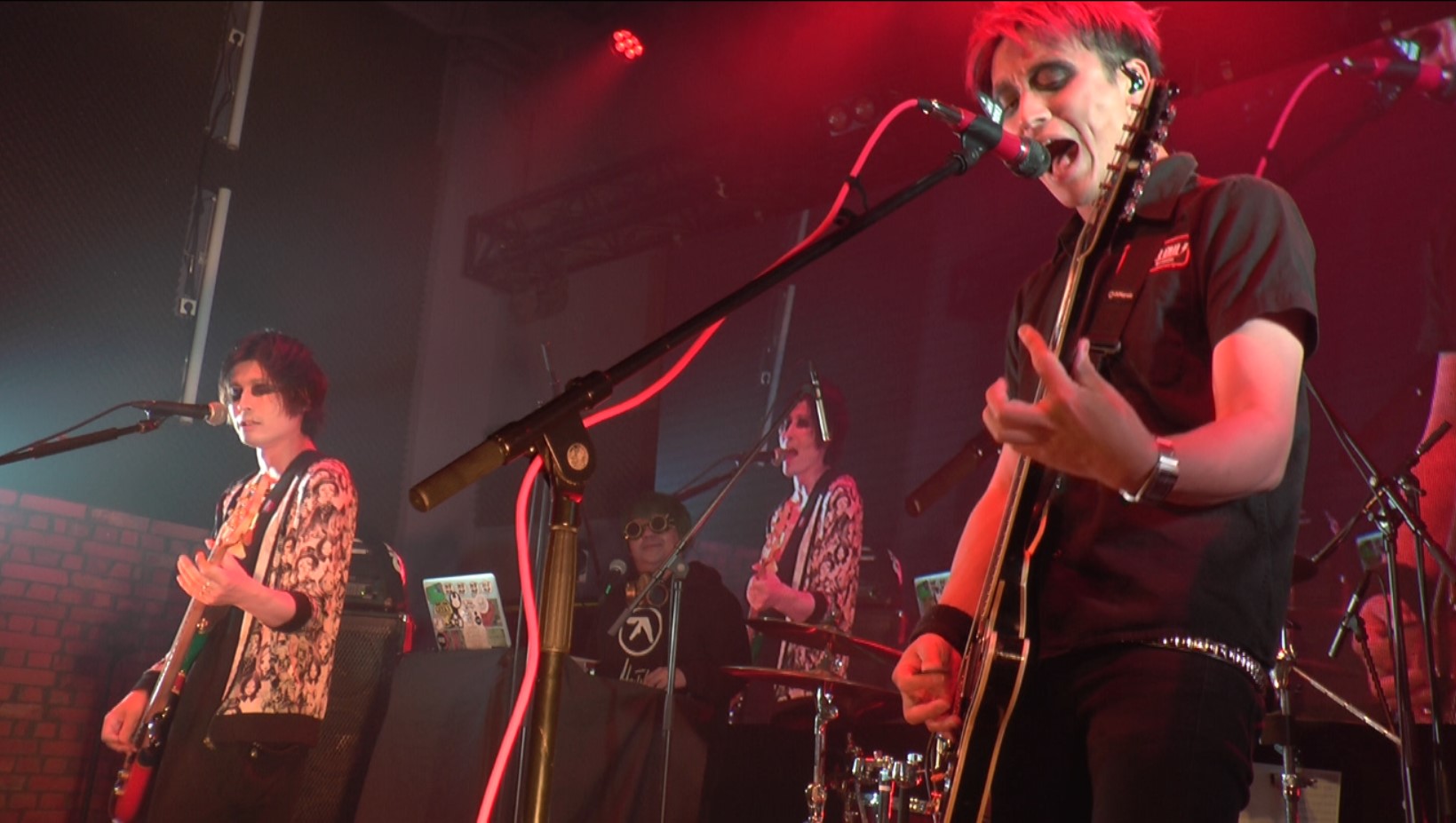 初期衝動のままに掻き鳴らすエンドウ.のギターの音がフロアへ鳴り響くと同時に、GEEKSのライブはビートパンク/ロックンロールナンバー「新世界論」からスタートした。沸き立つ気持ちをダイレクトにぶつける姿が格好いい。80年代/90年代のビートロック/パンクロックが持っていた、ノーギミックな音楽性をぶつけてゆくGEEKS。続く「PYROMANIA」も、気持ちを高揚へ導く熱いロックチューン。耳に心地好いキャッチーな歌も、GEEKSのライブに心惹かれる大きな魅力だ。揺れ動く気持ちのまま歌や演奏をぶつけるステージングが、スカッとした様として見えていた。止まることなく演奏はシンガロングスタイルの「SUICIDAL STAR」へ。胸を熱く騒がせるパンクナンバーの連発に、嬉しく心も高揚。フロアでも身体を揺らし、熱い衝動を身に感じている人たちもたくさんいた。