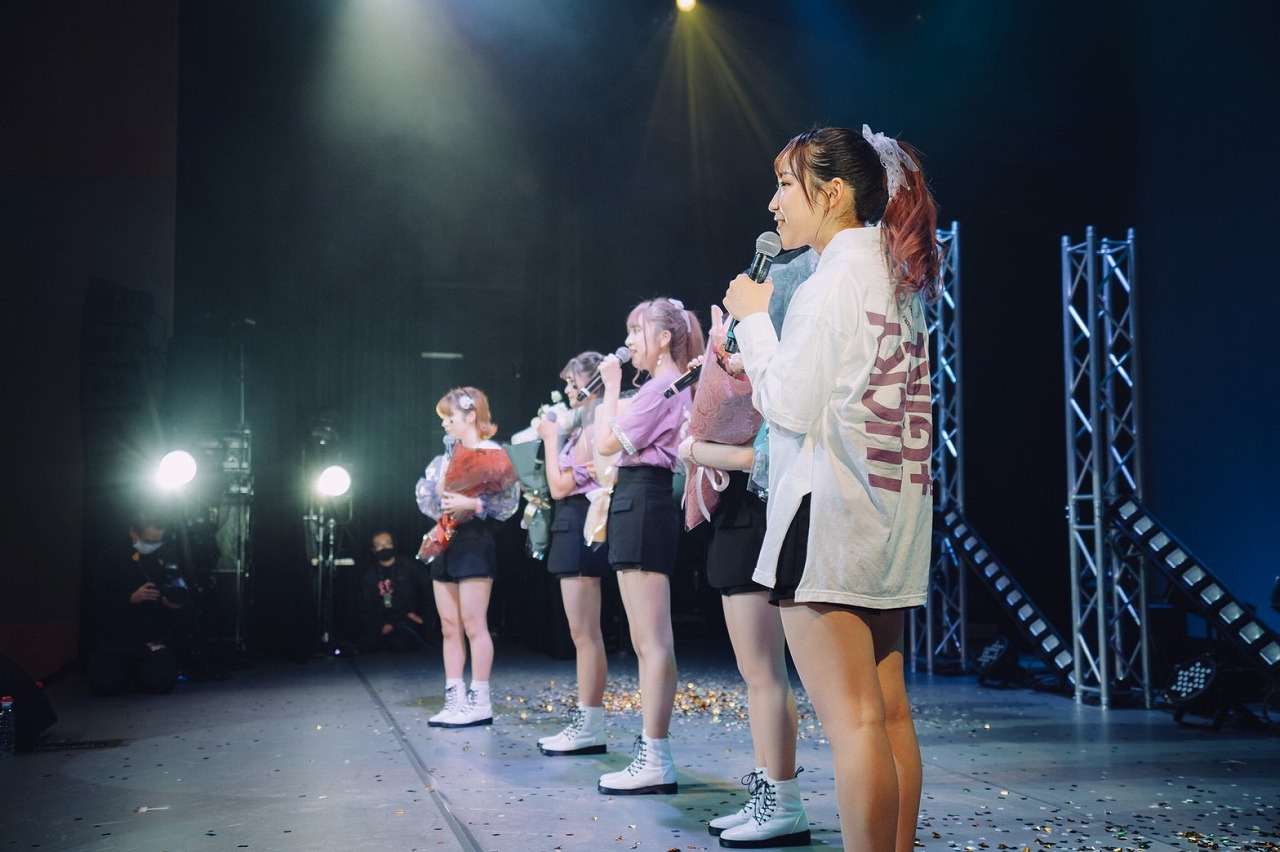 「わたしは2月に入って、3月にお披露目をしました。それから8ヶ月経ったんですけど、あれから成長できているのかなと不安な毎日でした。たとえ練習を重ねていても、それを見せる場が今年は少なくて、どこに想いをぶつけたらいいのかもわからない気持ちのまま、今日のワンマンが開催になりました。今日、みなさんに想いを届けることができて本当に良かったなと思います。ROSARIO+CROSSをもっともっと盛りあげていけたらいいなという気持ちで加入して。でも、今年はそれが叶わなくて…。来年こそはRenaの持っている力を精一杯発揮して、ROSARIO+CROSSに貢献出来たらいいなと思います」(Rena)