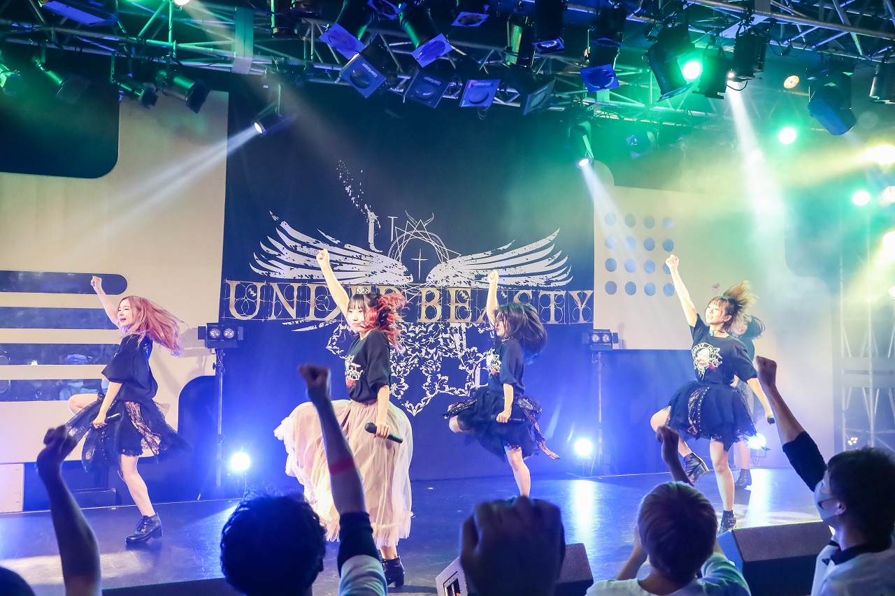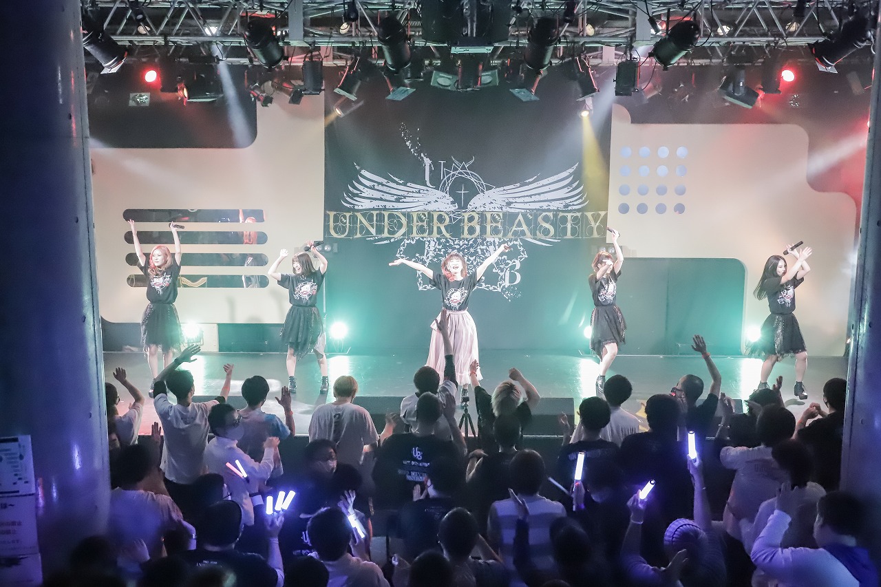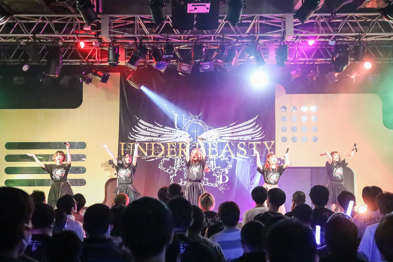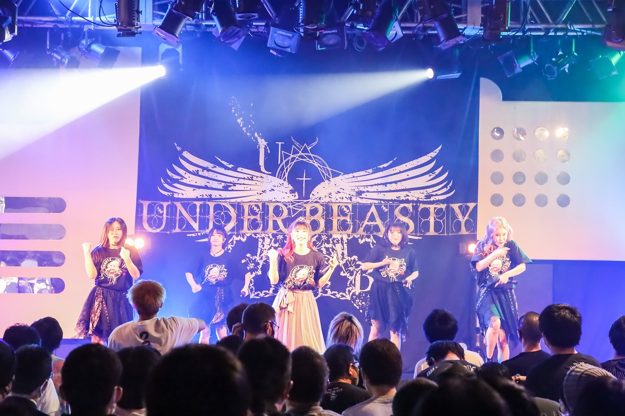 激しさへさらに熱を注ぐように、アンダービースティーは最新シングル「Real Blade」を叩きつけた。5人の動きや歌声も、さらに鋭さを増してゆく。斬り裂くようなソリッドな音と歌の衝撃が、たまらなく刺激的だ。挑発する5人の一体化した歌声に触発され、魂が熱く火照りだす。轟音渦巻く風景こそ、今のアンダービースティーに一番似合うライブのユニフォーム。それを新ためて知らしめてくれた。