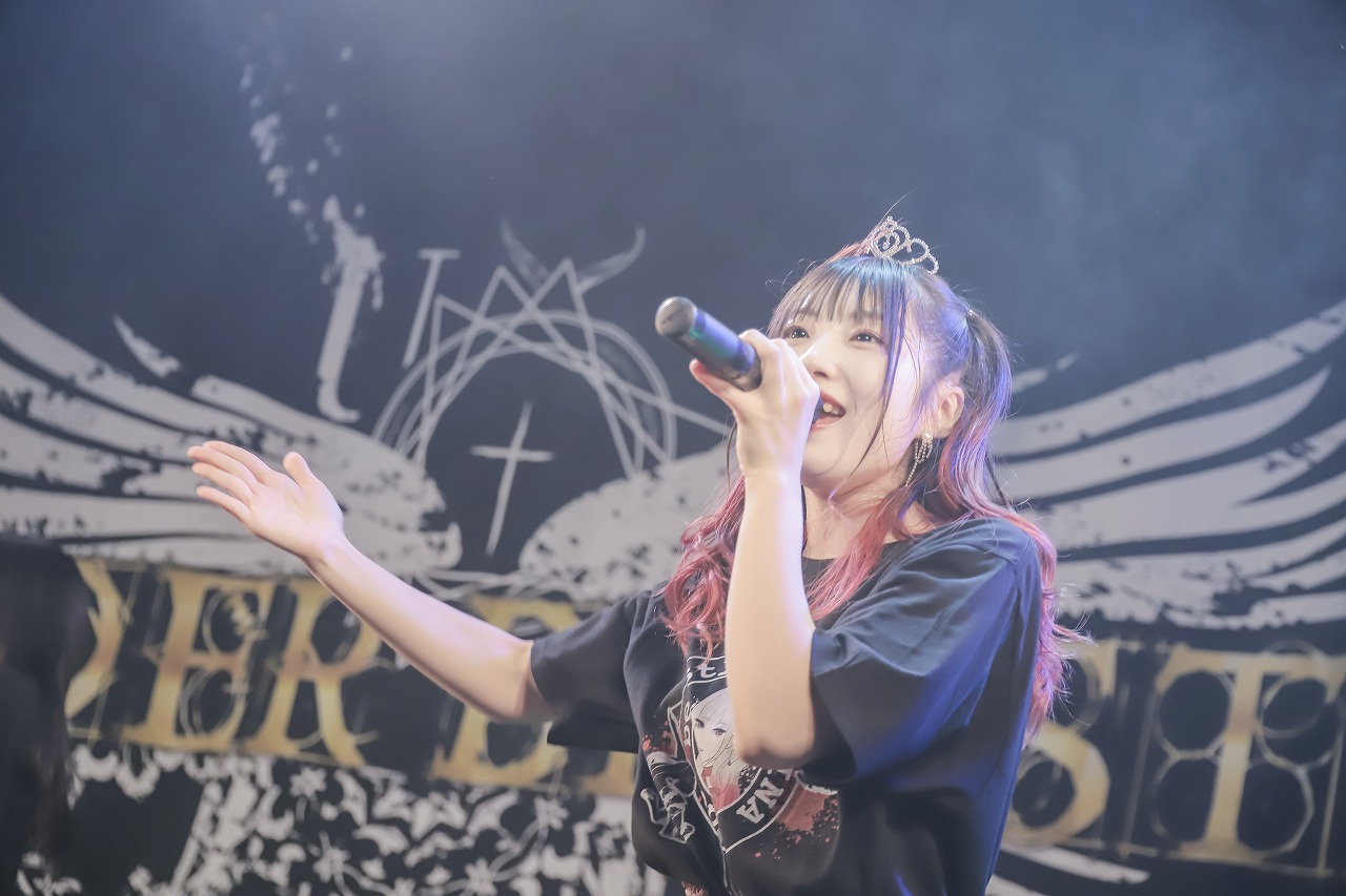 胸を騒がせるキャッチーでメロディアスな「occult propose」登場だ。激しさの中へ愛らしさを忍ばせ、彼女たちは魔性の魅力を放ちながら、共に熱狂の中で心を繋げあおうと誘いをかけてきた。フロアには、絶叫変わりの熱い手拍子が起きていた。胸を熱く騒がせるサビ歌のキャッチーさに触れるたび、沸き立つ気持ちを抑えられない。