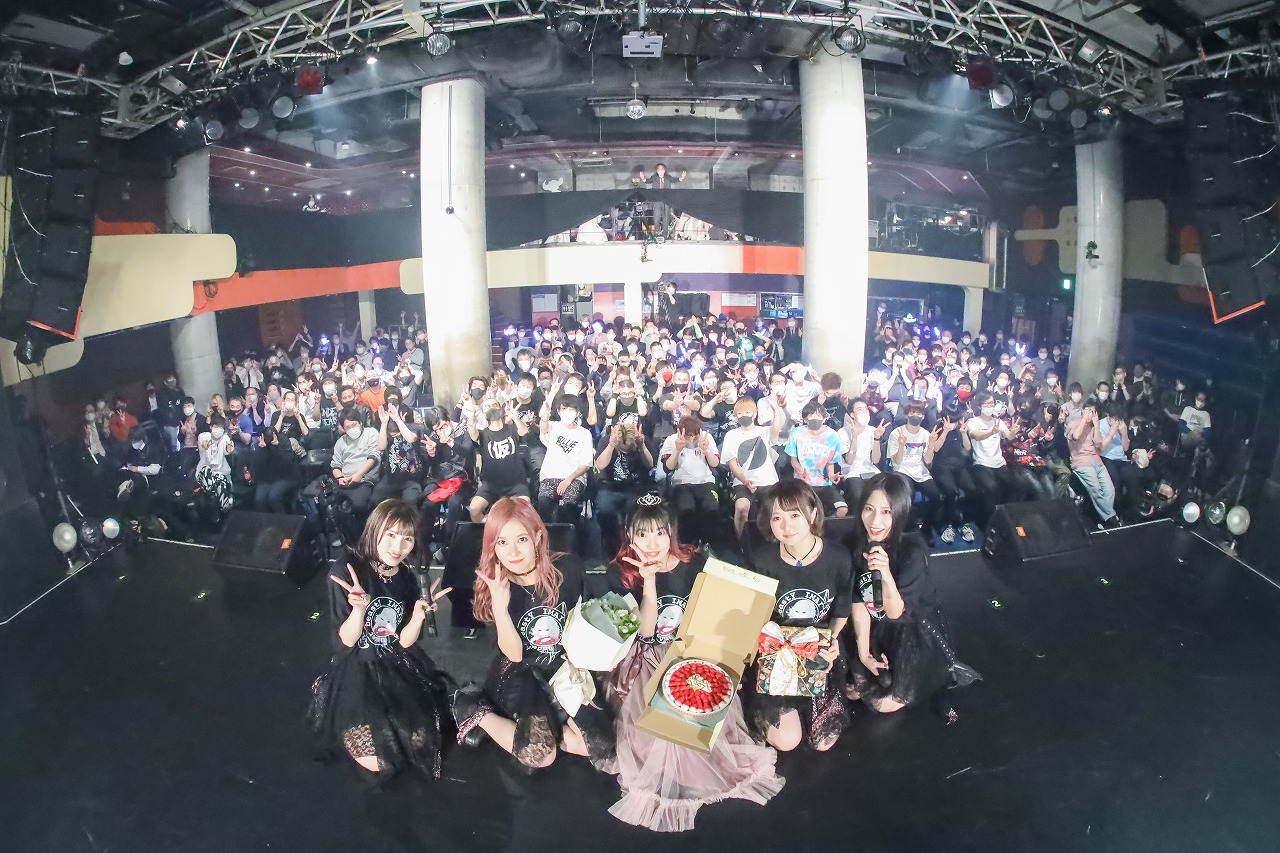 ここで、主役の今井莉南にメンバーから花束やアルバムなどをプレゼント。さらに巨大なお誕生日ケーキも登場。今井莉南は「今年最後のビッグイベントはこの生誕祭、楽しく終わらせなきゃいけないと思っていたからすごい緊張してて、どこ見たらいいのかなと思いながらライブをやっていました。年末になると、「忘年会だから、仕事納めだからライブに行けない」と言われることも多く、年末に生まれたことを後悔したこともあったんですけど。今日は、こんなにもたくさんの人たちの顔を見れて幸せです」と、この日の感想を述べていた。