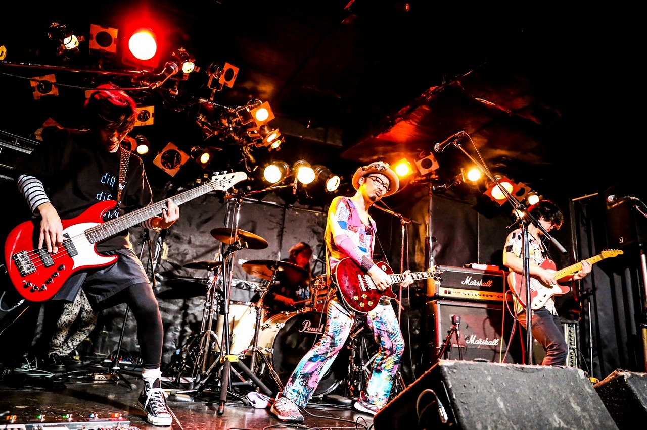 「マックス盛り上がるやつ、イッて良いでしょうか」のMCに続き、ギターの庄司陽太が歌いだすという小粋な遊び心も提示。そのうえで、改めてハシグチカナデリヤが「らぶふらくしょん」を歌いだした、観客たちも心の声を上げながら、テンション高くテンポの速い演奏に身を預け、思いきり身体を揺らせば、ハシグチカナデリヤの歌と拳の掛け合いも繰り広げていた。アガり続ける熱いグルーブが気持ちをぐんぐんとアゲてゆく。