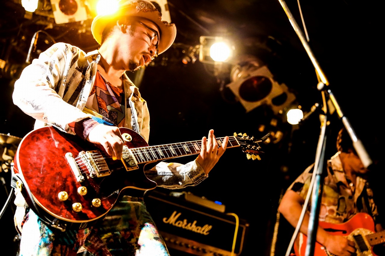 ベースとループギターとのコラボレートでベーシックトラックを作ったうえで、楽曲は「ビュリホー&ワンダホー」へ。乾いたファンキーな音と音を重ねながら、身体揺らすグルーヴロックを作り出すメンバーたち。けっして派手さはない。でも、乾いた音の絡み合いに気持ちが強く引き付けられていた。
