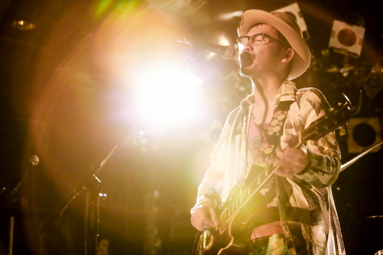 ふたたびループマシンを駆使し、ベーシックのトラックをハシグチカナデリヤは作り出す。そこへメンバーが参加。ふたたびバンド編成に戻り、気持ちを心地好くアゲるパーティチューン「実際No happen」を演奏し、観客たちの身体を揺らしだした。シンプルから一気に厚みを持った音へ塗り替えられた世界に触れ、心が一気にカラフルに染まりだす。途中、告知コーナーを設けるなど、小粋な遊び心も組み入れていた。